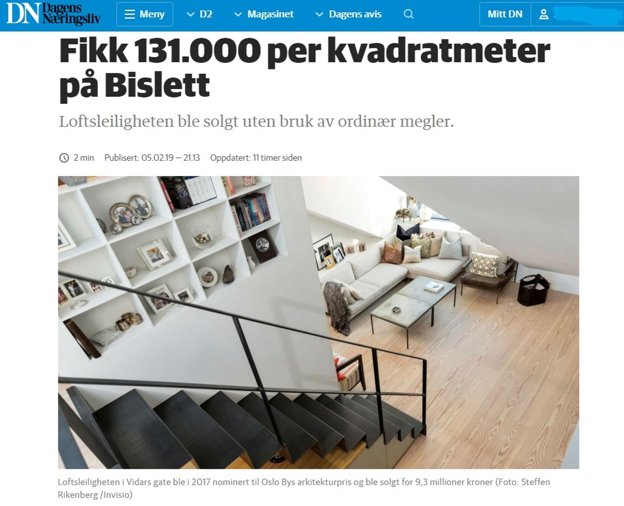 Loftsleiligheten på Bislett i Oslo gikk for hele 131 000 kr per kvm, og 400 000 kr over takst.