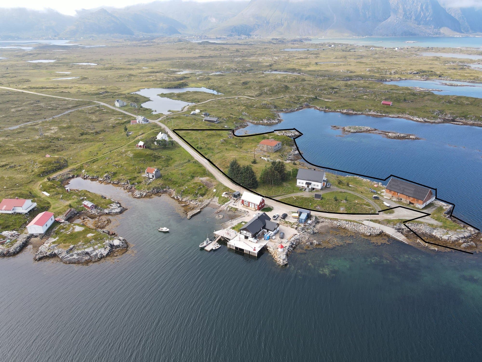 Landlig og privat med alt det Lofoten kan tilby i umiddelbar nærhet. Om man vil vandre i fjellet, padle kajakk i skjærgården eller fiske i åpent hav, så starter turen i det man åpner døra. 7 min til nærmeste tettsted, 20 min til Unstad, 20min til Leknes og 53 min til Svolvær. Dette er en av de få stedene i Lofoten hvor man faktisk kan se sola hele døgnet om sommeren. Det ligger innesluttet av en skjærgård som gjør det trygt å ferdes med båt, kajakk eller SUP. Dette er også unikt for Lofoten som ellers er ganske eksponert. Nært land kan man både få sjø-ørret og kveite. Litt lengre ut får man rikelig med sei om sommeren og torsk om vinteren. Noen kilometer ut i havet ligger øygruppa Borgvær som før var den sydligste stasjonen for pomorhandelen med Russland. Riksantikvaren har satt i gang restaurering av flere bygninger, og området er nå et naturreservat. De øvrige boligene i nærområdet brukes som fritidsboliger.