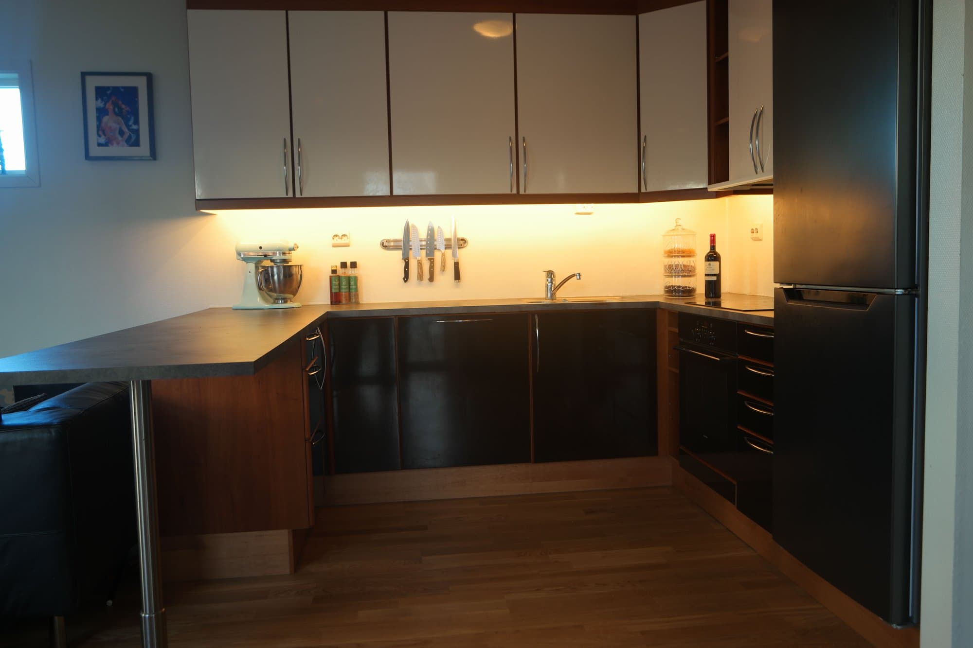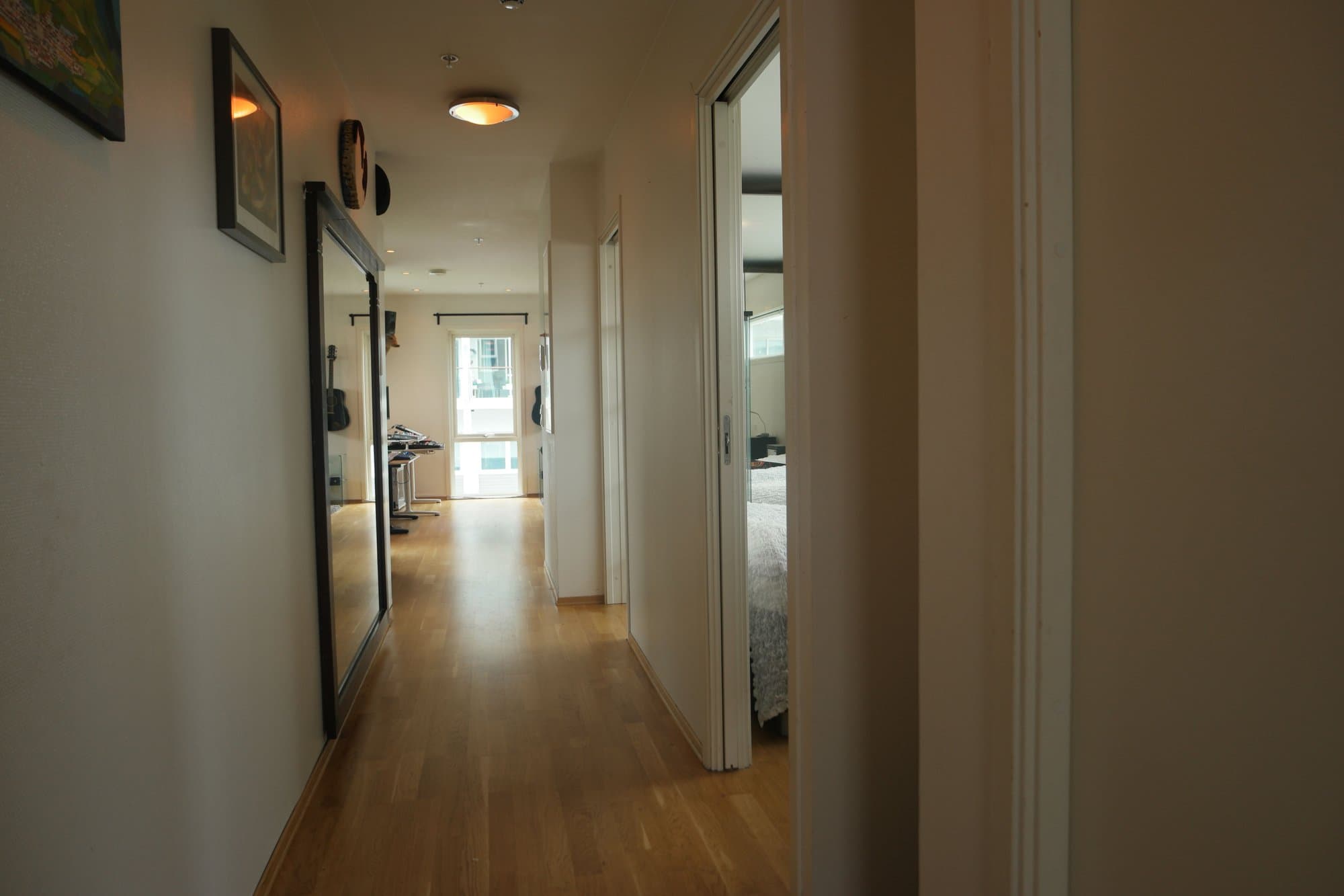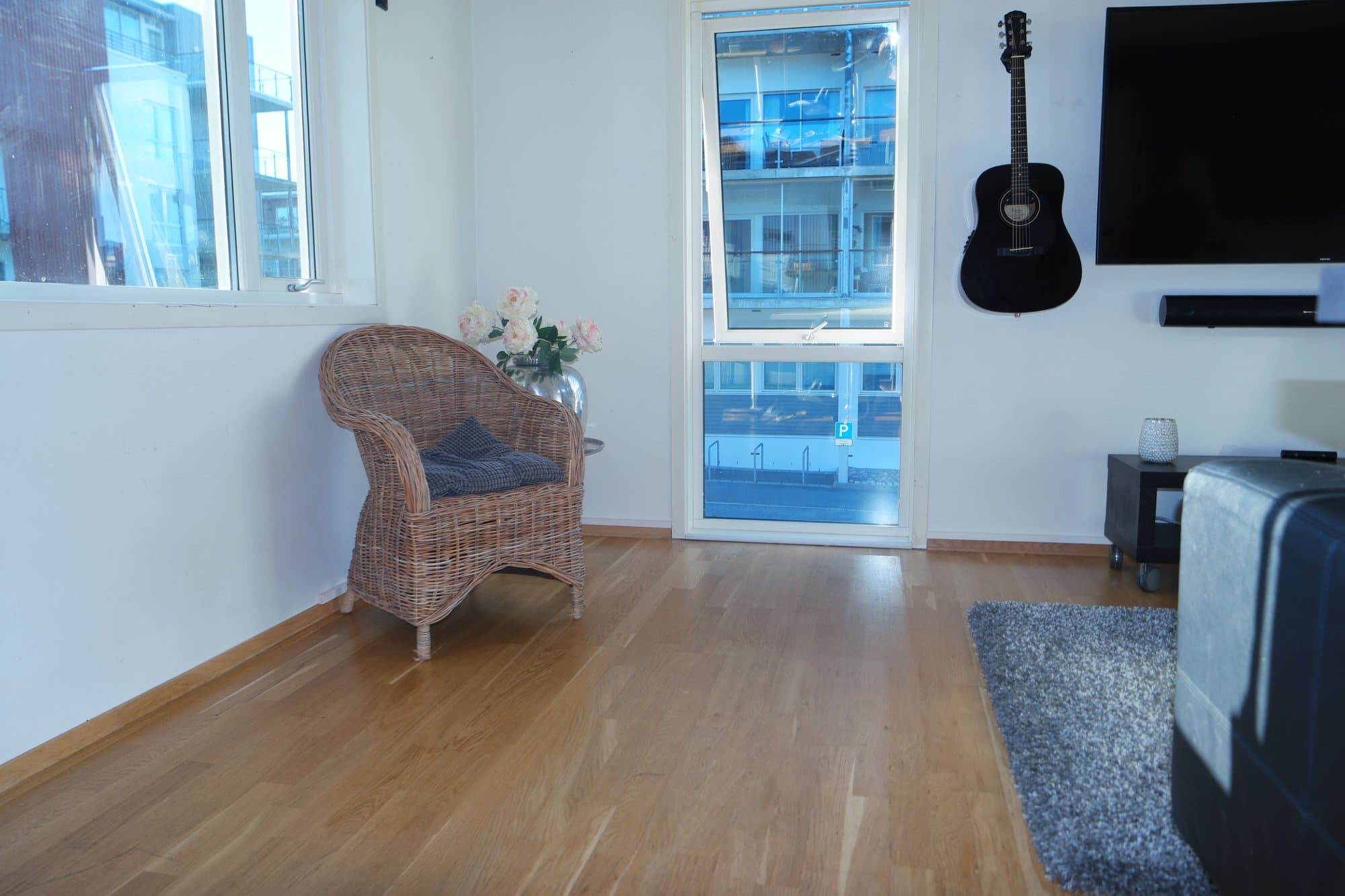 leiligheten står inflyttningsklar, overtakelse kan bli gjort på en uke Parkett ny i oktober kan sees på det ene kjøkkenbildet, parkett og kjøkkenskap ble byttet etter bilder er tatt. Elbil lademulighet, men ikke lader