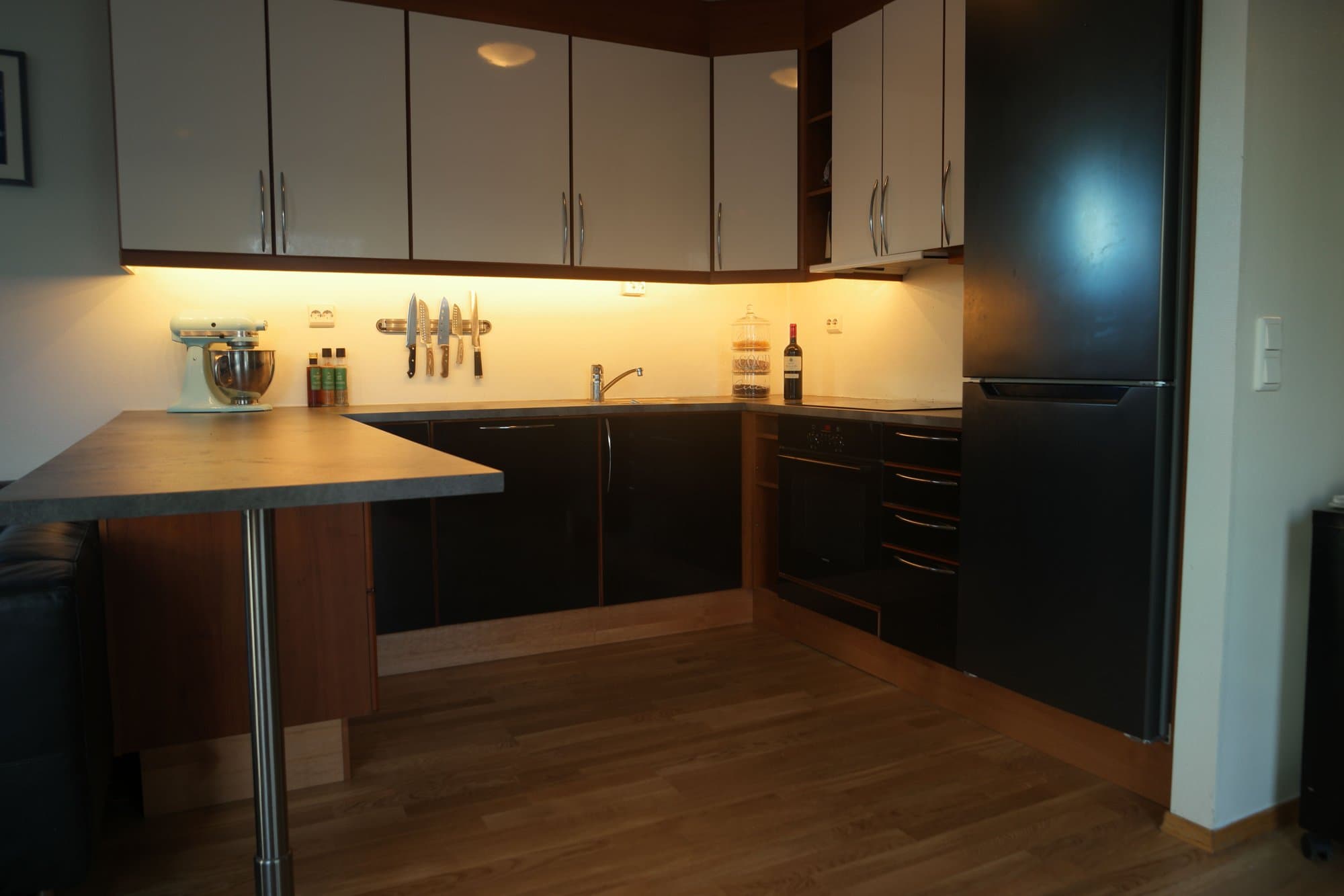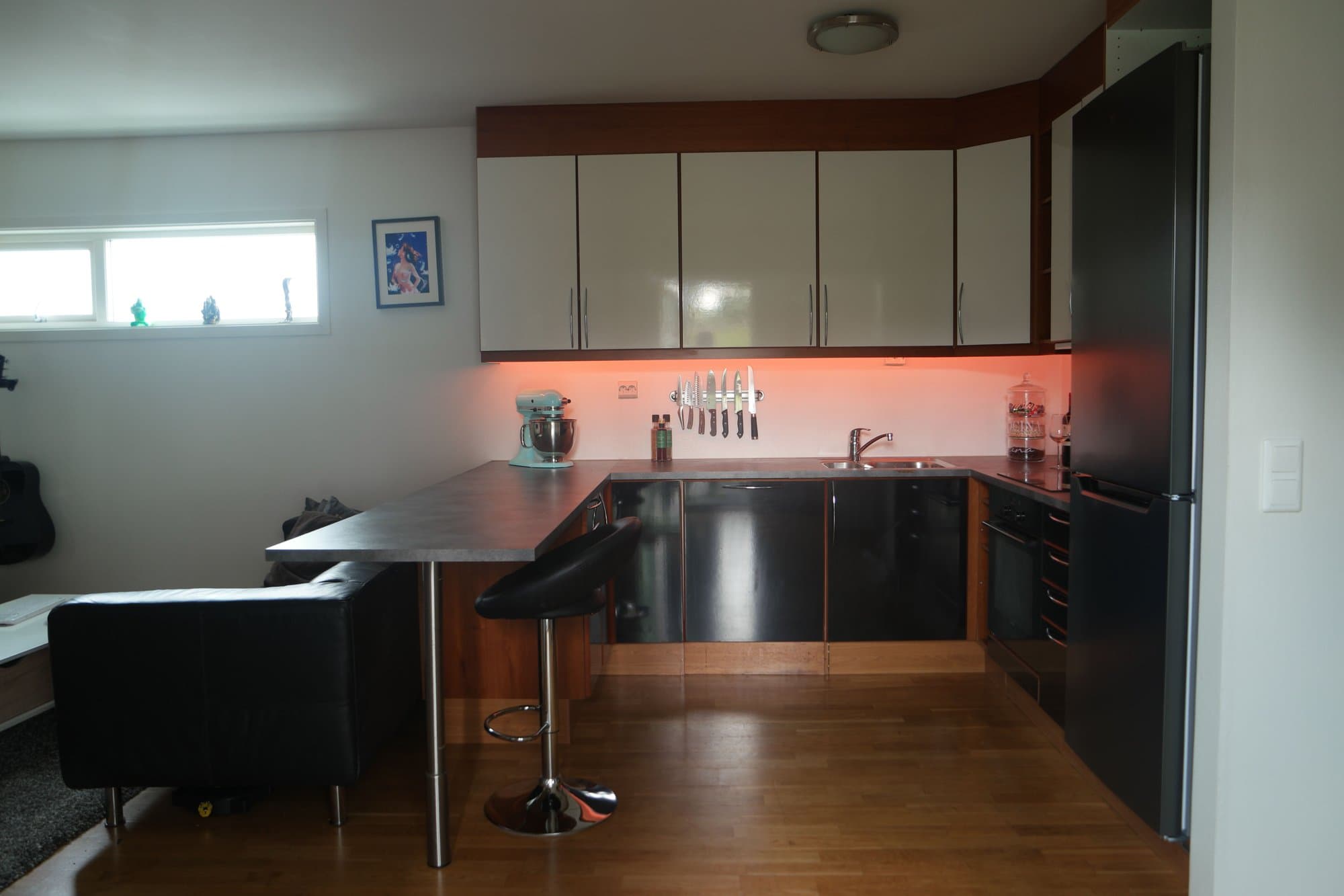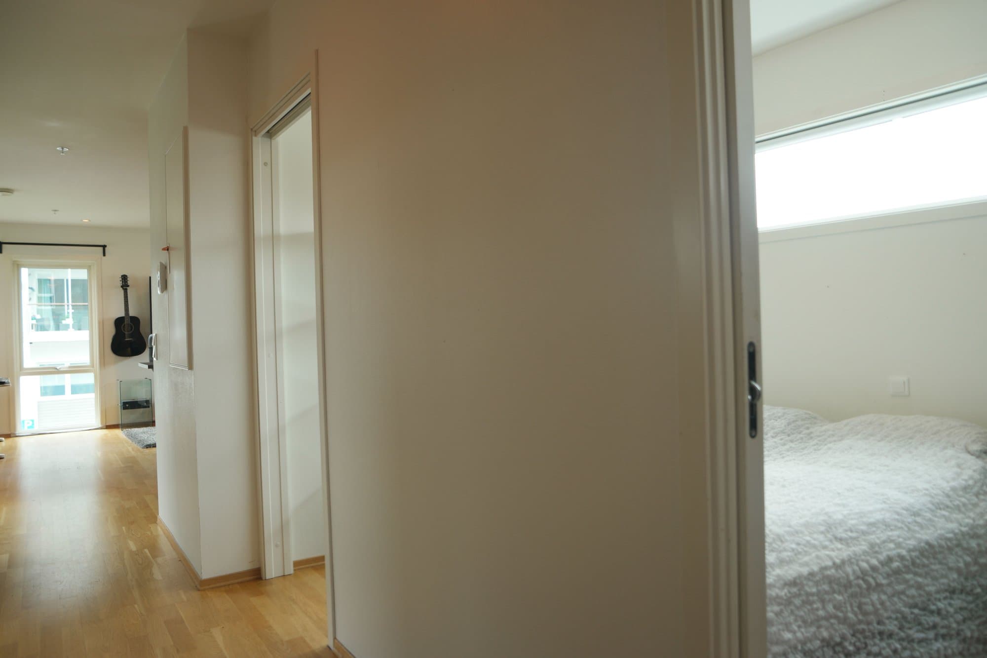 leiligheten står inflyttningsklar, overtakelse kan bli gjort på en uke Parkett ny i oktober kan sees på det ene kjøkkenbildet, parkett og kjøkkenskap ble byttet etter bilder er tatt. Elbil lademulighet, men ikke lader