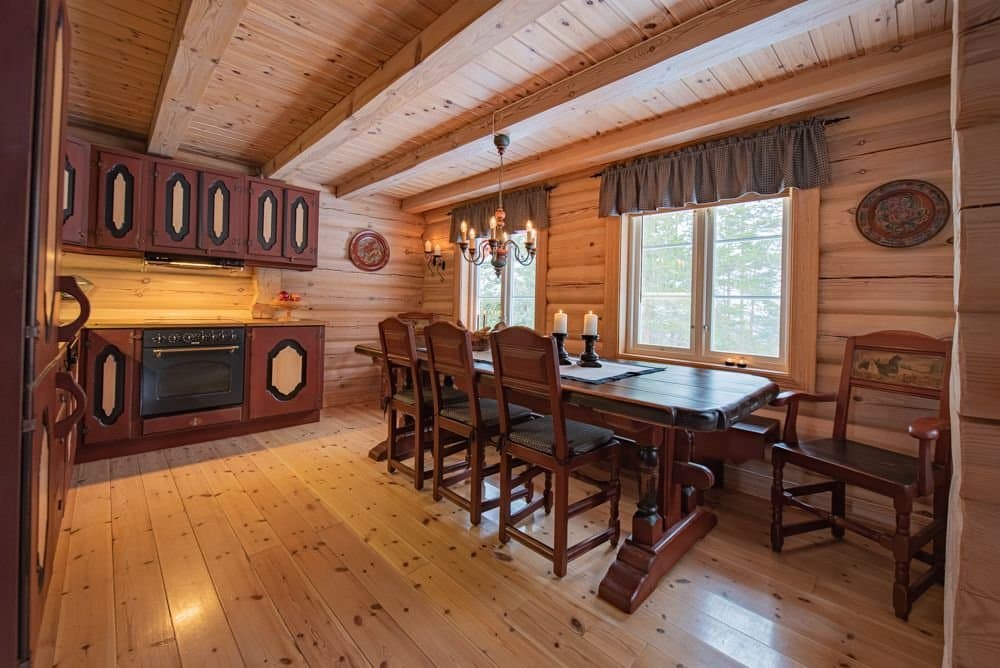 - Helårshytte - 12 sengeplasser - Usjenert og solfylt - Vann og strøm - Fibernett - Naturtomt med fjell, lyng og bær - Godt inneklima pga. tømmervegger - Et natur og miljøvennlig bygg - Lett og vedlikeholde - Kjølig om sommeren - Ingen snømåking av tak - 1t15 min fra Drammen - Alpinanlegg og skiløyper i nærheten - 1. mål selveiertomt BØR SEES OG OPPLEVES! Arkitekttegnet familiehytte oppført i år 2000 i kraftig 8" tømmer med flott beliggenhet nær ski og tur-løyper. Hytta har vært i familiens eie helt siden den var ny og den er godt passet på og vedlikeholdt opp igjennom årene. Det er 4 soverom i hovedhytta og 2 dobbeltkøyer i annekset. Alt av faste innredninger og senger i 1.etg er ifra Norske Bygdemøbler. Det er store terrasser (ca 120 kvm) i sibirsk lerk rundt annekset og hytta slik at man får et hyttetun. Alle terrasser er nyrenoverte og delvis felt naturlig inn i terrenget. Det er opparbeidet koselig bålplass med store sittestokker på tomten. På hytta har vi titt og ofte harepus på besøk, og vi hører stadig perleuglens sang og orrfuglens spillopper. Her kan man virkelig finne roen og nyte naturen. Motivene på møblene i hytta har håndmalte motiver med nettopp noen av disse dyrene som befinner seg i området.