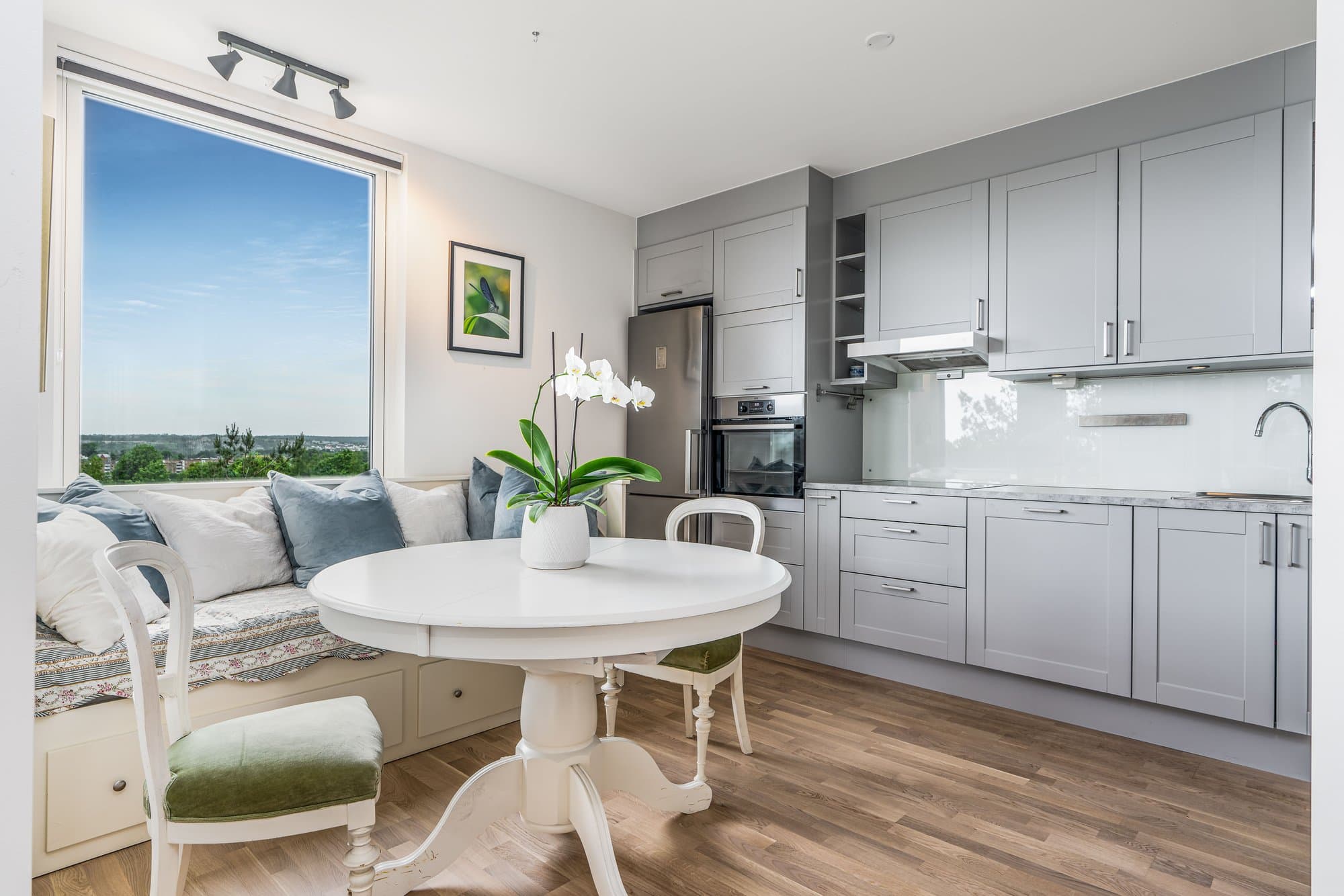 Sentralt, oppgradert og delikat 2-roms (3-roms), med stor terrasse og flott utsikt. Fellesgjeld er inkludert i prisen.
