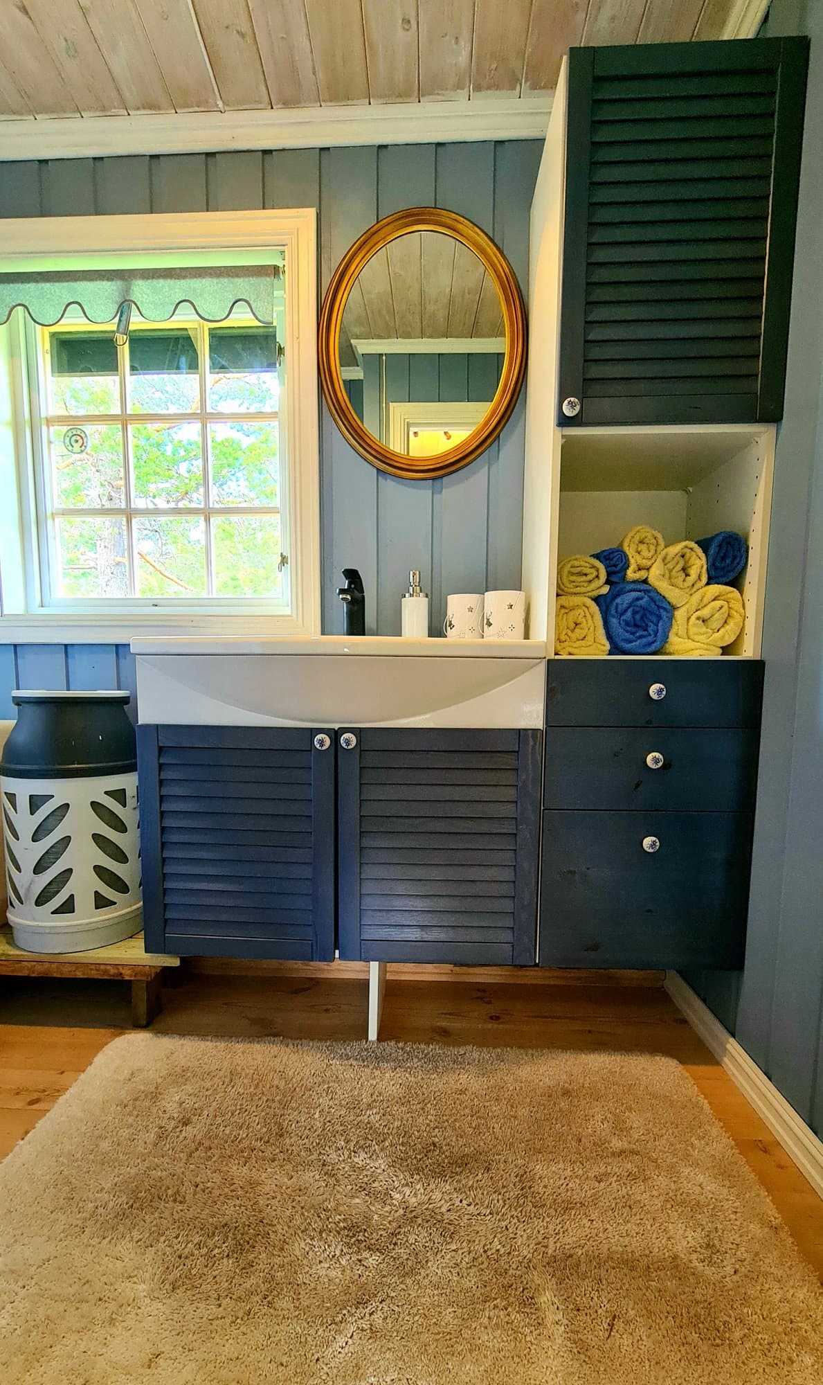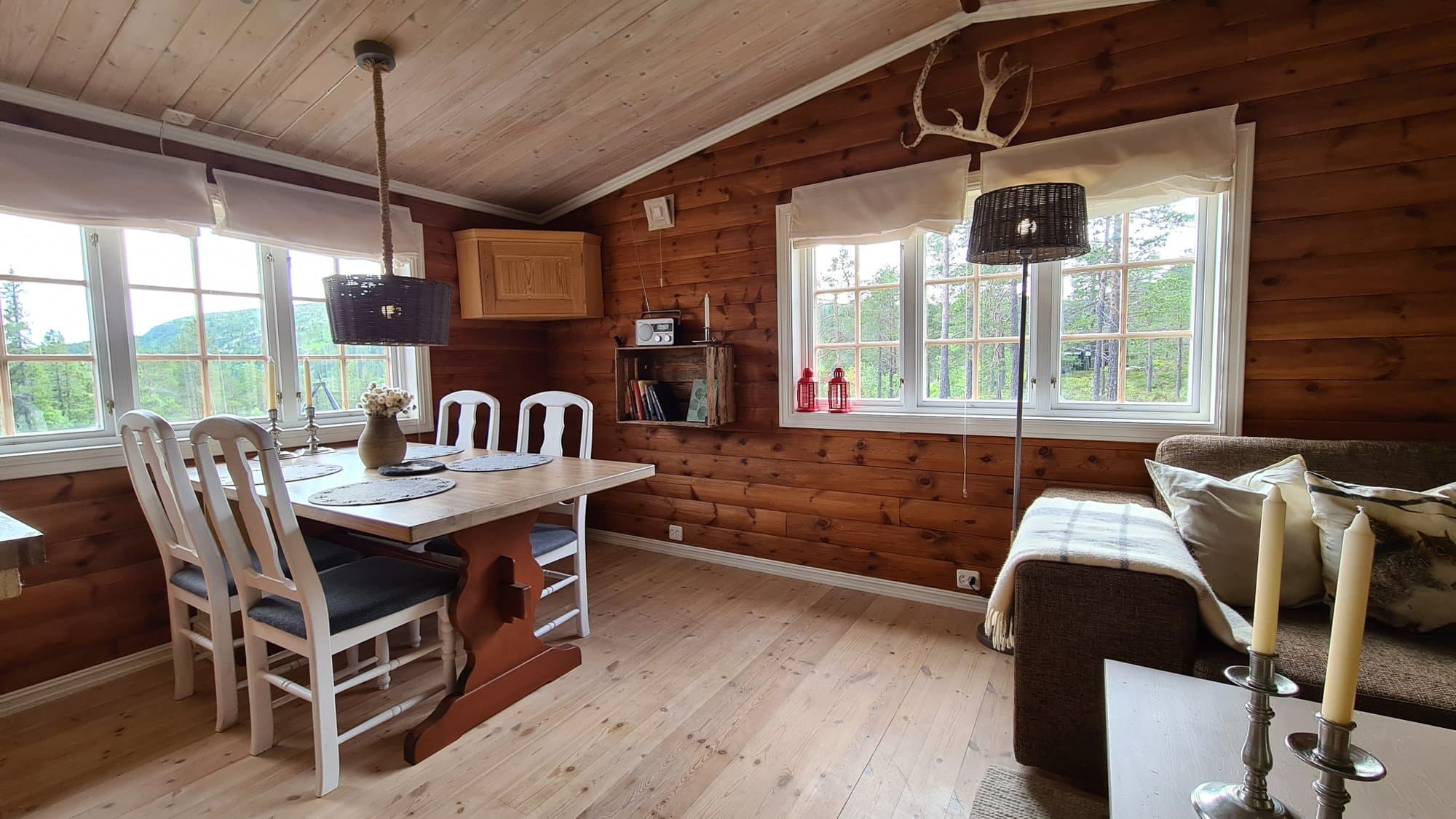 Velholdt og nyrestaurert hytte, med fin utsikt og skjermet beliggenhet og eget "utespa". Koselig stue, med åpen kjøkkenløsning og peisovn. Samtlige overflater og rom i hytta er pusset opp de siste to årene. Se film av hytta: https://youtu.be/_aU9gsZUGyQ Kjøkken: heltre benkeplater og nedfelt oppvaskkum. Kjøkkenet er utstyrt med 4 bluss gasskomfyr med ovn. Bad: dusj med ny gassvarmer og vannpumpe fra 2020. 80 Liters vanntank. I tillegg har hytta utedusj med pumpe samt bad. Do: separat do inne i hytta. Soverom: 2 koselige soverom. Soverom 1 med høy dobbeltseng, som gir utsikt og god lagringsplass under. Soverom 2 har fire køyer, kommode og to "skap" med hyller. Gang: praktiske løsninger til lagring av klær og sko. Tørkehylle over peis. Strøm: nytt solcellesystem (2021) 300Watt med 2 Lithiumbatterier på hver 100Ah. Anlegget leverer 12V til strøm og dusjpumpe. Inverter på 375W som sørger for 230V til PC og støvsuger m.m. I tillegg er det aggregat i uthus for å lade batterier ved behov samt å gi strøm til vannpumpe. Det er mulig å Kopple seg på strøm om ønskelig. Varme: parafinovn med "Ring hytta varm" system medfølger. (Send SMS - og parafinovn varmer hytta før ankomst). Peisovn for vedfyring i stua. Frittstående gassovn medfølger også. Internett/TV: Både 230V og 12V tv fungerer fint på hytta. Hyttepakke internett 4G med SIM - kort gir full dekning. Vann: vaskevann fra elektrisk vannpumpe på tomta (inneholder jern), alternativt kan vann hentes fra kran med tilsig fra tjern. Drikkevann hentes i elva. Adkomst: Parkering på egen p-plass på Storeblevegen. 7 - 10 minutter å gå (ca 600m) i lettgått terreng. Vinterstid parkeres på store parkeringen på Nordstul. Herfra er det preparert skiløype (ca. 10min) til hytta. Det drøftes for tiden planer ny parkeringsplass ca. 200 m fra hytta.
