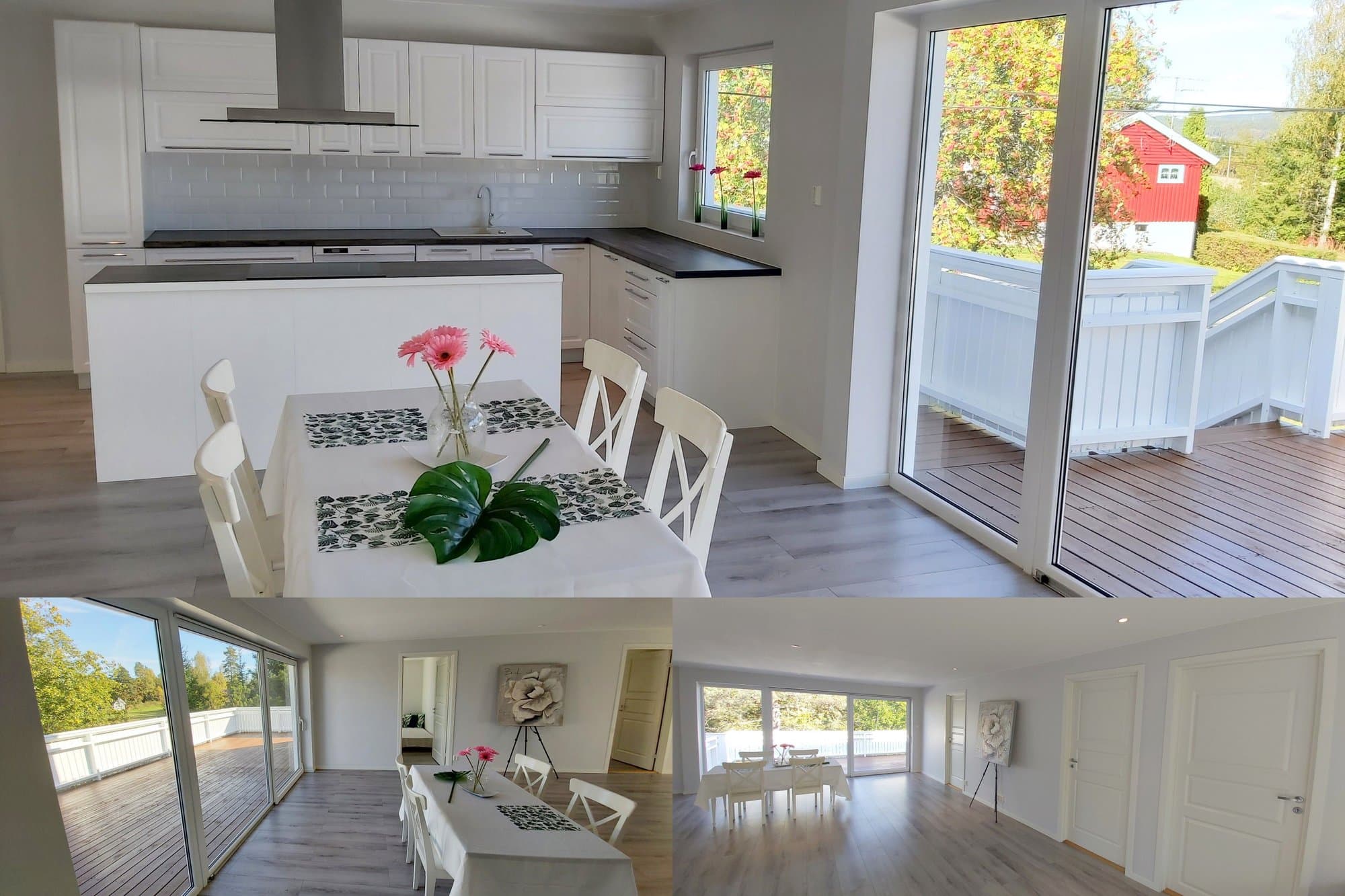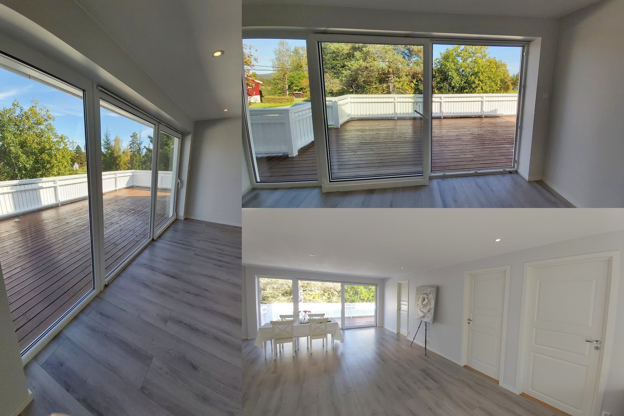 Romslig 5-roms villa av høy standard med panoramautsikt, dobbel garasje og stor terrasse-barnevennlig og populært område