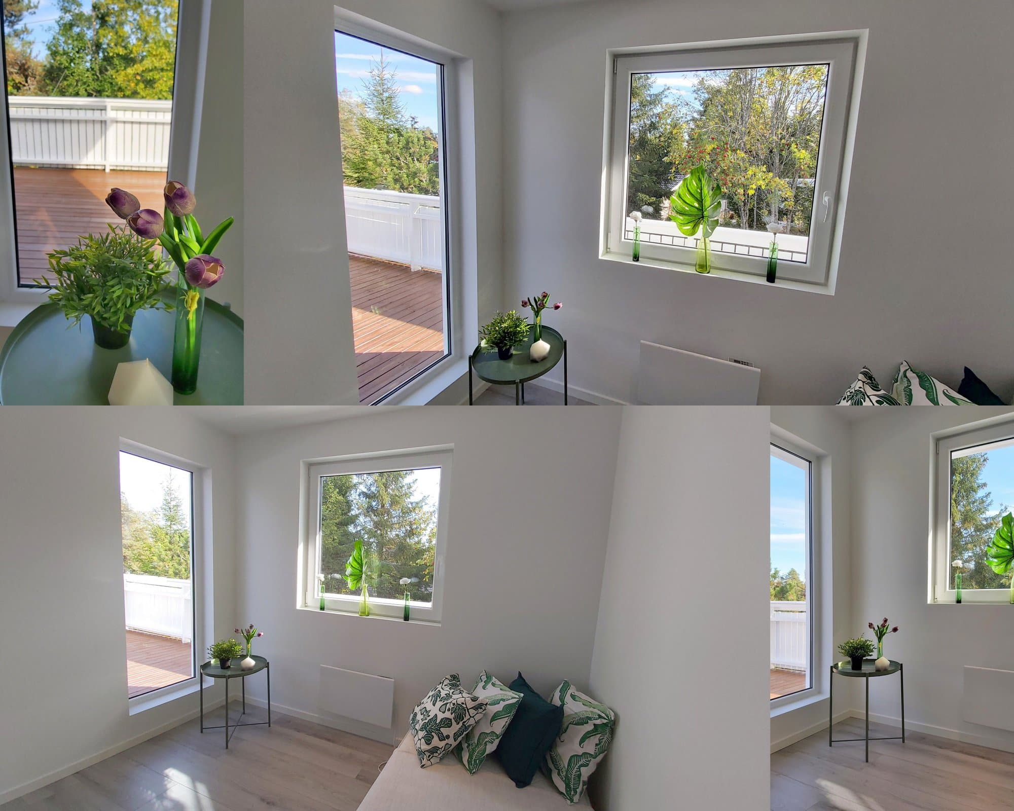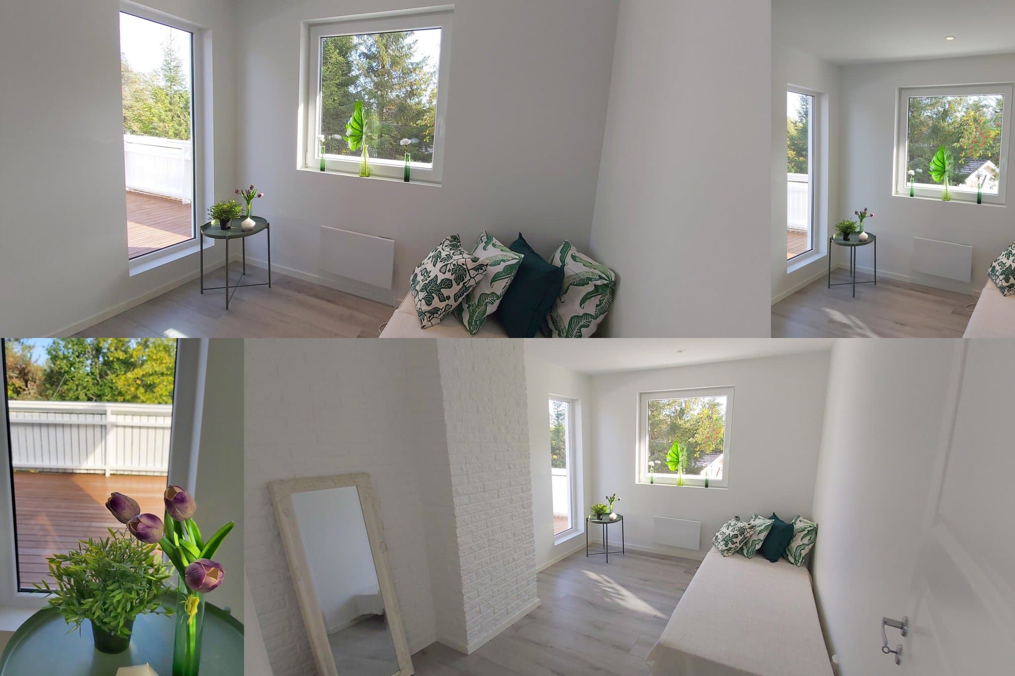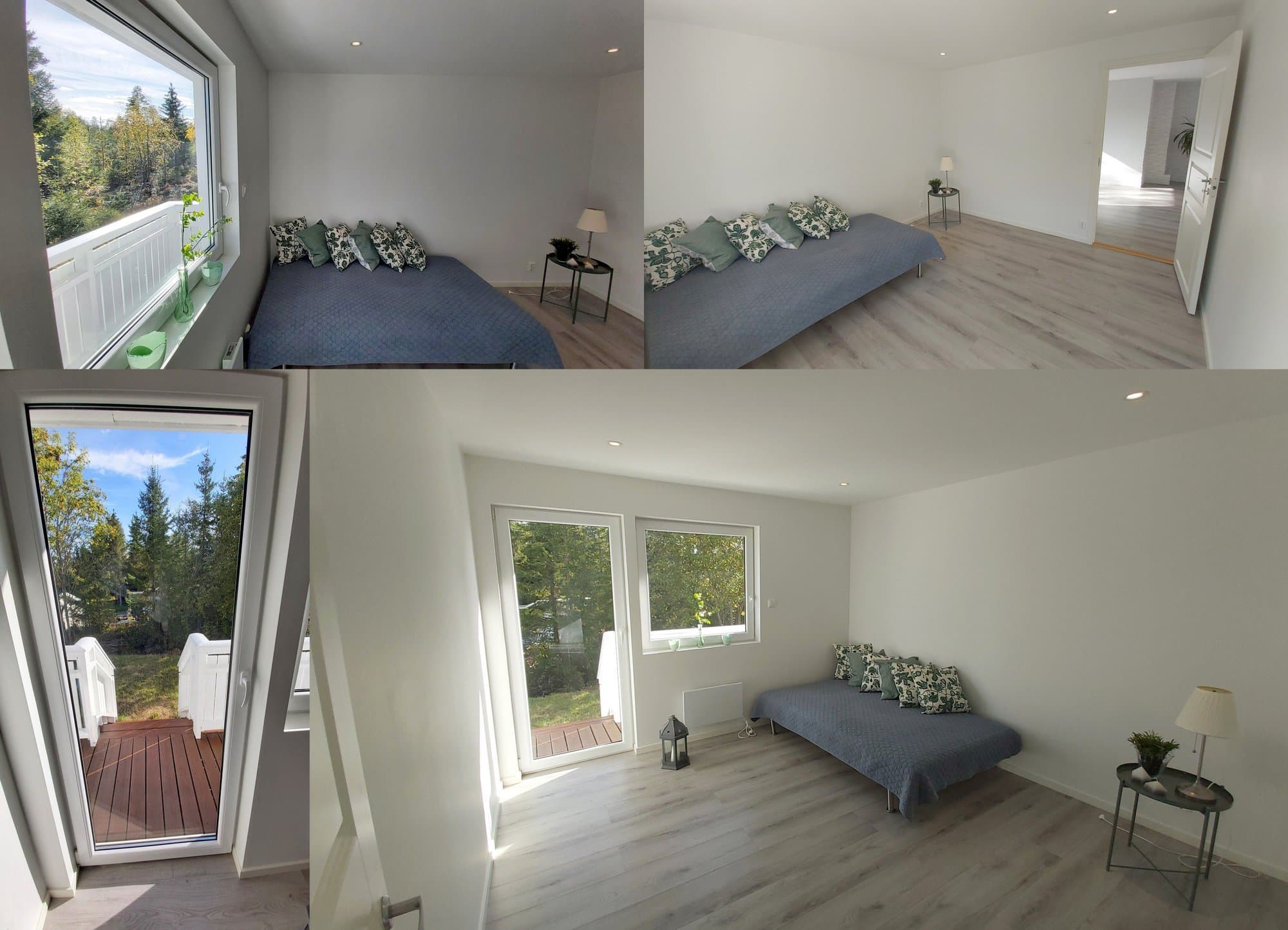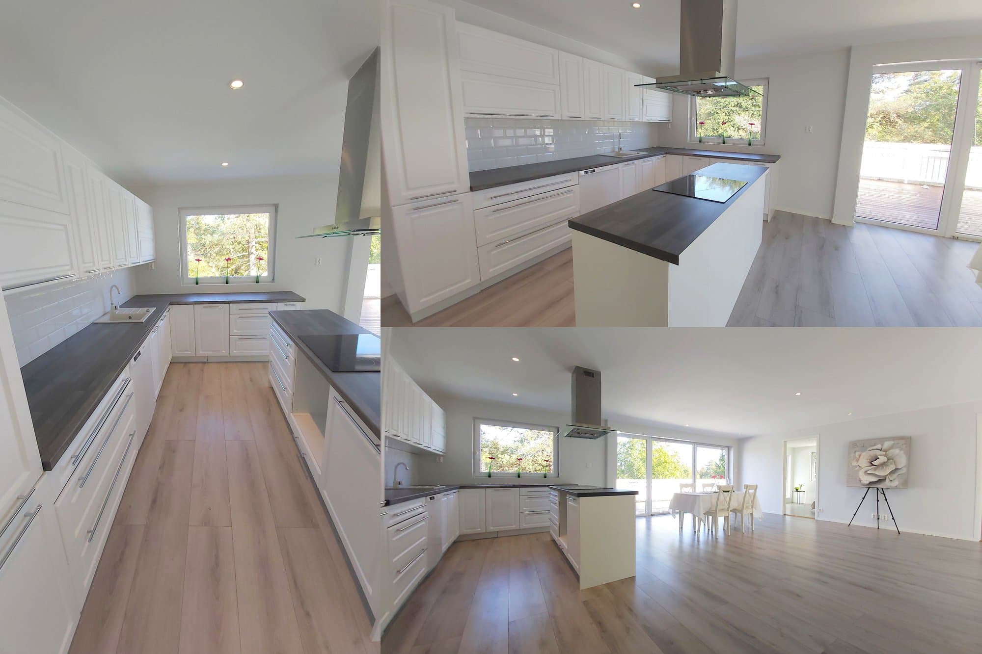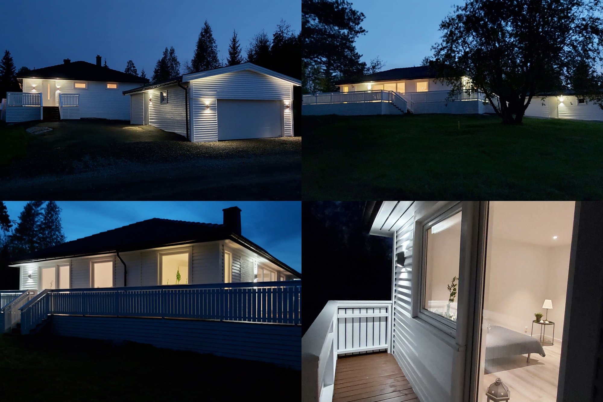 Hvis Du vil se dette fantastiske huset - Vennligst send meg en tekstmelding Tlf. 40585292 Huset ligger på en stor tomt på en høyde, hvorfra du kan se naboens hus litt lavere. Tomten er avgrenset av vakker skog og mange turområder. Sittende på terrassen kan du lukte den vakre duften av skogen, det er veldig stille her, men likevel nær asfaltveien og landsbyen hvor du kan handle. Huset er en renovert villa, med et fantastisk panorama, innglassede områder som slipper inn mye lys. Fra morgenen skinner solen på vinduene i rommene, og den forskyver seg videre og lyser opp stuen.Det er en hovedterrasse og to mindre rundt huset. Standarden på huset er GK plater og vaskbare flugger maling. 4 soverom lar familien din bo her. Moderne kjøkken med øy. Garasje for 2 biler, 3 celler for rullestol eller sykler. i kjelleren et treningsstudio, eller et rom for hobbyen din. I dette huset vil du bo komfortabelt og du vil ha nær kontakt med naturen. Garasje på ca. 35m2 og 3 boder på ca. 2,8m2, 5m2 og 6m2. bnr 41 Areal: 376,9 m² Arealkilde: Kartverket. Gnr 33: Bnr 35 Areal: 761 m² Arealkilde: Kartverket. Balkonger og terrasser: Terrasse med adkomst fra stuen på ca. 57m2 som strekker seg rundt nesten 3 vegger. Terrassen er belagt med impregnerte terrassebord og malt rekkverk. Rekkverkshøyden ble målt til ca. 100cm. ,