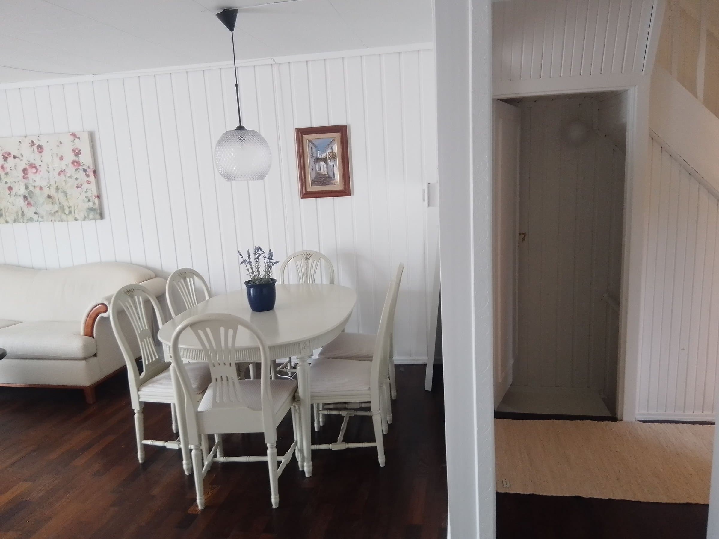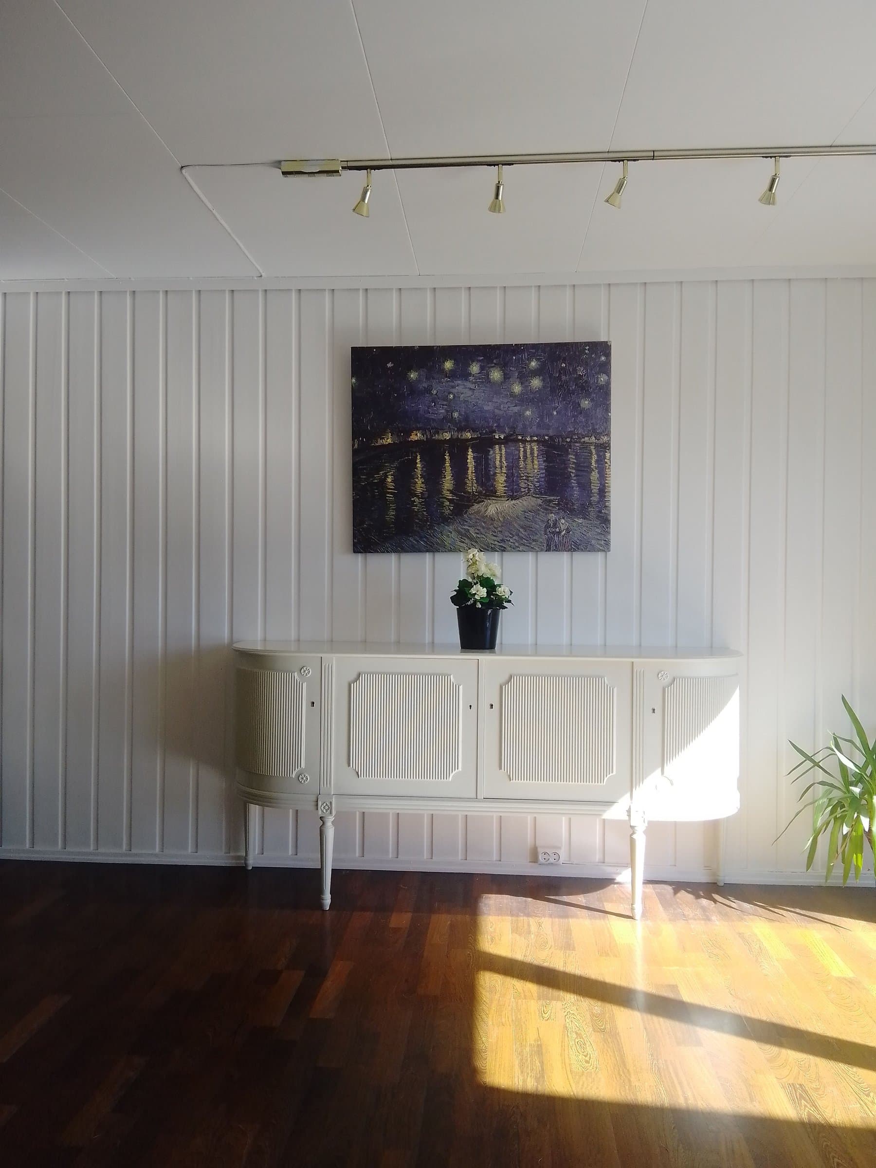 Hyggelig bolig over 3 plan. Nesten hele huset er nylig pusset opp med malte flater og flisegulv. Påkostet med italienske fliser med historisk mønster på kjøkken hovedplan. Eldre plassbygget, solid kjøkkeninnredning med malte fronter i 1.etg. Huset er også i 2022 påkostet med porcellanato fliser av god kvalitet med forskjellig typer historisk mønster og marmormønstret på alle gulvene i hele underetasjen, unntatt på bad og vaskerom. Badet er også overflate- oppusset / malt, men mangler dusjkabinett/ badekar. Hvert rom fremstår med særpreg og gir en hyggelig atmosfære . Fine eldre heltre gulv i delikat kremhvit farge i 2.etasje passer godt til den gyldne panelen på veggene og de plassbygde garderobeskapene. På hovedsoverommet finnes til og med en koselig vedovn og en nostalgisk vaskeservant. Egen inngang til underetasjen og fliselagt trapp med hvitmalte murvegger, alt sammen pusset opp i 2022. Deler av underetasjen har tidligere vært benyttet som utleiedel og gitt gode leieinntekter for tidligere eiere. Vaskerommet har blitt brukt som bad 2. Det har tidligere vært tilkoblet ovn til pipeløpet, så her har man kanskje mulighet for å varme opp et evt nytt bad 2 med vedfyring i stedet for strømslukende varmekabler! NB .Mulighet for bad og/eller toalettrom også i 2.etg i soverommet som vender ut mot Linhusveien. Gode solforhold med usjenert terrasse og en frodig privat hage (kun for 24B langs hele rekken ABC) med en flott granhekk og rikelig beplantet med frukttrær og bærbusker. Rekkehus med egen "eplehage" på Røa ! Her er det epler, kirsebær, hvit og rød rips, solbær, blåbær, rabarbra, og massevis av bringebær, og i tillegg litt blomster og andre vekster, og av og til avlegger en høne fra nabolaget et besøk og legger igjen nyverpede egg i hagen ! Her er det bare idyll og et godt sted å være ! Garasje med plass til en bil. Det er også parkeringmulighet for én bil utenfor porten i Linhusveien, og kanskje får du plass til en bil utenfor garasjen også.