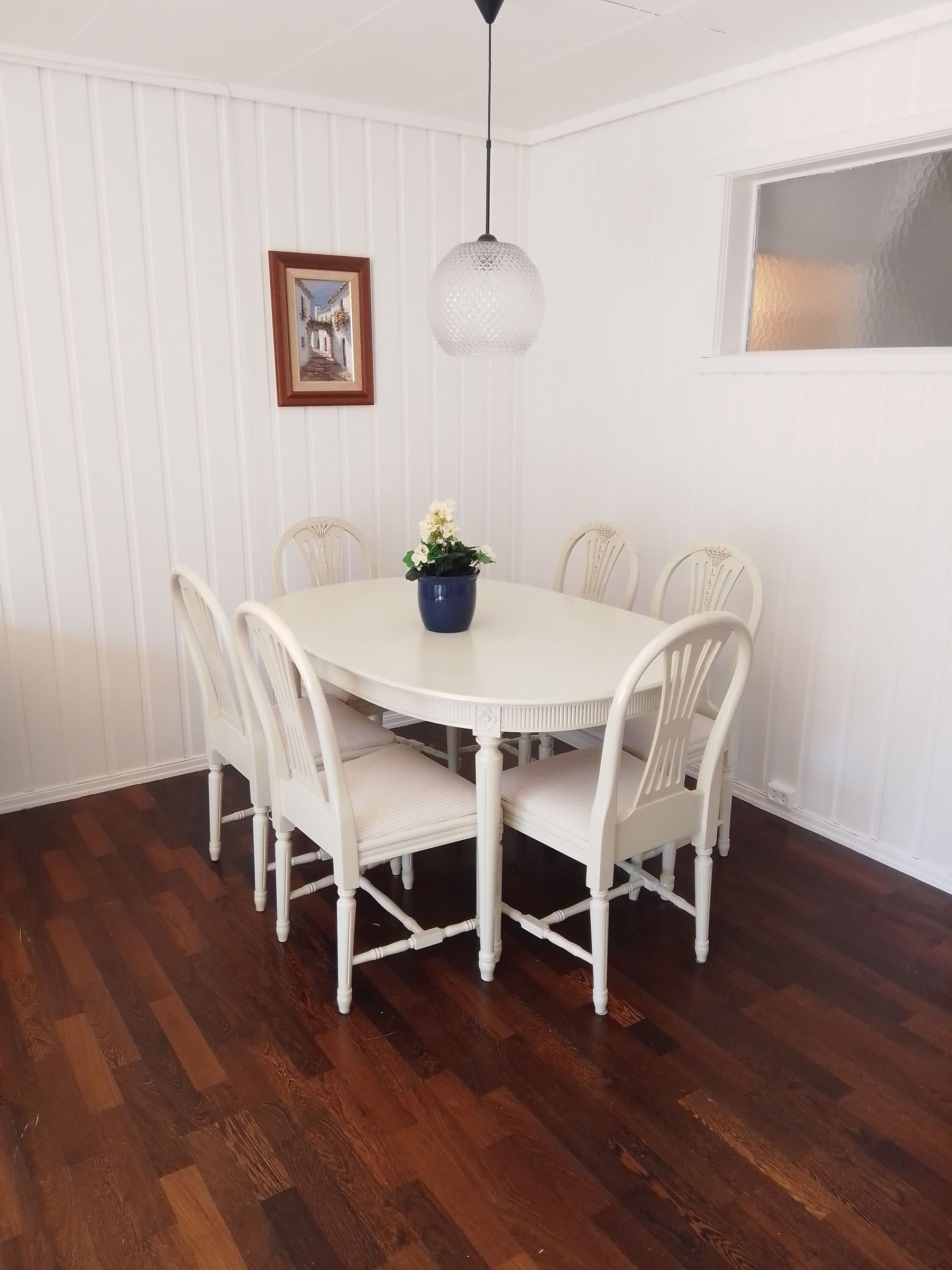 Huset er solid og fint med nye flater i nesten hele huset. Her kan man flytte inn uten å måtte pusse opp først, og man kan bo godt i huset mens man eventuelt pusser opp i noen rom. Noen vil sikkert ønske seg nytt bad i 2. etg. ( eller bare et lite toalettrom med WC og servant uten å måtte bygge våtrom ), samtidig med evt nytt bad i 2.etg, ville det sikkert være fint også å oppgradere bad /vask i underetasjen til moderne bad med alt man måtte ønske seg der, og kanskje nytt kjøkken med åpning mot stuen- med avtrekk i benkeskap kan vifte og kanal over komfyren fjernes slik at man kan ha det åpent inn mot stuen over benkeskapene. Det er også god plass til hel åpning inn mot stuen , og i så fall lukke igjen eksisterende døråpning fra kjøkken til gangen. Eller flytte hele kjøkkenet ut i stuen for å få et ekstra soverom der kjøkkenet er i dag. Det er mange muligheter. Den fine mørke merbeau-parketten ( fin, men med litt slitasje og gamle skader) vil sikkert også noen bytte ut med noe mer trendy, og den vakre gyldne panelen i 2. etasje vil kanskje noen male i duse farger. Her er det mange muligheter for ytterligere modernisering / oppussing - men det er ikke noe som MÅ gjøres ! NB. Hvis alt hadde vært tipp topp og trendy med nye bad og nytt kjøkken uten behov for oppgradering noe sted i huset, ville prisantydning vært vesentlig høyere. Prisantydning er satt på grunnlag av huset slik det nå fremstår. Hvis kjøper oppgraderer huset med nye bad og kjøkken antas verdien av huset å øke mye mer enn kostnaden ved oppgradering. Uansett vil verdien på huset øke og bli høyere enn verdien nåværende prisantydning er basert på, for denne boligen er priset lavt sammenlignet med andre solgte tilsvarende boliger. Merk for øvrig at små rekkehus gjerne har høyere kvadratmeterpris enn større boliger. Små rekkehus her selges for opp mot 12 millioner, se solgte boliger på finn ! Dette huset er lavt priset.