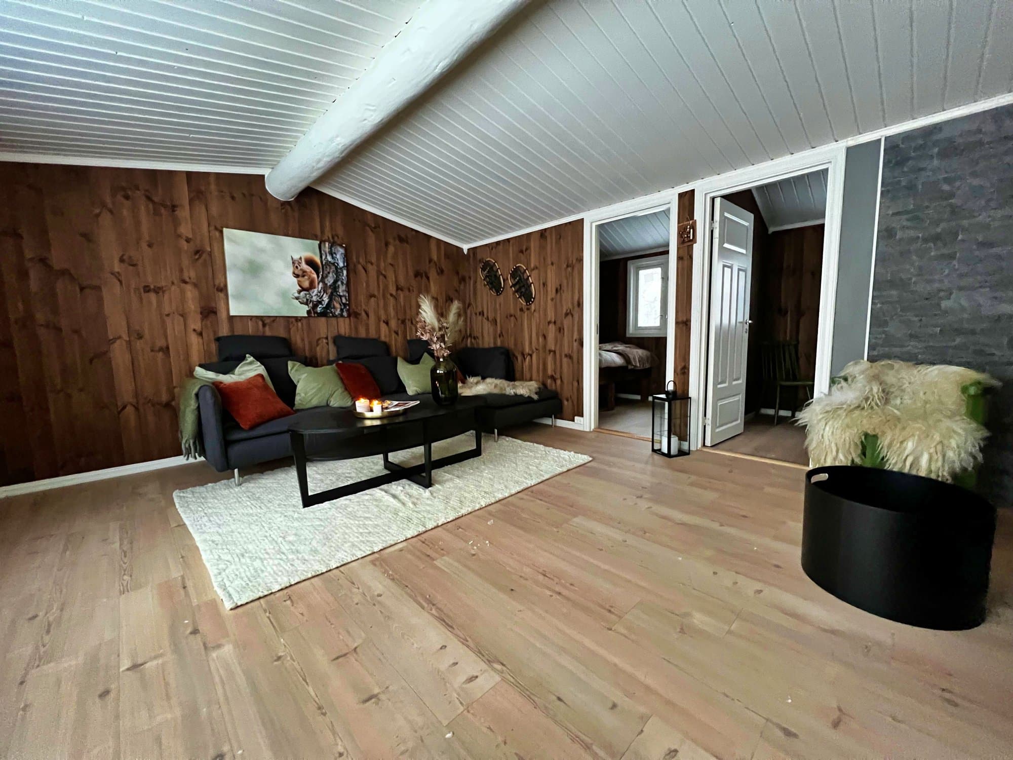 Oppgradert og usjenert familiehytte med solceller. Strålende beliggenhet! Eiet tomt.