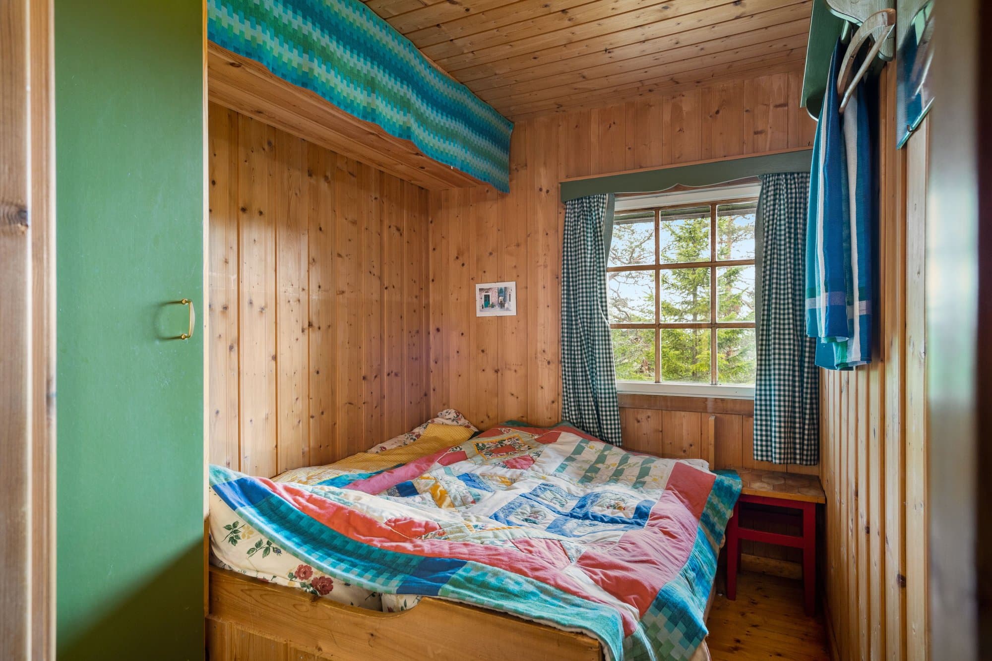 Visning etter avtale, ring eller tekst mobil 90563520. Solid og lun hytte bygget i 1964. Vestvendt tomt med flott utsikt, stor terrasse og hyggelig uteareal. Hytta har entre, to soverom, kjøkken, baderom med dusj. Stue med god takhøyde, sofakrok, peisovn, spisestue og store vinduer med utsikt mot vest. Utebod med god plass til ved og verktøy, avlukke med miljødo. Vestvendt terrasse med ettermiddagssol. Strøm fra solceller, gassbluss på kjøkkenet, mulighet for parafinovn. Kun 20 meter til ny, felles brønn, med aggregat som pumper rent, godt vann opp fra grunnen.