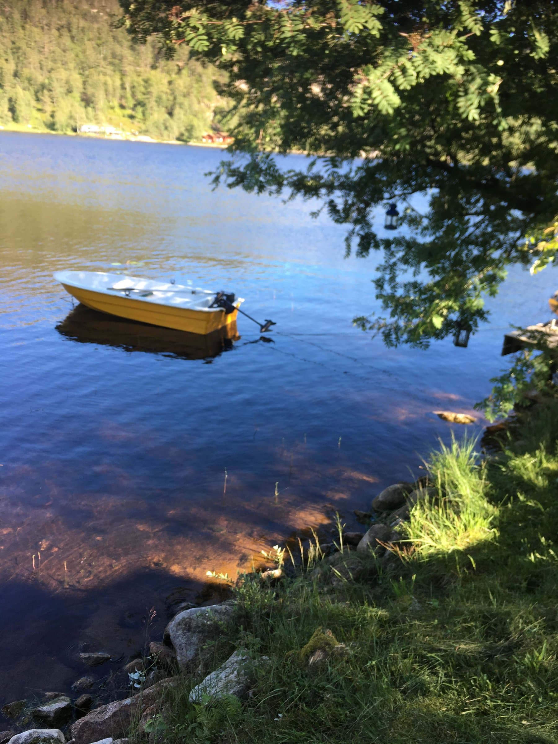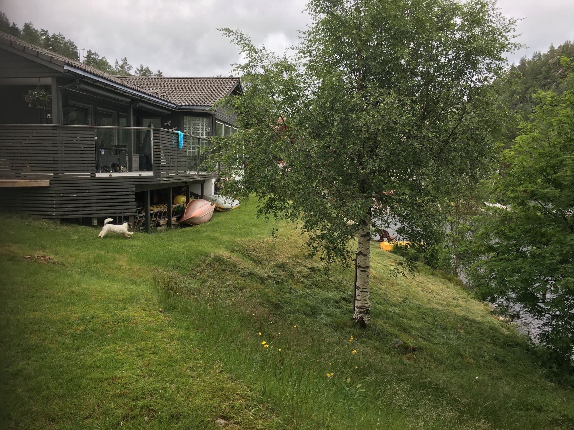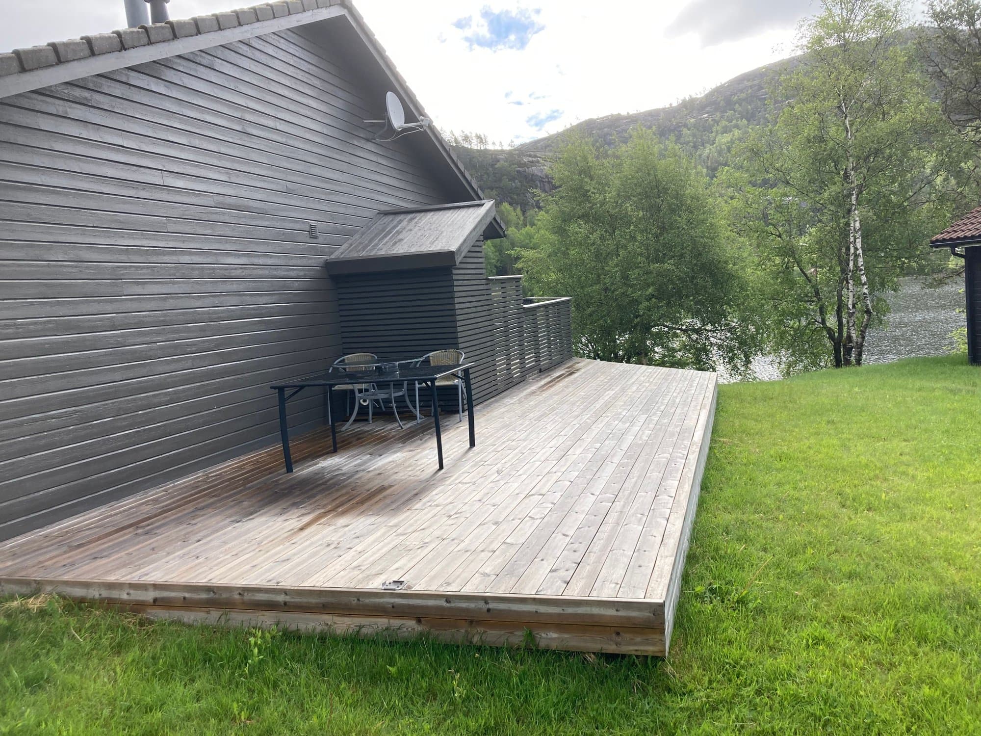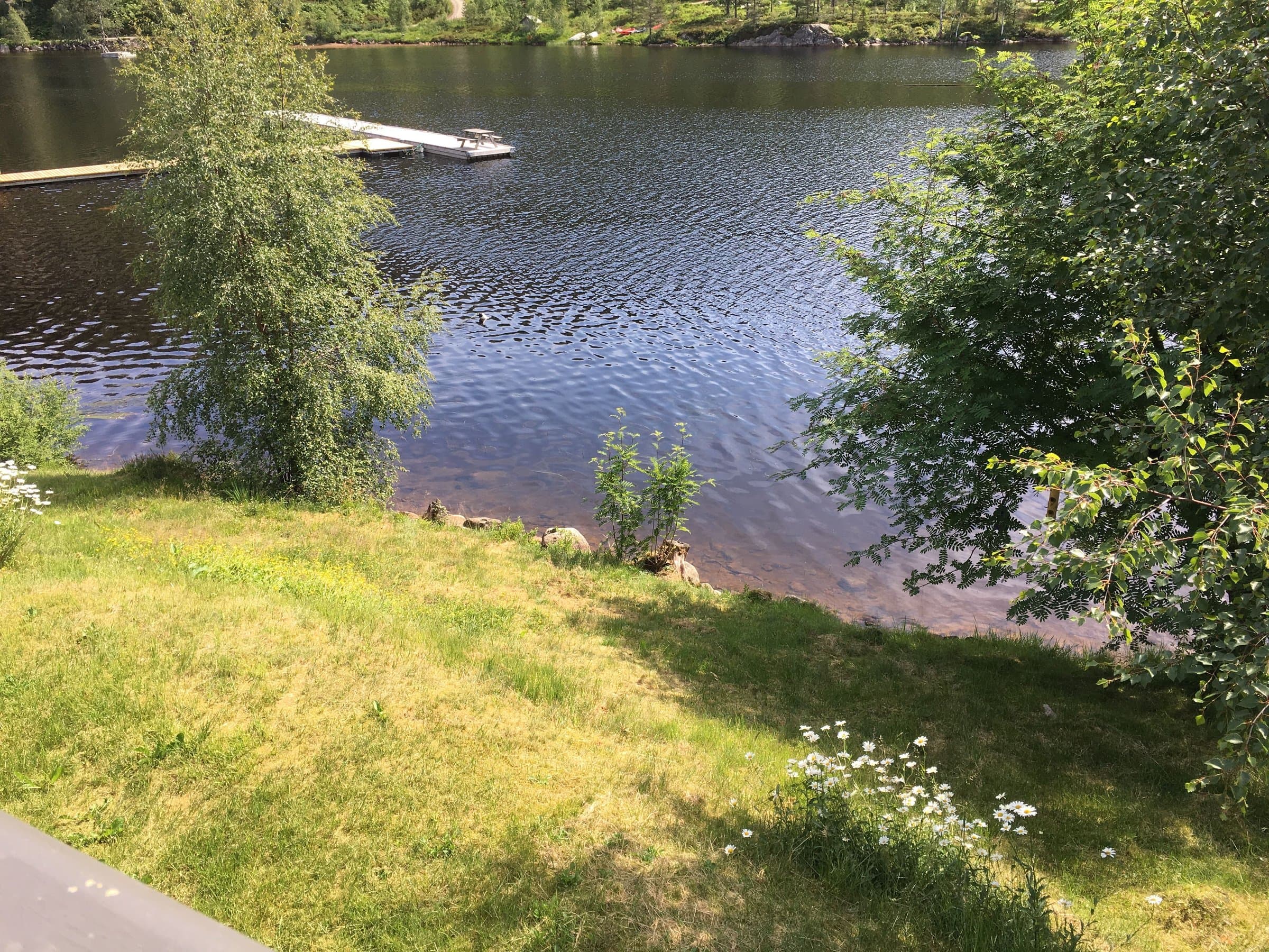 Det er terrasse rundt på to sider av hytten. Dermed har man sol fra morgen til kveld. Gressplen rundt hele hytten. Sandbunn fra tomten og ut i vannet. Meget gode fiskemuligheter...mye fisk i Krågelandsvannet