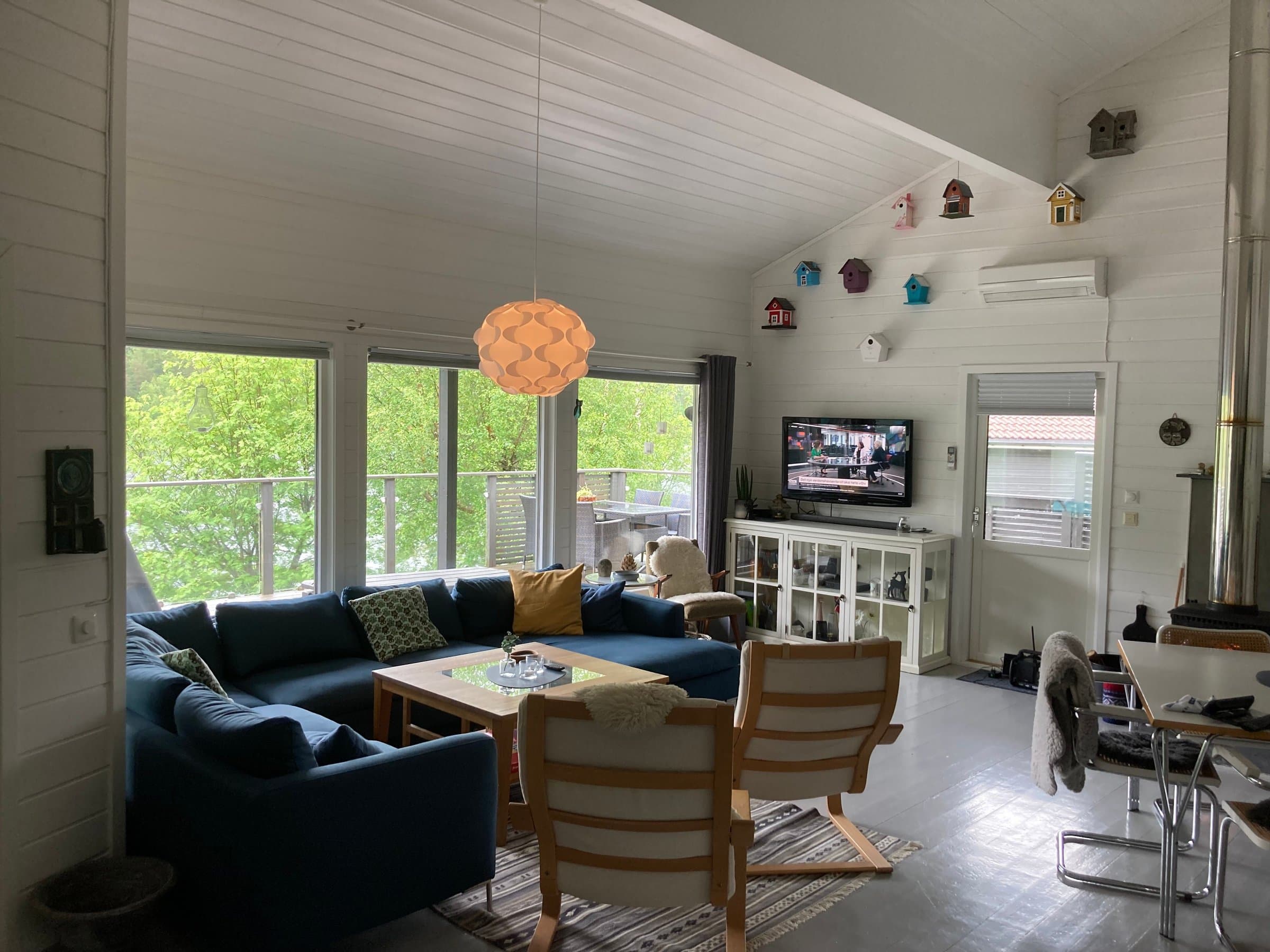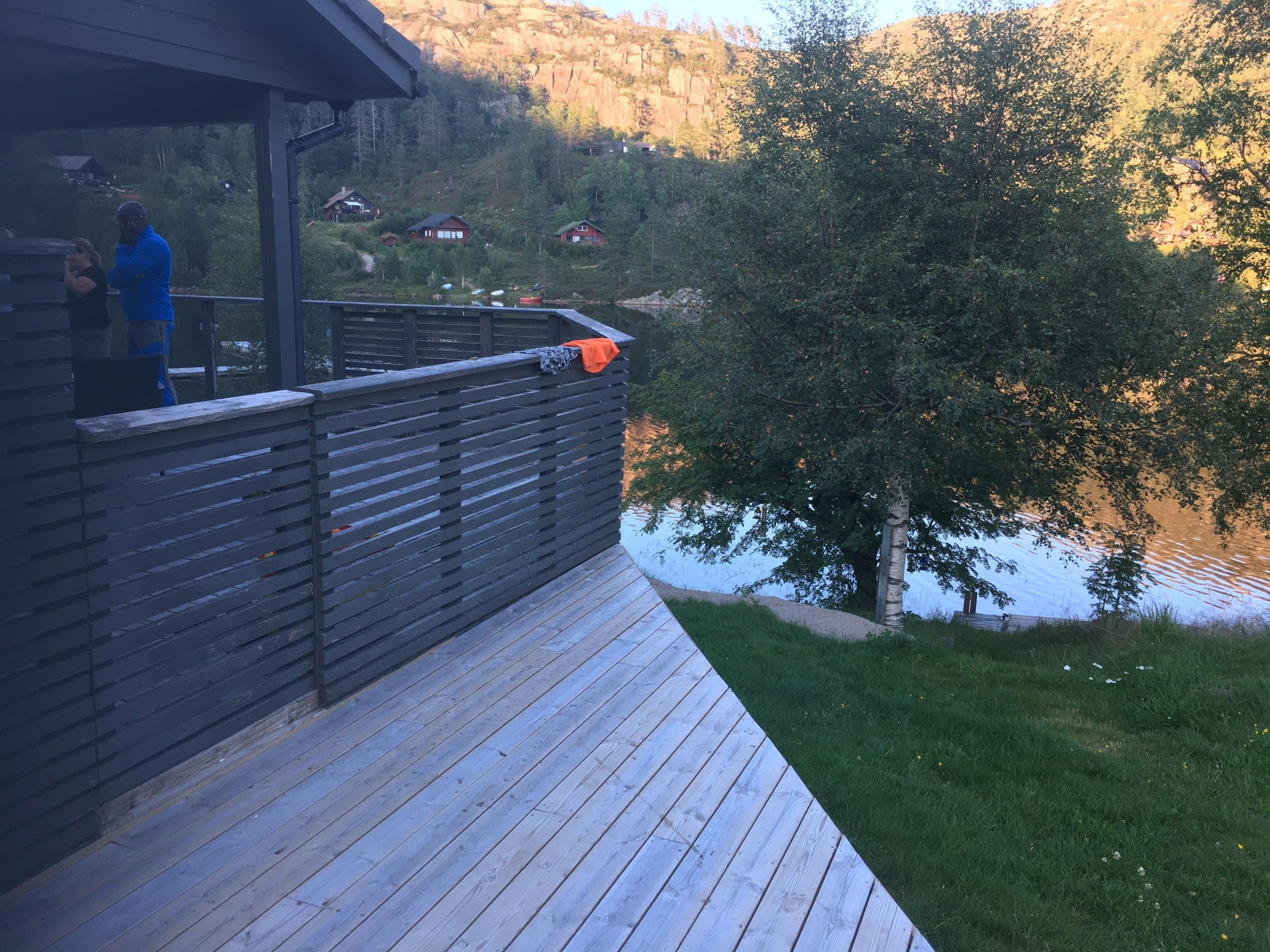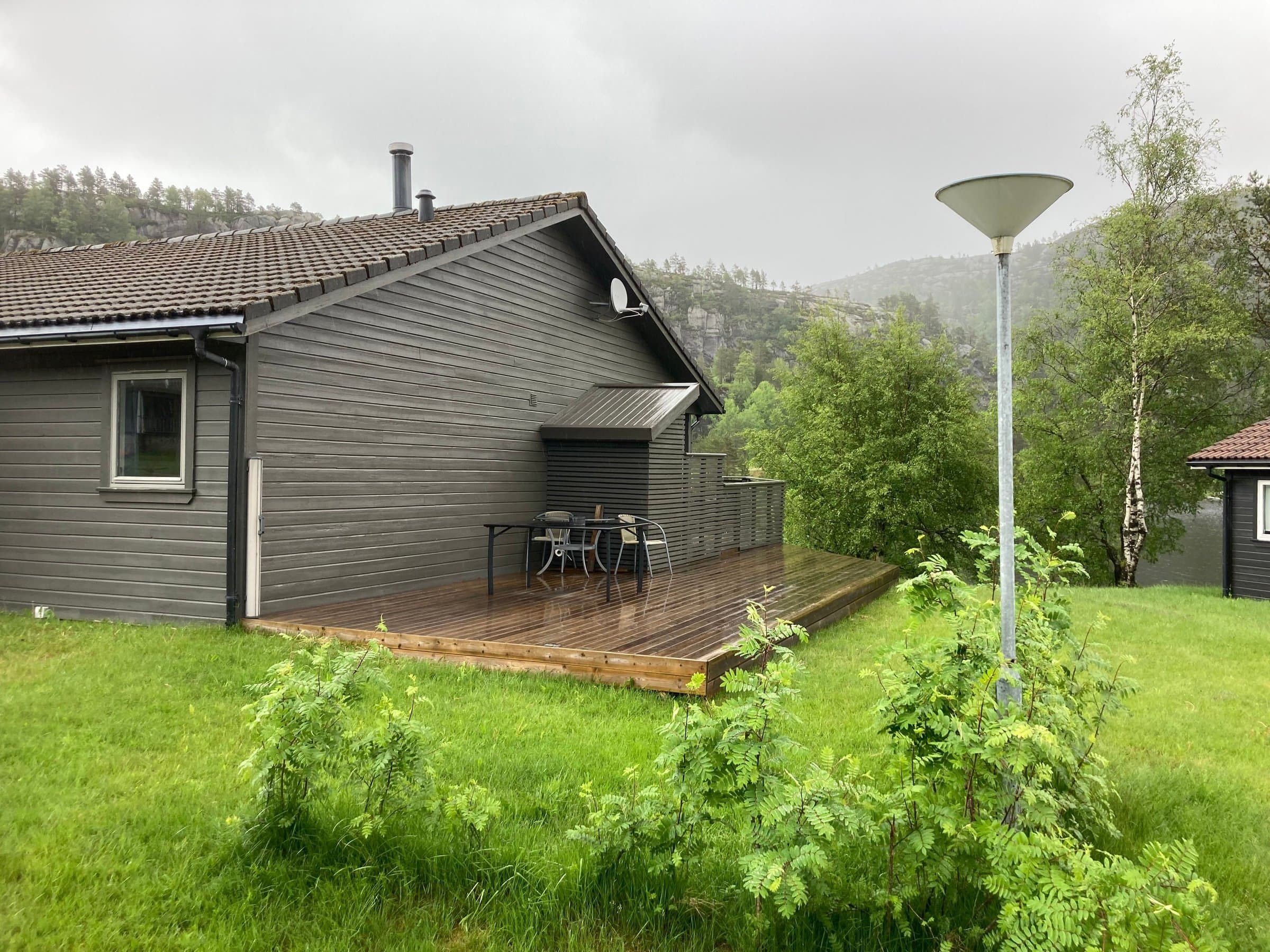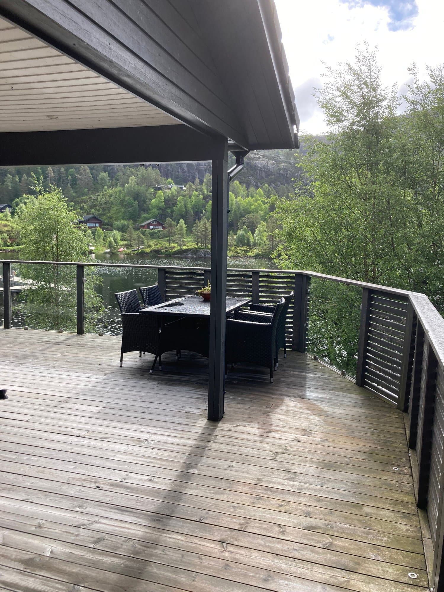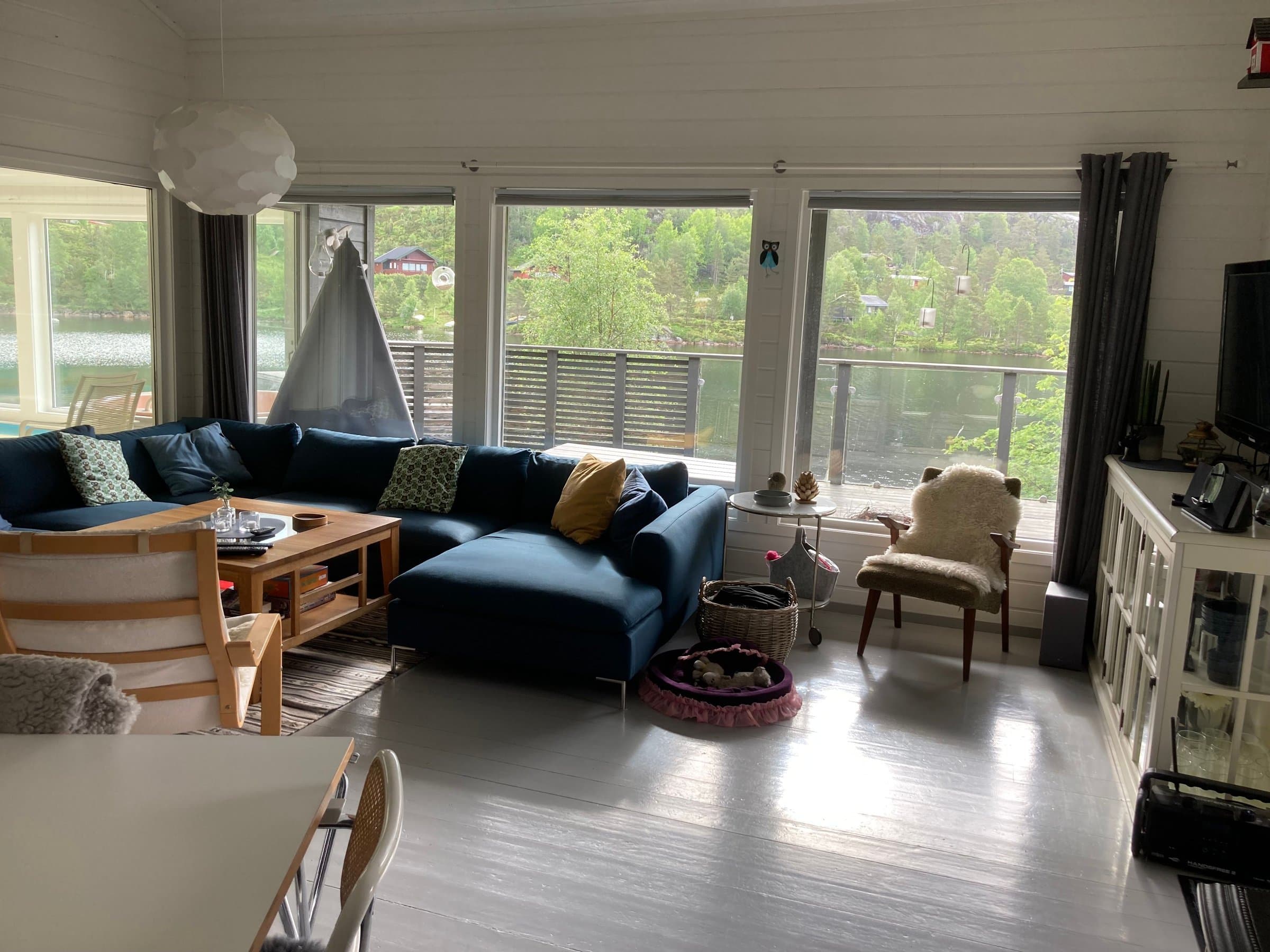 Det er terrasse rundt på to sider av hytten. Dermed har man sol fra morgen til kveld. Gressplen rundt hele hytten. Sandbunn fra tomten og ut i vannet. Meget gode fiskemuligheter...mye fisk i Krågelandsvannet