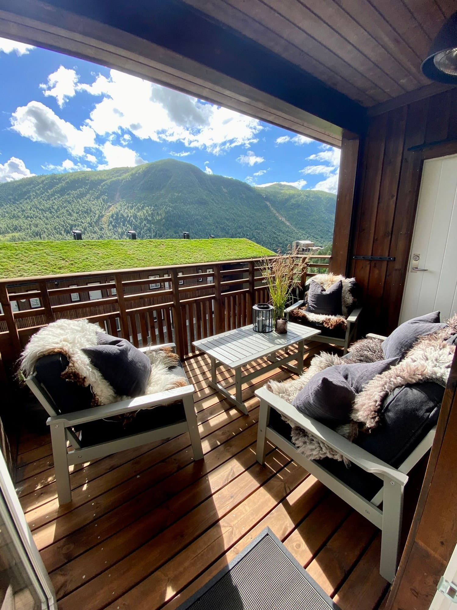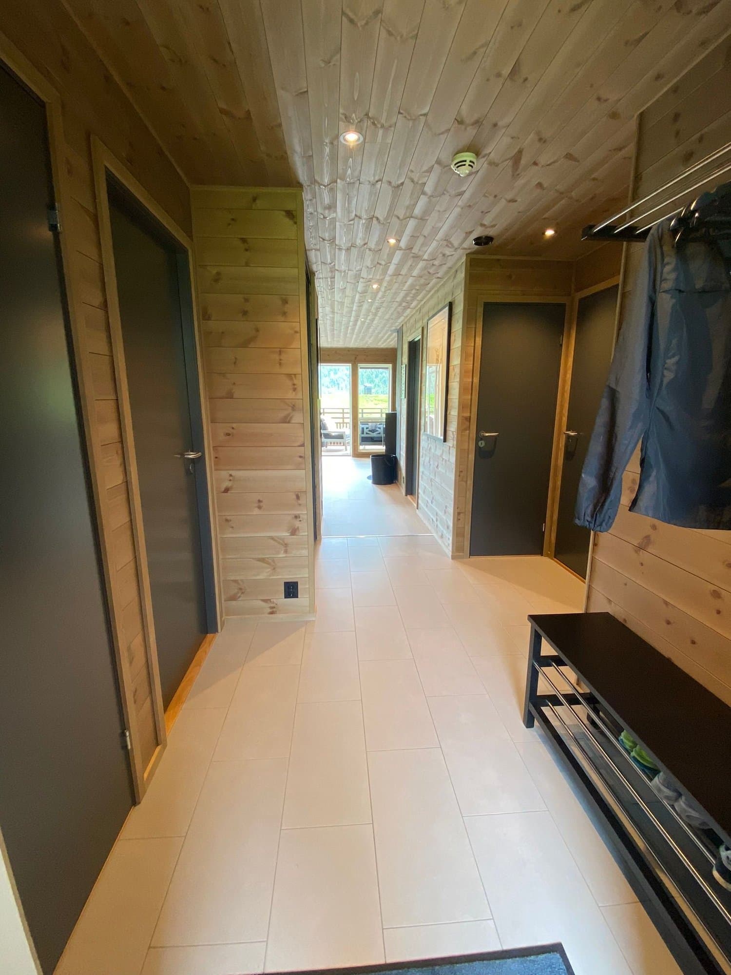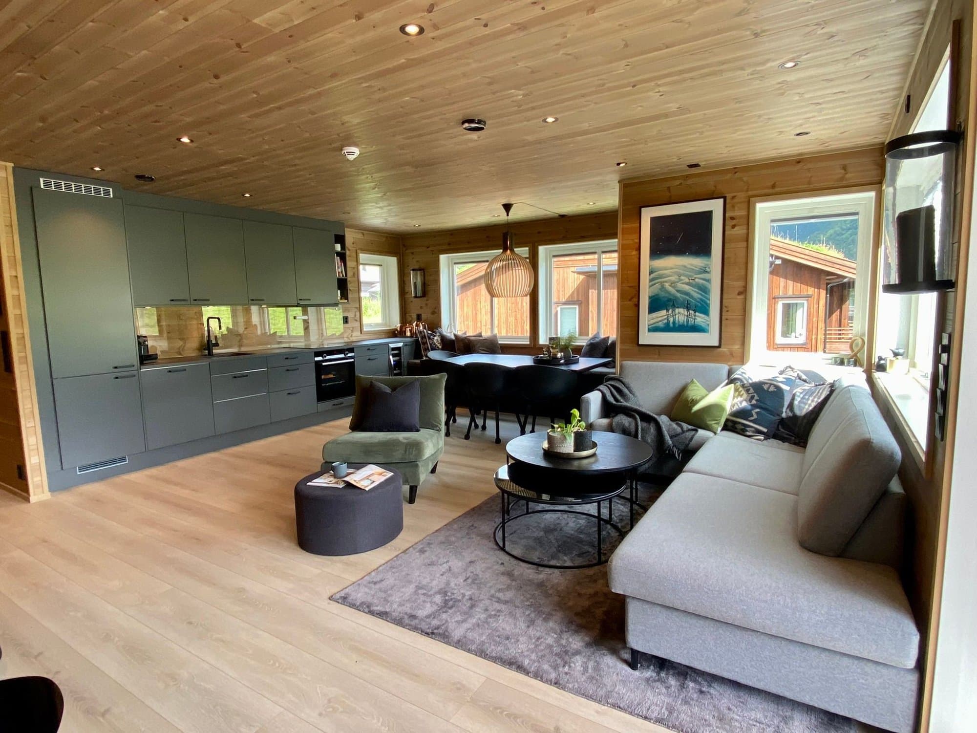 Hyttefølelsen uten snømåking og utvendig vedlikehold! Leiligheten ligger spesielt fint til da den ligger på enden av blokken i øverste etasje. Innholdsrik, moderne og stilren med romslig stue/kjøkken, fire soverom, baderom, wc/vaskerom og balkong. Om eiendommen: * Oppgradert fra opprinnelig leveranse * Strøken og romslig selveiende 5-roms fritidsleilighet. * Toppetasjen (2. etasje), endeleilighet. * Stilrent uttrykk og moderne kvaliteter. * Bygget i 2019 * 4 soverom med totalt 11 soveplasser. * Plassbygde familiekøyer fra Kvande & Nordvik møbelfabrikk med oppbevaringskuffer. 150 x 200 cm i underkøye og 90 x 200 cm i overkøye. * Plisse og lift gardiner bestilt etter mål. * Lekkert oppgradert Sigdal kjøkken med integrerte hvitevarer og vinskap. * Plassbygd garderobe Sigdal på master soverom. * Sigdal baderomsinnredning. * Plassbygd Elfa garderobe i gang. * Elfa oppbevaringsystem på vaskerom og skibod. * Leselamper på soverom med skjult kabelføring. * Lekkert sliltesterkt laminat gulv og fliser på gulv. * Sorte detaljer på stikkontakter, lysbrytere, armaturer og sluker. * Lakkerte dører og plassbygde senger i samme farge som kjøkken. * Åpen stue/kjøkkenløsning * Vedovn * Varmekabler i entré/gang, wc/ vaskerom og baderom. * Innlagt fiber * Parkering i carport med egen appstyrt Easee ladeløsning for EL-bil * Stor privat skibod i bakdel av parkeringsplass med balansert ventilasjon * Altan med flott utsikt og utvendig bod. * WiFi styrt oppvarming (både gulv og panelovner) * Yale Doorman lås på hoveddør og dør til skibod.