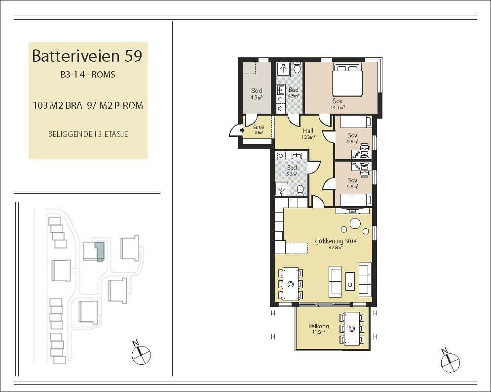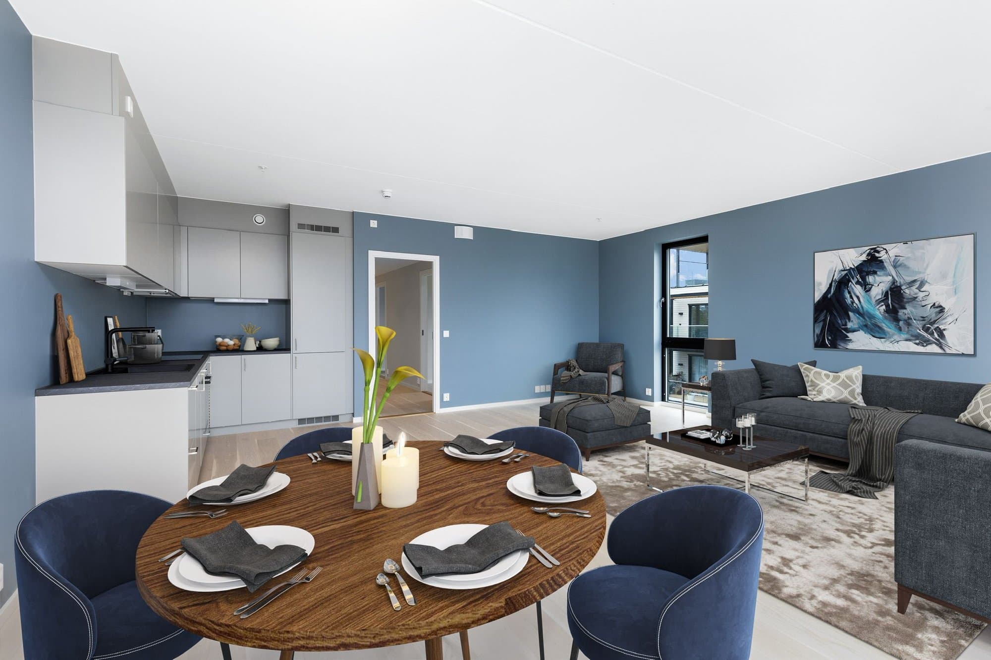 I tillegg til digital styling i bildene så har vi en 3D planløsning hvor du selv kan klikke deg rundt leiligheten. https://my.matterport.com/show/?m=qryue8SMD1K