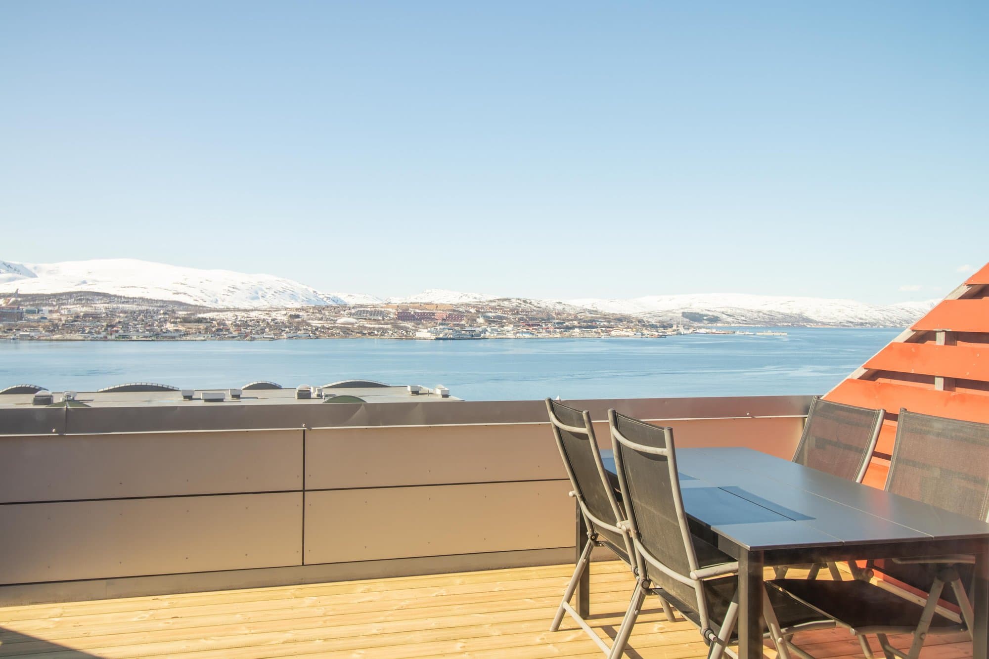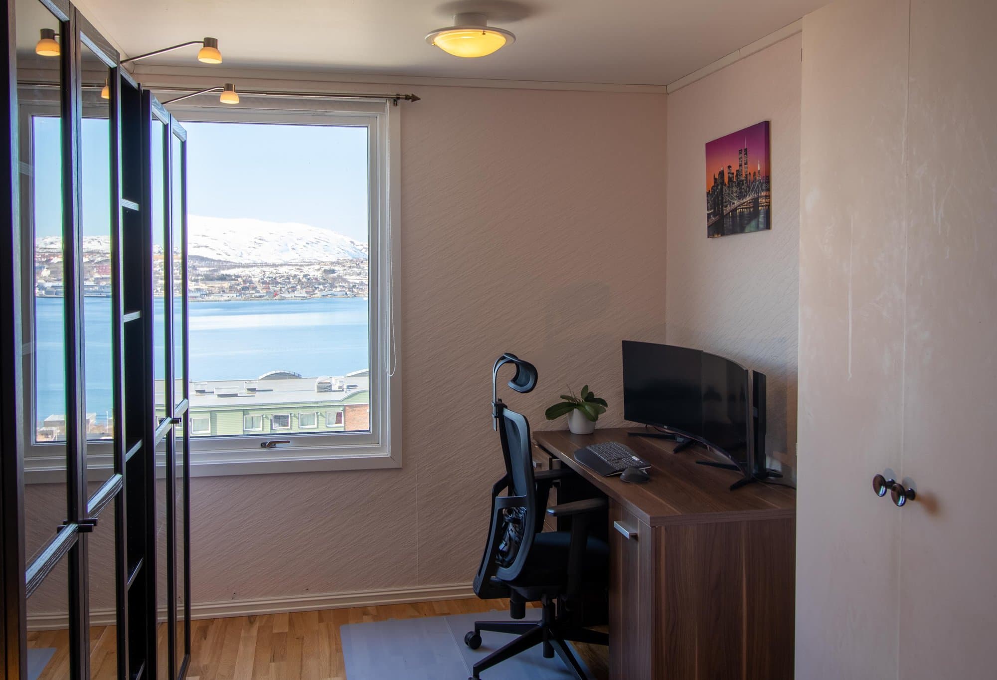 Eiendommen er beliggende i rolige og barnevennlige omgivelser på Lunheim. Terrasseblokken med boligdelen ligger høyt i terrenget på Lunheim og har utsikt mot Tromsøya, Tromsøysundet, deler av Kvaløya og Ringvassøya. Lunheim er en bydel i Tromsø som ligger på fastlandssiden mellom Kroken og Tomasjord. Området fremstår barnevennlig med flere lekeplasser og aktiviteter for barn og ungdom. Vestvendt beliggenhet med gode sol- og utsiktsforhold i et populært og etablert boområde. Gangavstand til matbutikk, skole, barnehage og bussholdeplass avganger til sentrum og UNN/UiT.