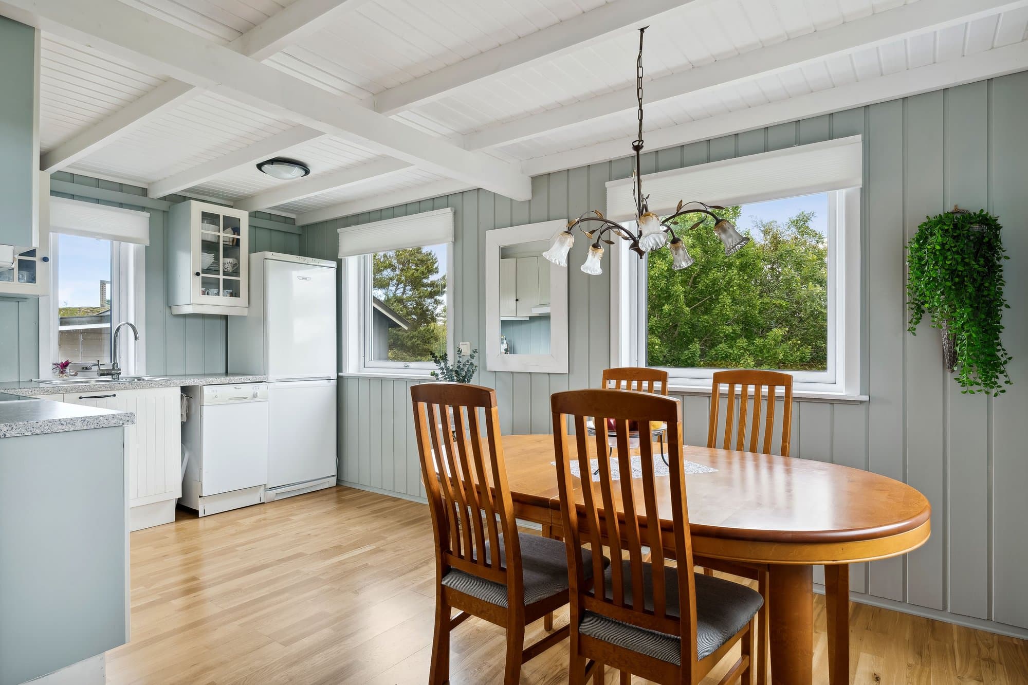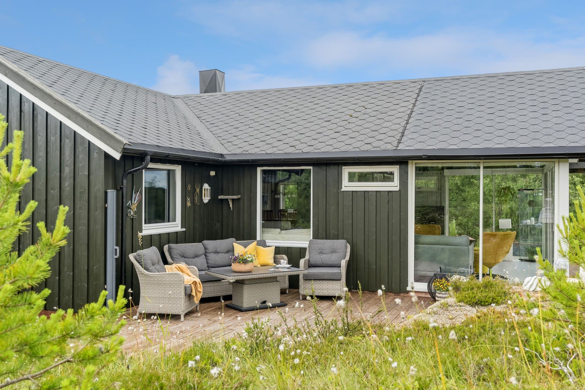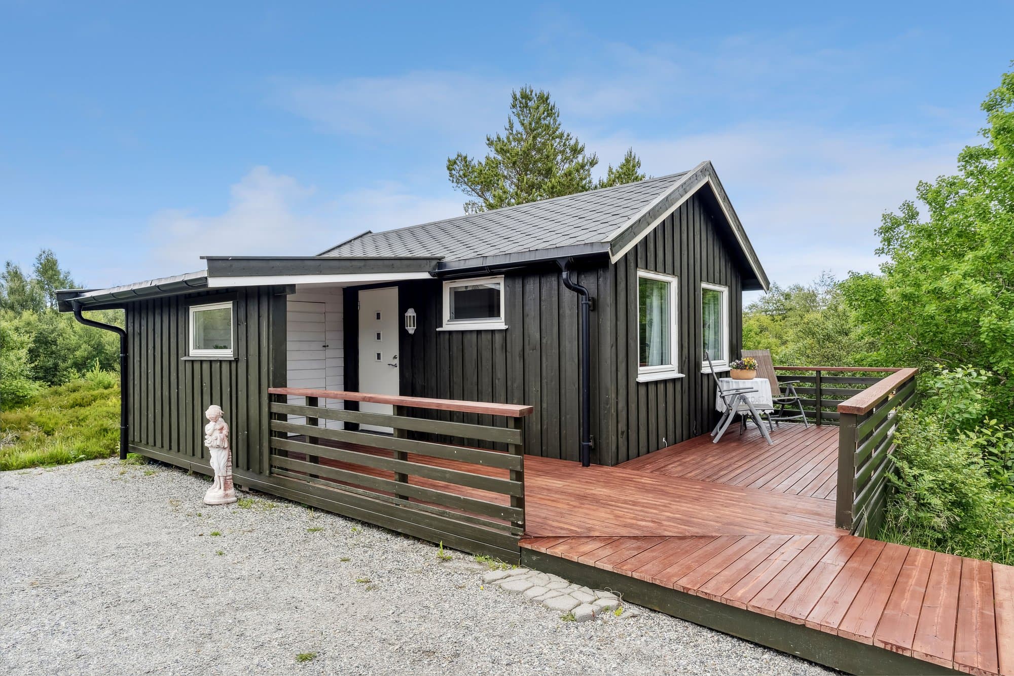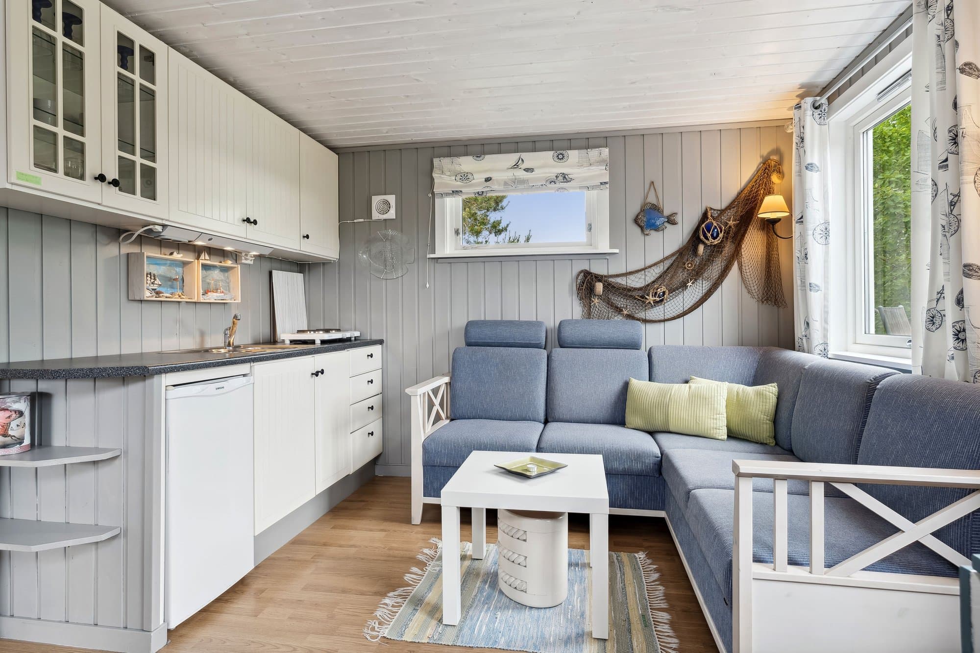 Hytta har WiFi, el-billader, mulighet for leie av båtplass. Hytta har 4-rom inklusive glasshuset. Glasshuset ble bygget i 2020 . Hytta ble malt opp i 2021, god standard, og består av: Vindfang med glass skyve garderobe, wc, bad/vaskerom 4,3 m2, entre, stue/kjøkken 36,2 m2 og 3 soverom. Hoved soverom har glass skyve garderobe. Originale gulv med parkett, vindfang, bad og toalett har vinyl. Det er malte panel.vegger i alle rom, unntatt bad, hvor vegger har malt glassfiberstrie og dusjhjørne har vinyl.. God takhøyde og delvis store vinduer. Det er terrasser rundt hele hytta. Glasshuset er 18 m2 og alle dører kan åpnes ut mot terrasser. Det er en hems over deler av hytta. Det er galleri ved hemsen. Hytta ligger i Dolmsundet hytte- og båtforening, et hyttefelt med hyggelig nabolag (kontigent kr 1.500/år). Denne hytta ligger usjenert, men har god nærhet til Dolmsundet. Det er kort vei til kollektivtransport, matbutikker, kafeer og annet. Det er en stor gårdsplass og plass til mange biler. Det er parabol og WiFi på hytta/anneks. Det er lagt inn 3-fas strøm og el-billader på hytta På tomta er en bod for ved, verktøy og annet som trengs oppbevaring. Det er et Anneks på 22 m2 som har vært utleid. Annekset inneholder bod, vindfang, bad/wc, soverom og kjøkken/stue. Det er 2 gode terrasser på annekset.