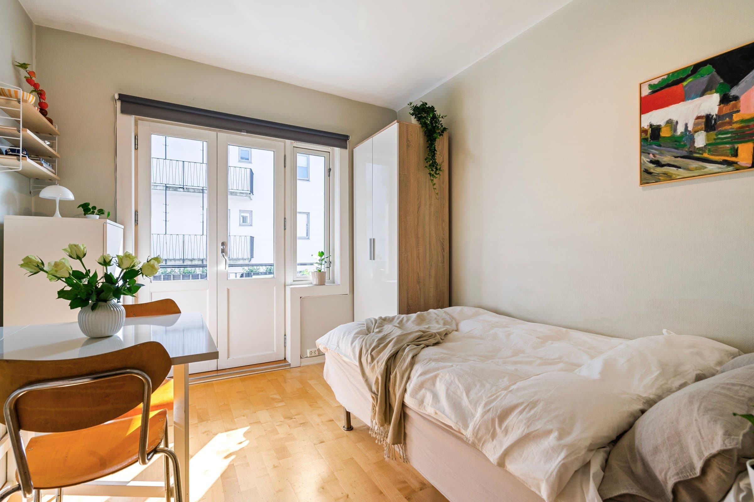 Velkommen til Eugenies gate 3A! En lys og arealeffektiv aksjeleilighet på populære Bislett/Bolteløkka med kort vei til alt sentrum har å by på. Flere høyskoler som OsloMet, Veterinærhøyskolen, Tannlegehøyskolen og Universitet på Blindern er i nærheten. Leiligheten ligger i 3.etasje og vender mot rolig bakgård. Store vindusflater sikrer rikelig med lys inn i leiligheten. Dette er en flott leilighet som passer perfekt til førstegangskjøpere, studenter og pendlere. Kort om eiendommen: - Sentral beliggenhet med gangavstand til "alt" - Stor balkong med gode solforhold - Ingen dokumentavgift - Varmtvann, kabel-tv og internett inkludert i felleskostnadene - Lave fellesutgifter - To store kjellerboder (ca. 3,5m² og 5,5m².) - Fellesvaskeri - Eugenies gate 3A ligger i rolig blindvei - Godt kollektivtilbud med trikk og buss - En perfekt bolig for førstegangskjøpere, pendlere og studenter Velkommen!