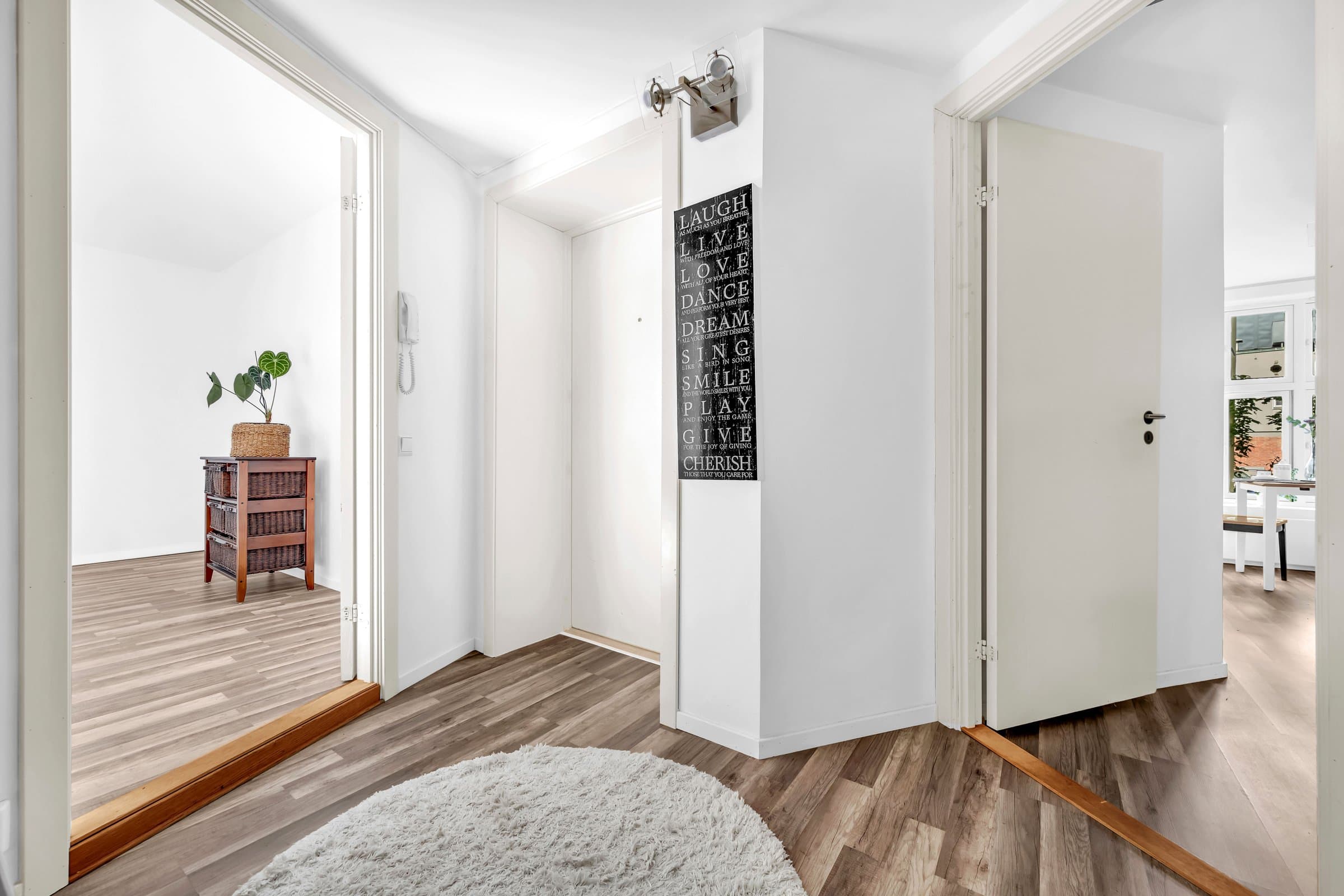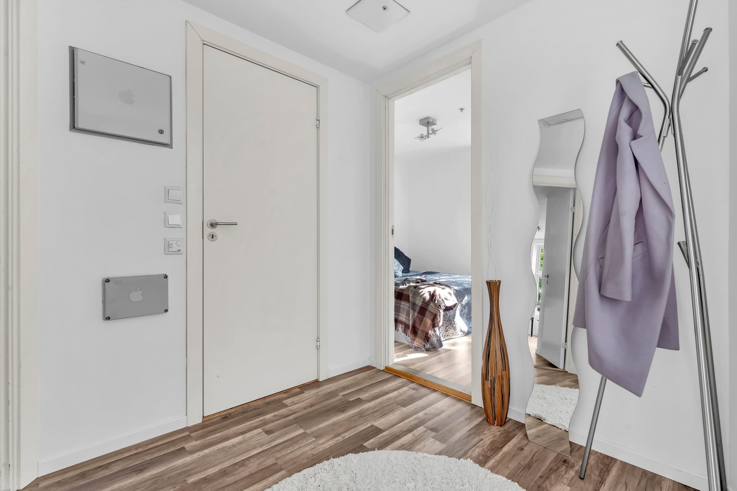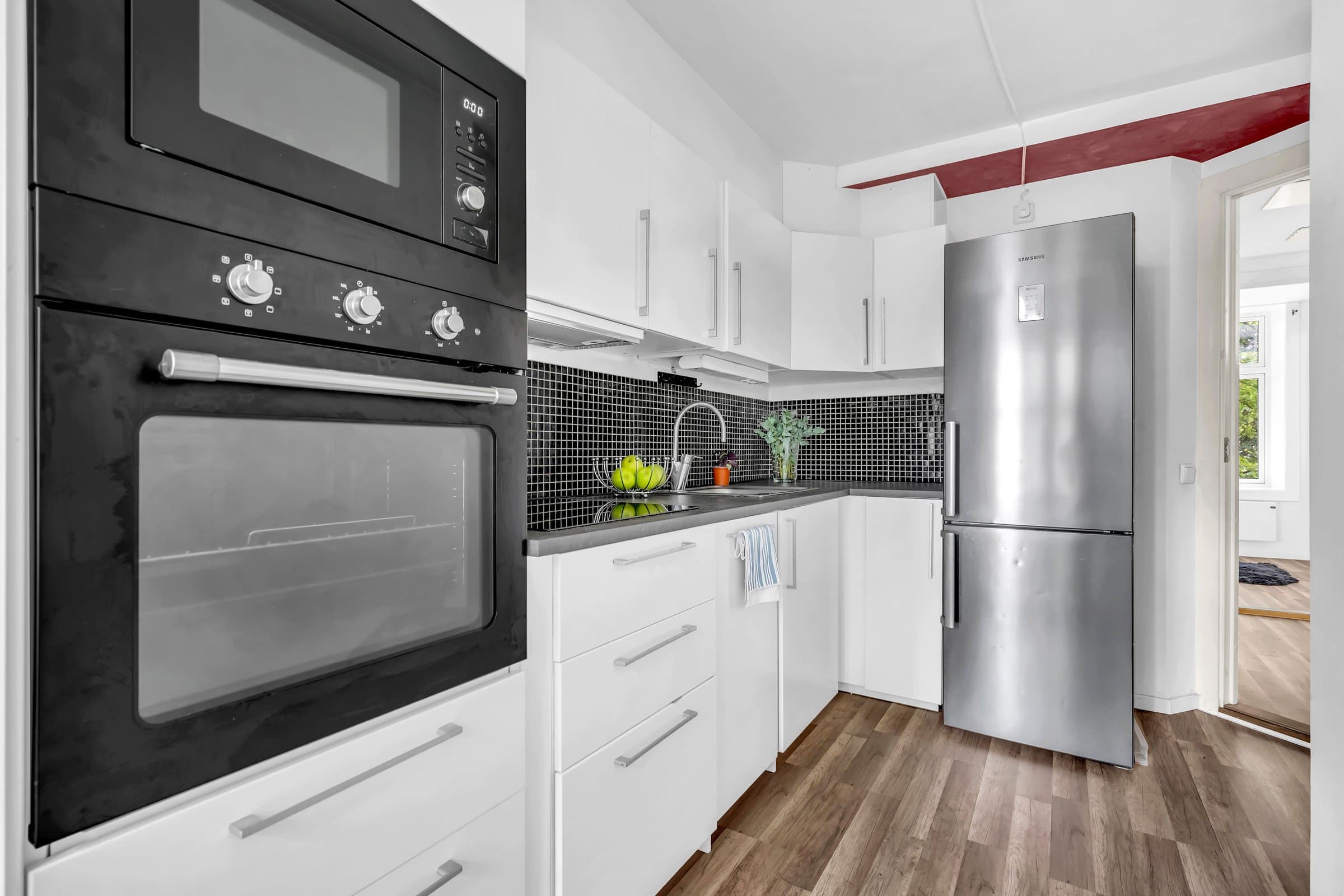 Andre etasje. Entre, stue, kjøkken, bad/WC/vaskerom og soverom. I tillegg kommer en kjellerbod og en bod i oppgang. Entre/ gang/ hall Entreen er praktisk innredet og har ny parkett på gulv, åpen garderobeløsning og callinganlegg, og gir et godt innrykk av boligen. Rommet er i lyse og tidsriktige farger, noe som er gjennomgående for de øvrige rommene i boligen. Kjøkken Nytt og moderne kjøkken fra 2022. Praktisk designet med god benke- og lagringsplass. Fliser over benk med tidsriktige farger. Enkel vaskekum benkebelysning, varmtvannsbereder, stekeovn ventilator og oppvaskmaskin. Stue Leiligheten har en lys og koselig stue med god plass til sofa og TV-løsning. Rommet har også brede vindusflater som gir leiligheten og stuen fantastisk samt rikelig dagslys. Bad/ wc / vaskerom Boligen inneholder ett bad utstyrt med fliser på gulv, fliser på vegg, downlights belysning, enkel servant, servantmøbler, belysning over speil, veggmonter toalett, dusjhjørne og opplegg for vaskemaskin. Soverom Leiligheten har ett romslig soverom med tilhørende garderobeløsning, Boder Boligen har god lagringsplass med bod i felles kjeller og i oppgang.