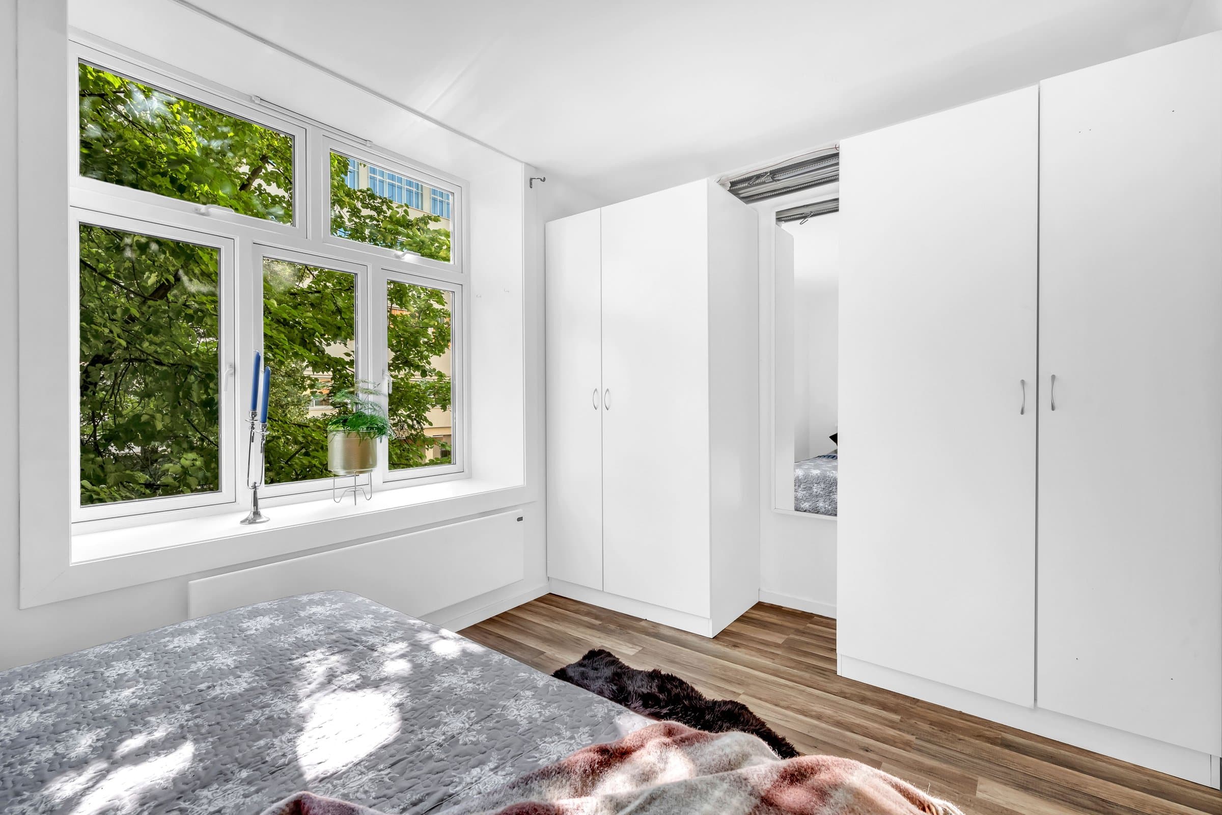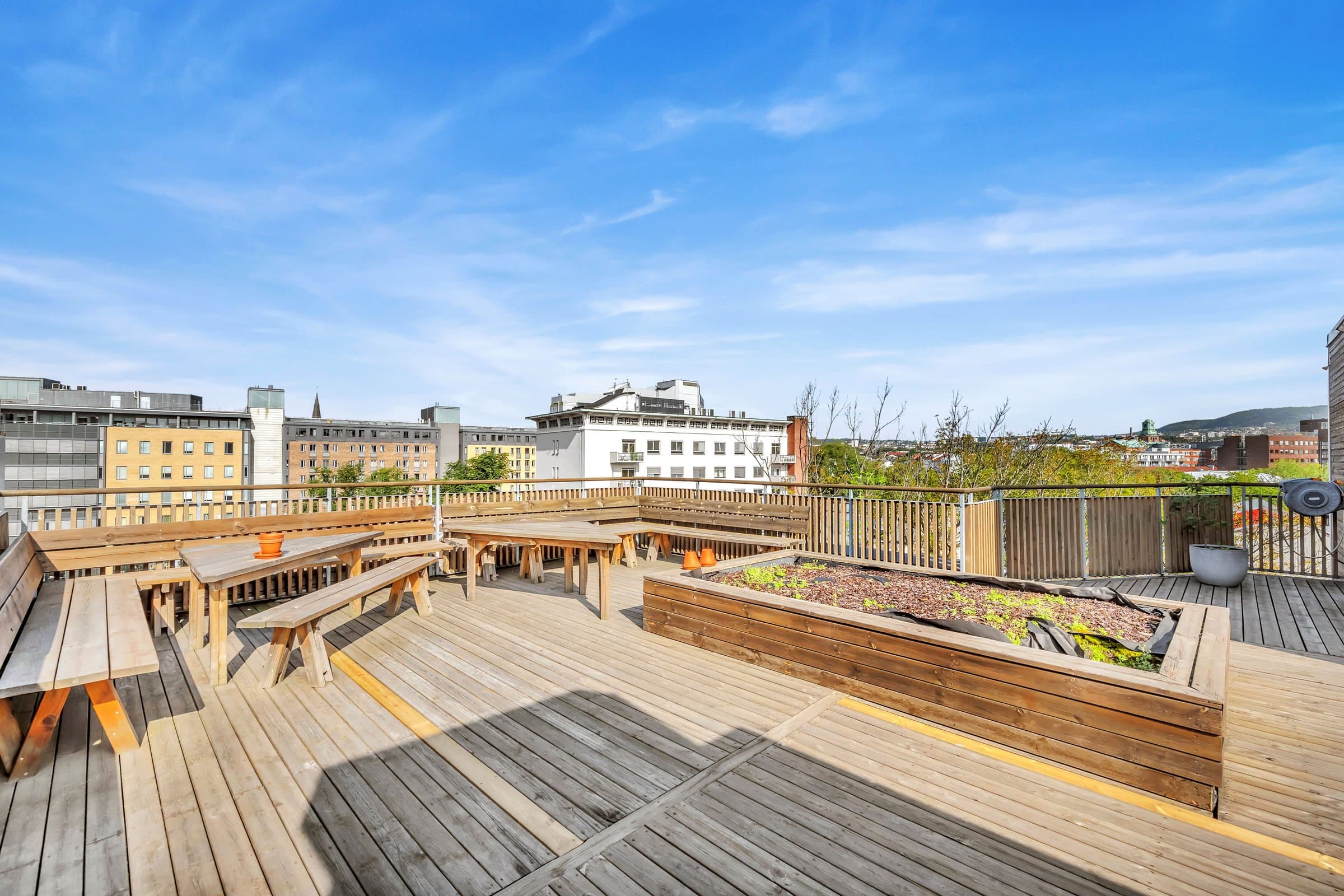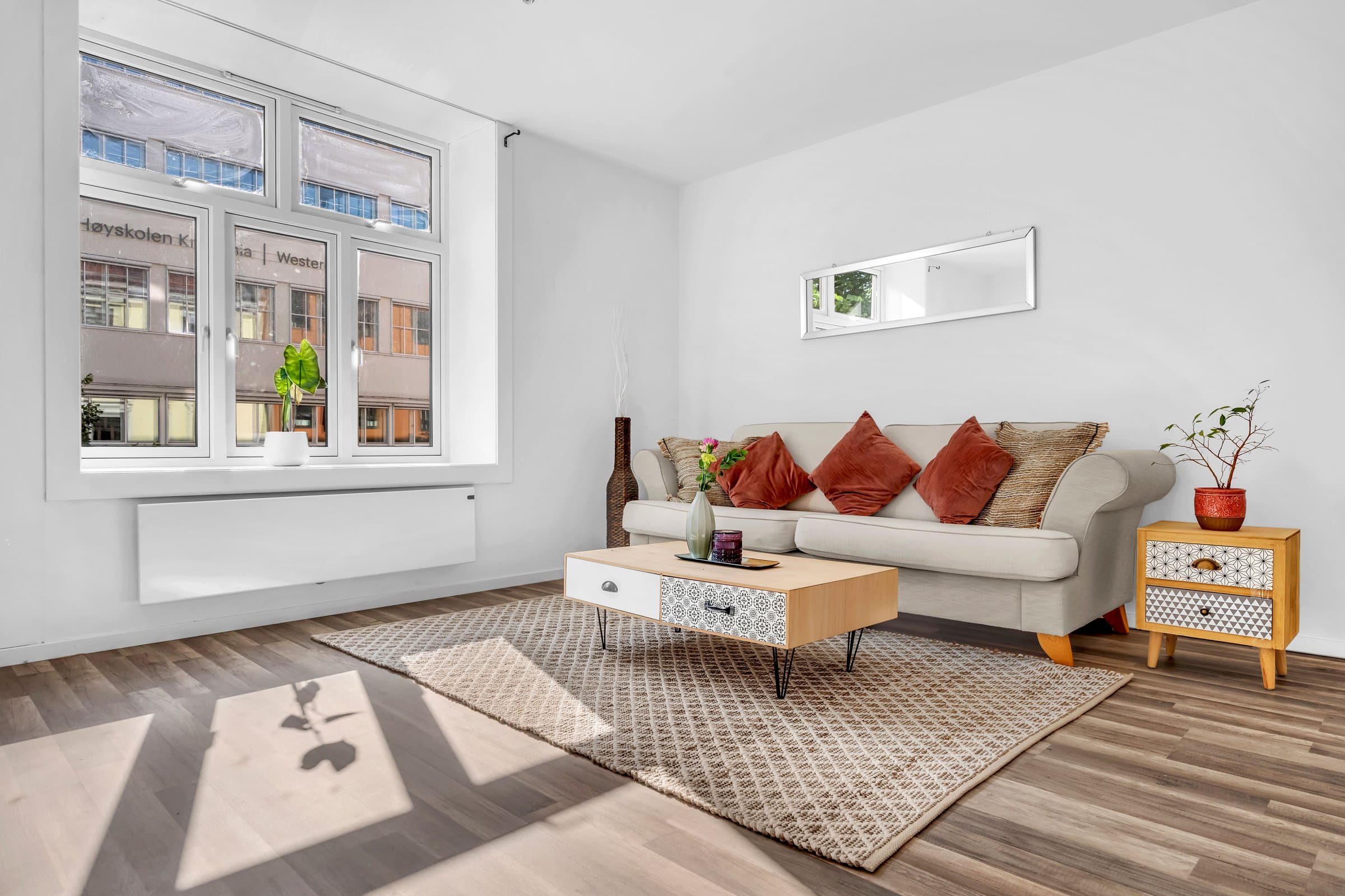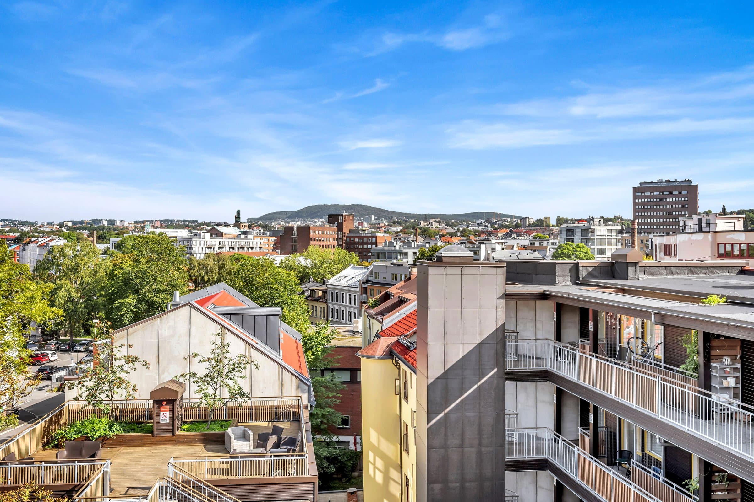 Sentral og Lekker 2-roms Andelsleilighet med God Planløsning Denne 2-roms andelsleiligheten er en attraktiv perle med en ideell beliggenhet, og befinner seg i en bygård som gjennomgikk totalrenovering i 2007. Leiligheten har en meget god planløsning med et splitter nytt kjøkken fra 2022. Kjøkkenet har en separat spiseplass og integrerte hvitevarer. Boligen byr også på en stor, lys stue samt et romslig soverom med rikelig med skapplass. Badet er flislagt og velutstyrt, i tillegg har leiligheten en privat bod i kjelleren og en ekstra bod i oppgangen. Videre har du tilgang til hele to solrike takterrasser og muligheten til å leie en parkeringsplass. - Moderne 2-roms leilighet fra 2006/2007 med høy standard. - Gateparkering tilgjengelig med mulighet for garasjeplass ved søknad til Q-park. - Rolig og pent opparbeidet bakgård med vakker beplantning og sittegrupper. - To flotte takterrasser med frodige grøntområder. - Entré med parkettgulv, åpen garderobeløsning og callinganlegg. - Nytt kjøkken med integrerte hvitevarer fra 2022. - Lys og innbydende stue med god plass til både sofa og TV-løsning. - Flislagt bad med dusjhjørne og plass til vaskemaskin. - Ett romslig soverom med praktisk garderobeløsning. - Privat bod i felles kjeller samt en ekstra bod i oppgangen. - Leiligheten er tilknyttet kabel-TV med inkludert bredbånd. - Gangavstand til barneskole, ungdomsskole og barnehage. - Flere rekreasjonsmuligheter i nærområdet med grønne parkområder. - Midt i hjertet av Oslo sentrum med gangavstand til alle servicetilbud. - IN-ordning - Ingen dokumentavgift