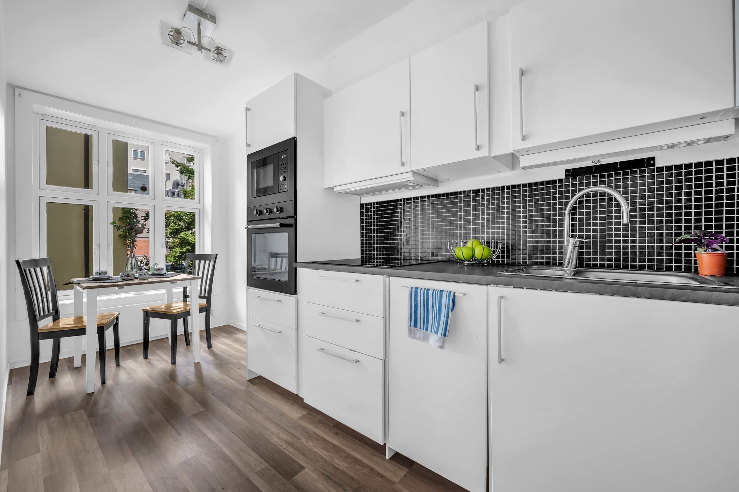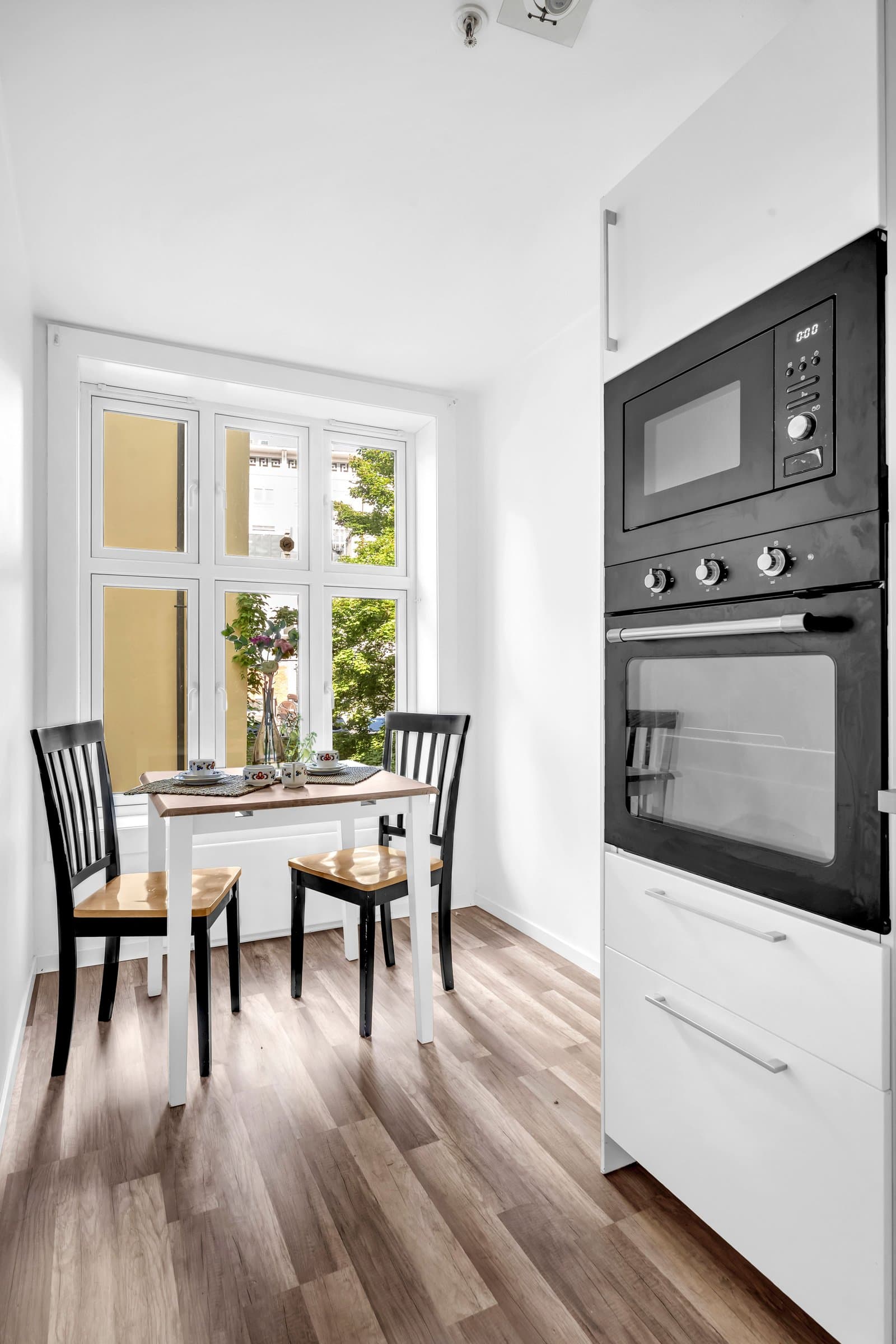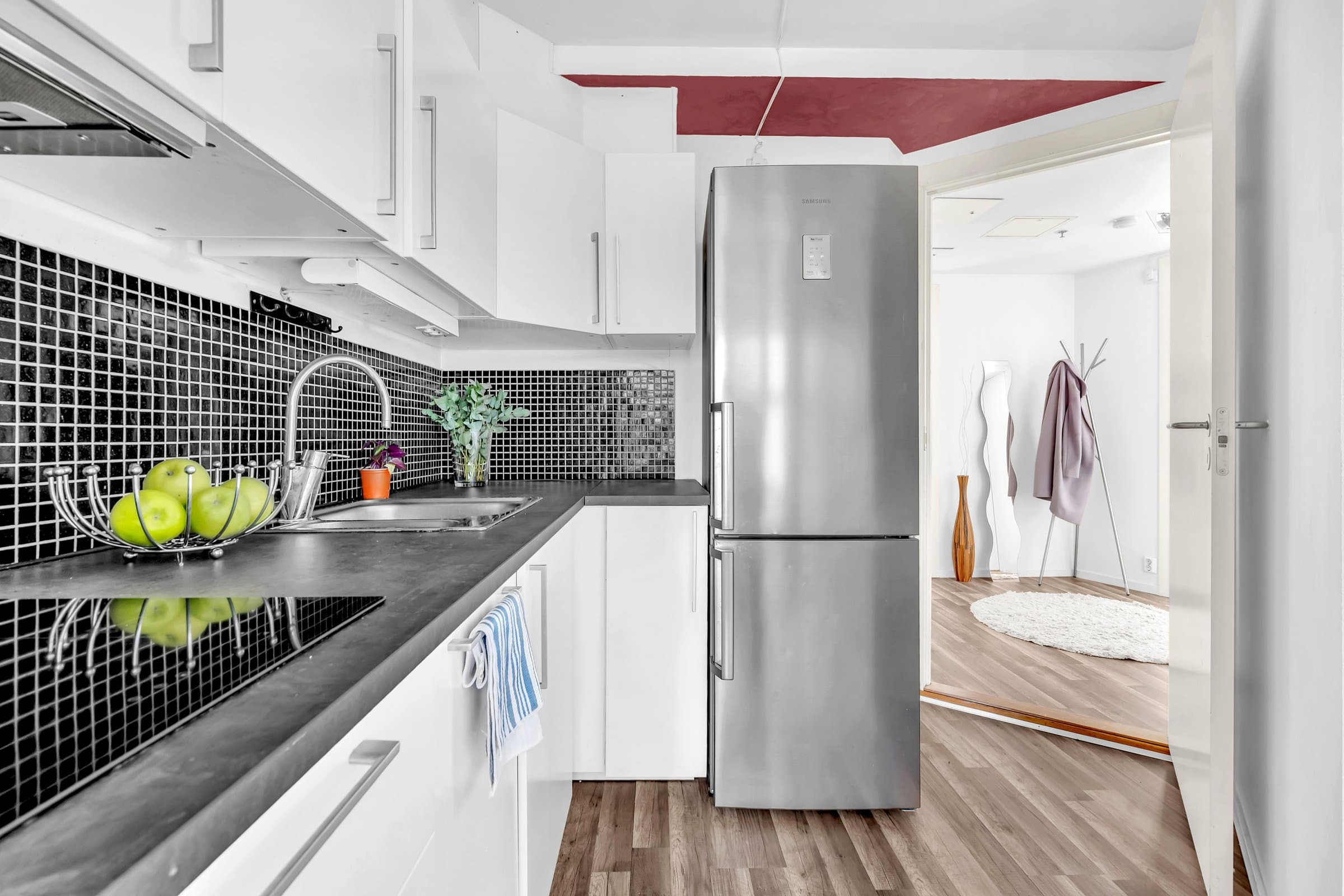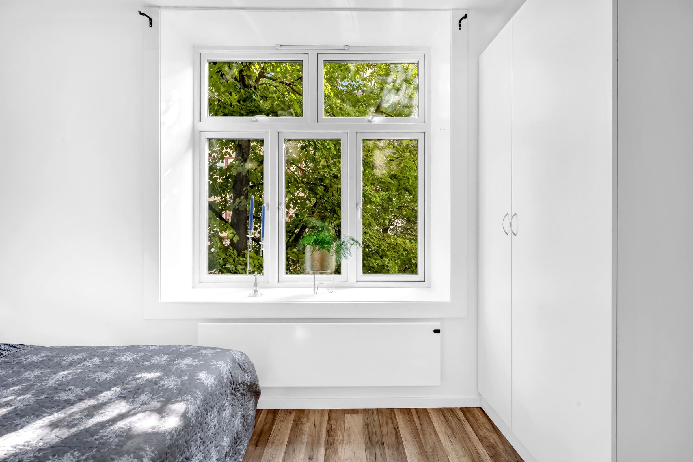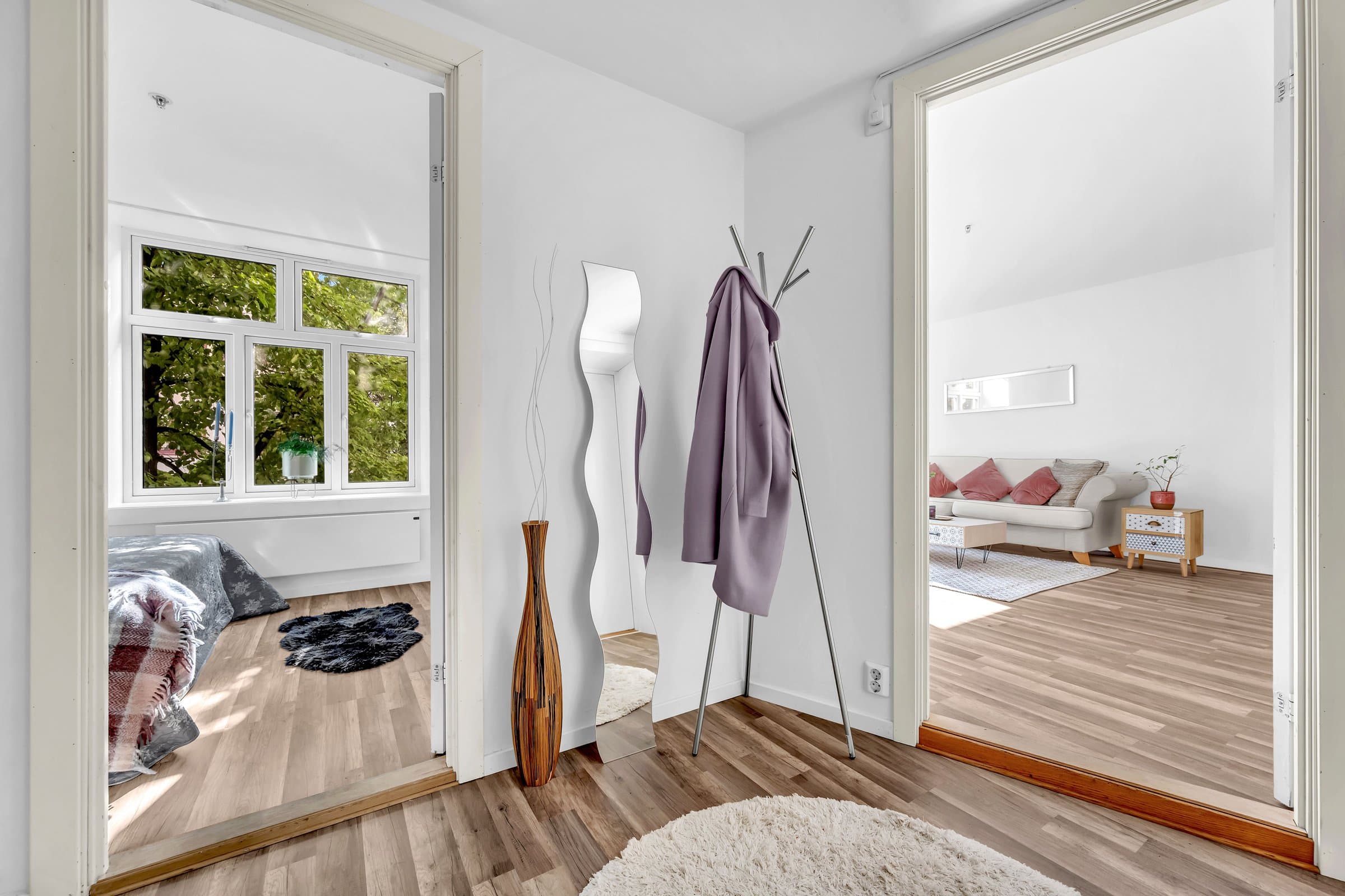 Sentral og Lekker 2-roms Andelsleilighet med God Planløsning Denne 2-roms andelsleiligheten er en attraktiv perle med en ideell beliggenhet, og befinner seg i en bygård som gjennomgikk totalrenovering i 2007. Leiligheten har en meget god planløsning med et splitter nytt kjøkken fra 2022. Kjøkkenet har en separat spiseplass og integrerte hvitevarer. Boligen byr også på en stor, lys stue samt et romslig soverom med rikelig med skapplass. Badet er flislagt og velutstyrt, i tillegg har leiligheten en privat bod i kjelleren og en ekstra bod i oppgangen. Videre har du tilgang til hele to solrike takterrasser og muligheten til å leie en parkeringsplass. - Moderne 2-roms leilighet fra 2006/2007 med høy standard. - Gateparkering tilgjengelig med mulighet for garasjeplass ved søknad til Q-park. - Rolig og pent opparbeidet bakgård med vakker beplantning og sittegrupper. - To flotte takterrasser med frodige grøntområder. - Entré med parkettgulv, åpen garderobeløsning og callinganlegg. - Nytt kjøkken med integrerte hvitevarer fra 2022. - Lys og innbydende stue med god plass til både sofa og TV-løsning. - Flislagt bad med dusjhjørne og plass til vaskemaskin. - Ett romslig soverom med praktisk garderobeløsning. - Privat bod i felles kjeller samt en ekstra bod i oppgangen. - Leiligheten er tilknyttet kabel-TV med inkludert bredbånd. - Gangavstand til barneskole, ungdomsskole og barnehage. - Flere rekreasjonsmuligheter i nærområdet med grønne parkområder. - Midt i hjertet av Oslo sentrum med gangavstand til alle servicetilbud. - IN-ordning - Ingen dokumentavgift