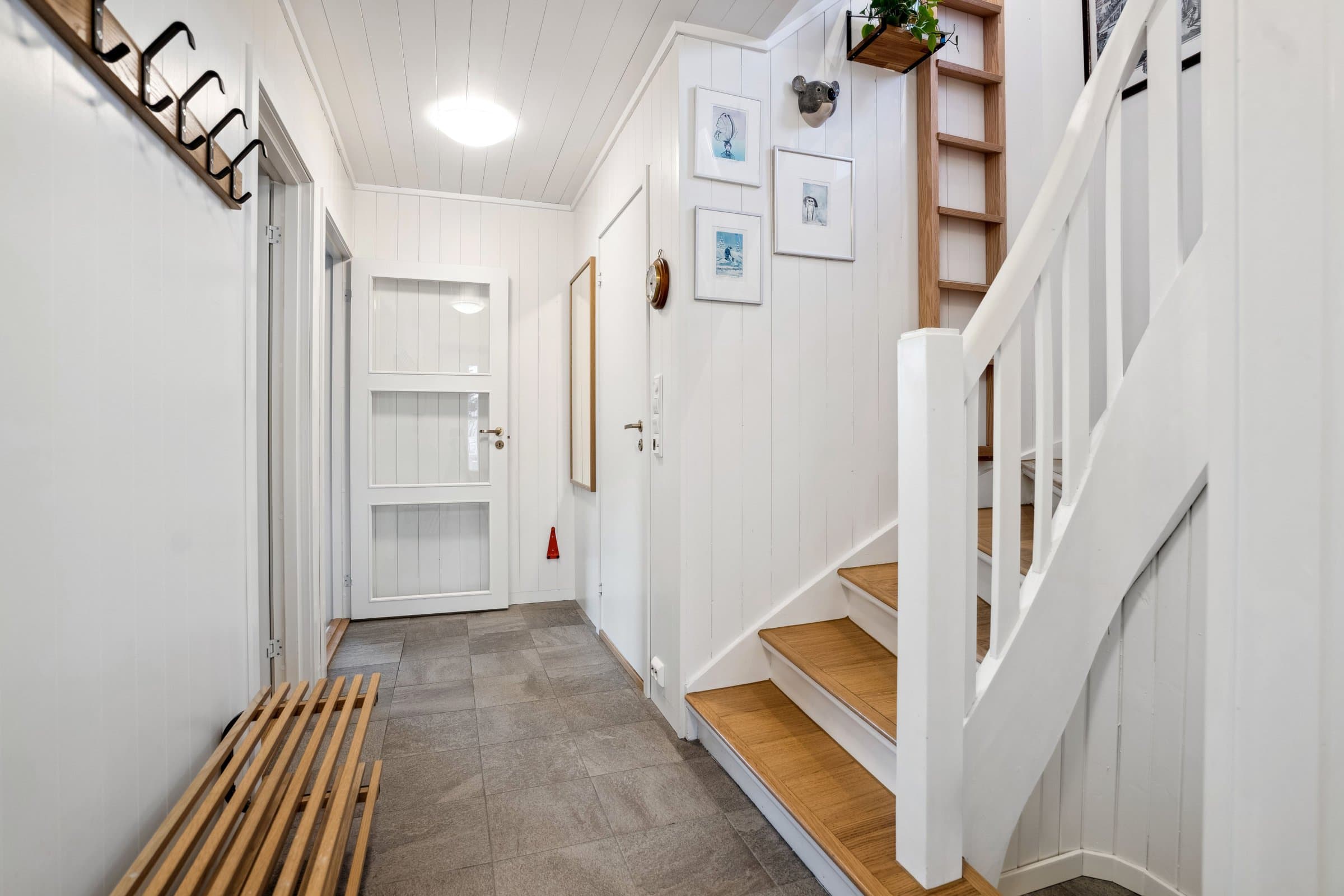 Velkommen til Bjerkakervegen 22, en meget innholdsrik enebolig med sentral beliggenhet på Sør-Tromsøya. Denne boligen er for deg som ønsker litt plass, både ute og inne. Boligen har dobbel garasje, og parkeringsplass for opp til 5 biler. Det er innbringende utleie samt gode sol og lysforhold. I hjertet av huset finner du en vedfyrt bakerovn for de store matopplevelsene! Boligen går over 3 plan med leilighet i u.etg. Store deler av hovedenheten er pusset opp de seneste 5 årene, med blandt annet nytt kjøkken fra 2018 og to bad pusset opp i henholdsvis 2020 og 2021. Flislagt entre med varmekabler fra 2020. Videre består første etasje av kontor, bad, åpen stue/kjøkken løsning med vedfyrt bakerovn og adgang til hage og terrasser med lune uteplasser. Andre etasje har 4 soverom, bad/vaskerom og toalett. Underetasjen er en romslig utleieenhet bestående av åpen stue/kjøkkenløsning, ett soverom, bad, vaskerom og boder. I tilknytning til boligen er en dobbel garasje med boder/verksted samt en hundegård i bakkant. Det er også lagringsplass på mørkeloft. Hagen er åpen og solrik. Her har du mulighet for både tramopline og jorbærland om det ønskes. Pr nå er hagen opparbeidet med plen, prydbusker og staudebed.