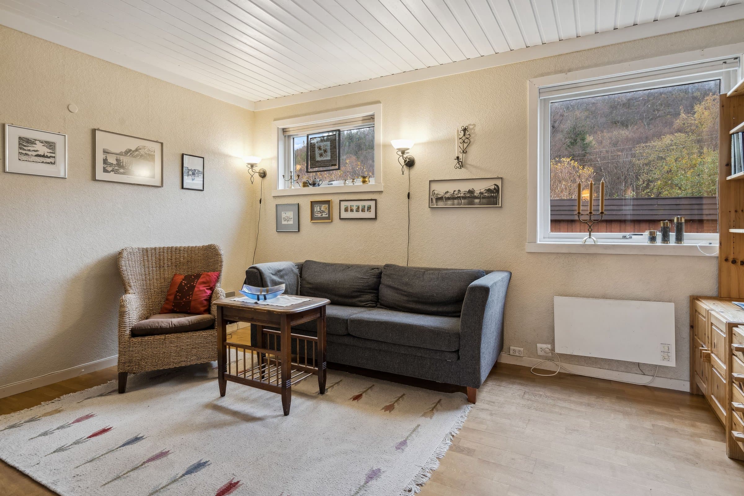 For øvrig kan boligen by på et pent kjøkken som ble oppgradert ca. 2000, vedfyring og varmepumpe i stuen, samt fire romslige soverom, tv stue (kan brukes som soverom) og vinterhage med varmekabler. Om du ikke har mulighet til å komme på visning, holder jeg gjerne privatvisning. Ta kontakt, så finner vi en tid. Jeg har tegnet boligselgerforsikring, og anbefaler også kjøper å tegne boligkjøperforsikring.