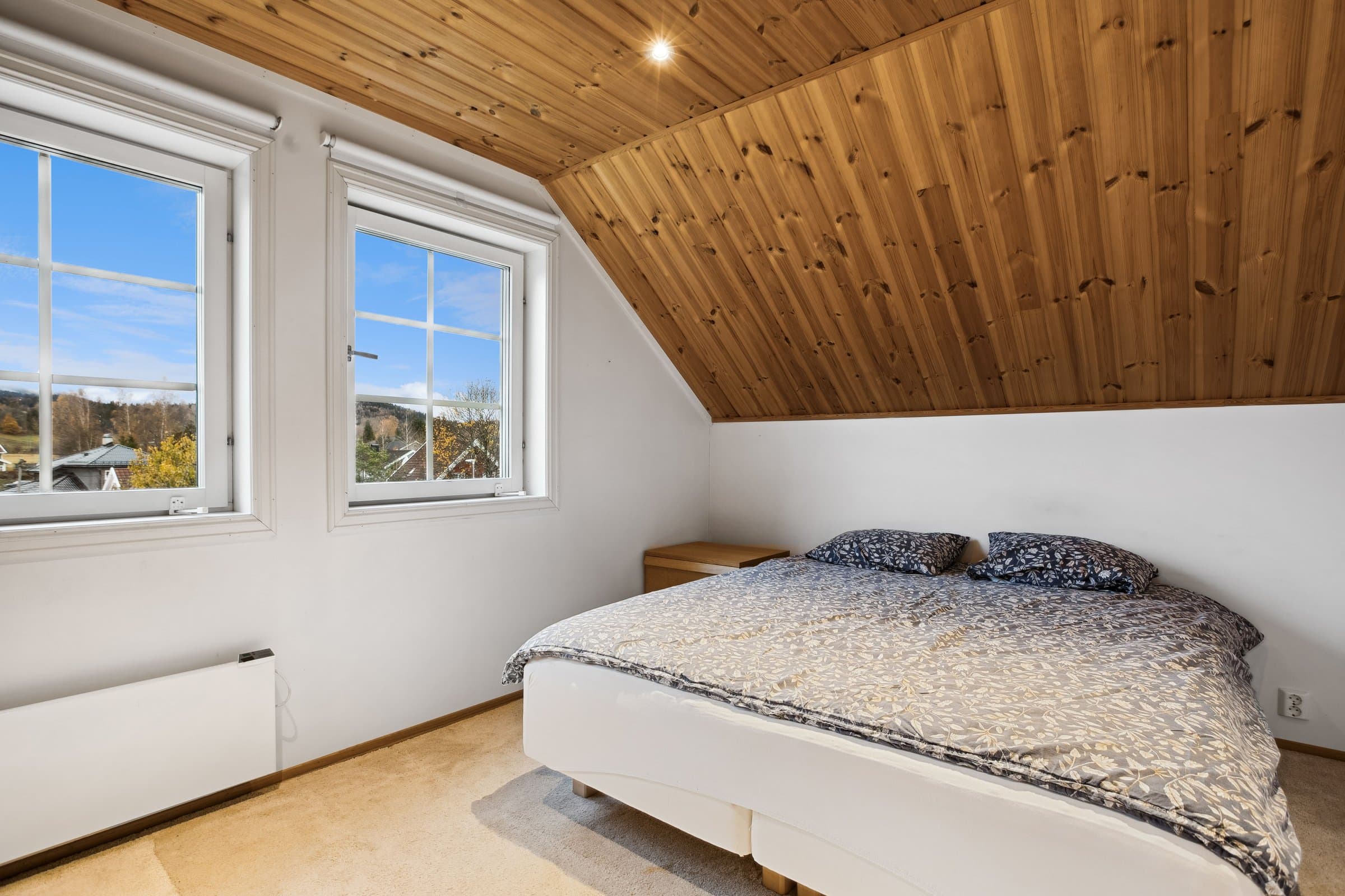 Innholdsrik enebolig vakkert beliggende på Engelsrud med gode leieinntekter. Dette er en nyere bolig oppført i 2014. Med egen sekundærleilighet ferdig i 2015. Som en hel tomannsbolig med egen inngang til hver del. Mulighet for god leie inntekt. (sekundærleiligheten er leid ut for kr 15000,- pr måned i dag.) I tillegg er det innredet en trivelig hybel i loftet på garasjen, denne er ikke byggegodkjent hos kommunen. Hoveddelen i 1. etg. er innbydende med lys og hyggelig 2 delt stue delvis integrert med kjøkkenet, 3 soverom, bad (m boblebad og dusj) og vaskerom med infrarød badstue. Sekundærleiligheten er meget hyggelig, lys og med koselig utsyn, kjøkken og stue, bad (m boblebad og dusj), 3 soverom. Romslig dobbel garasje