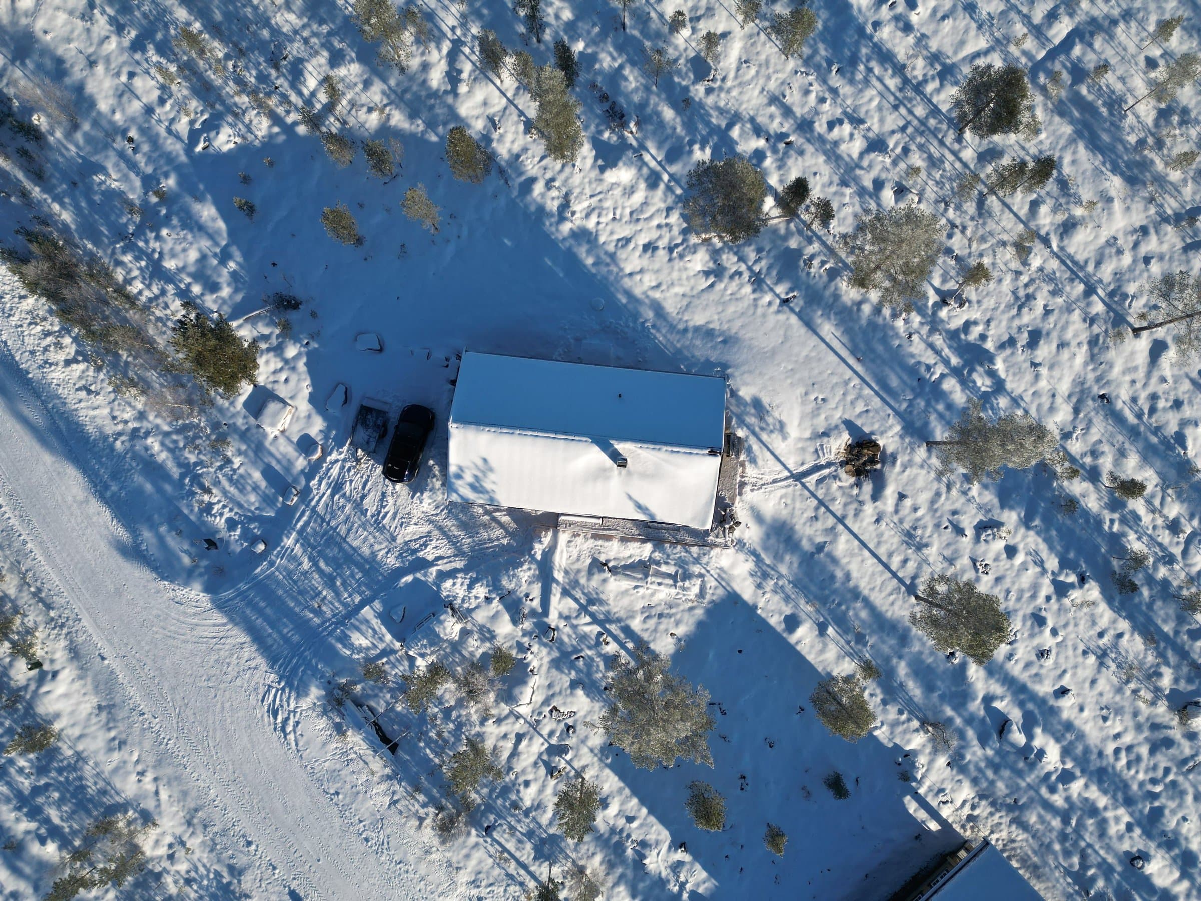 Det er to gruslagt P-plasser ved siden av hytta. Her er det mulig å sette opp garasje dersom man ønsker seg det. Det er lagt tomt trekkerør fra innvendig sikringsskapet ut på terreng for etablering av elbilader ved behov.