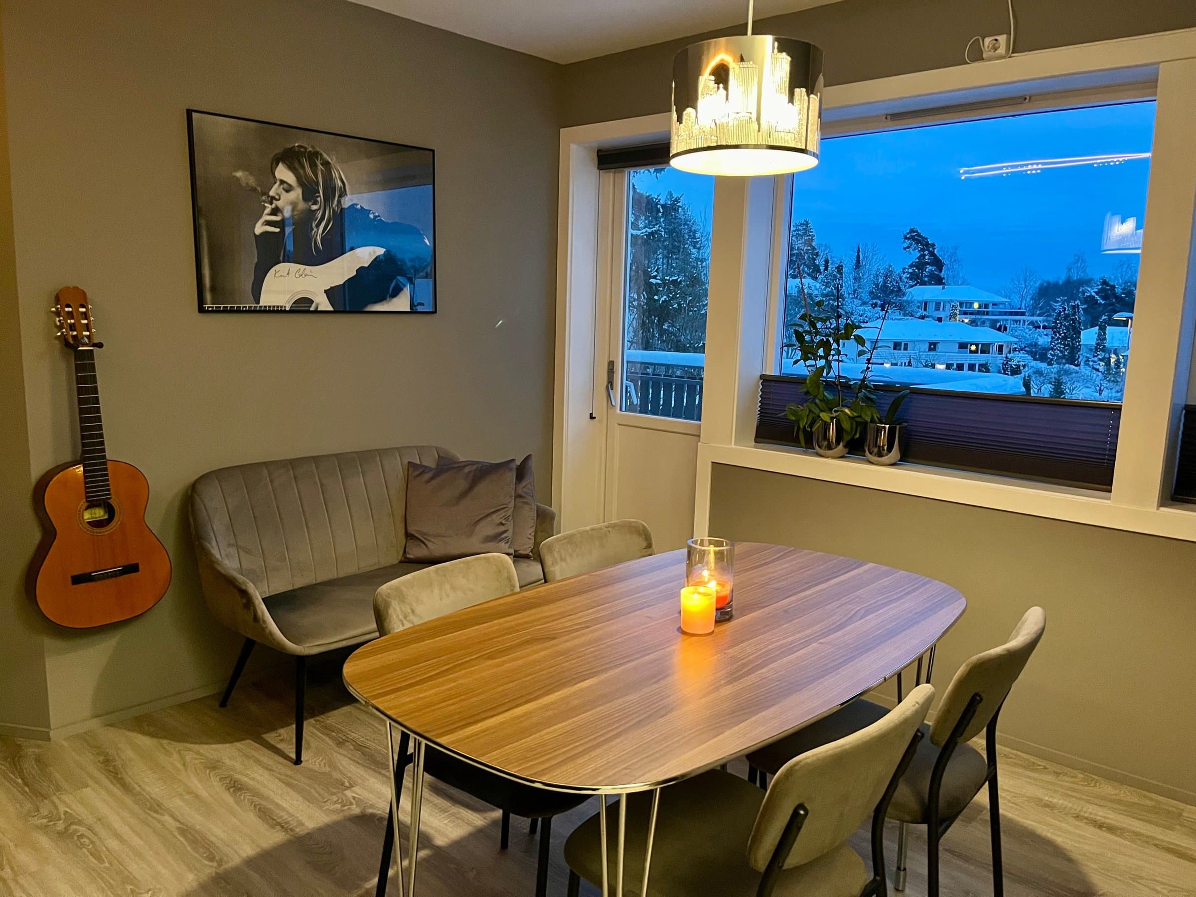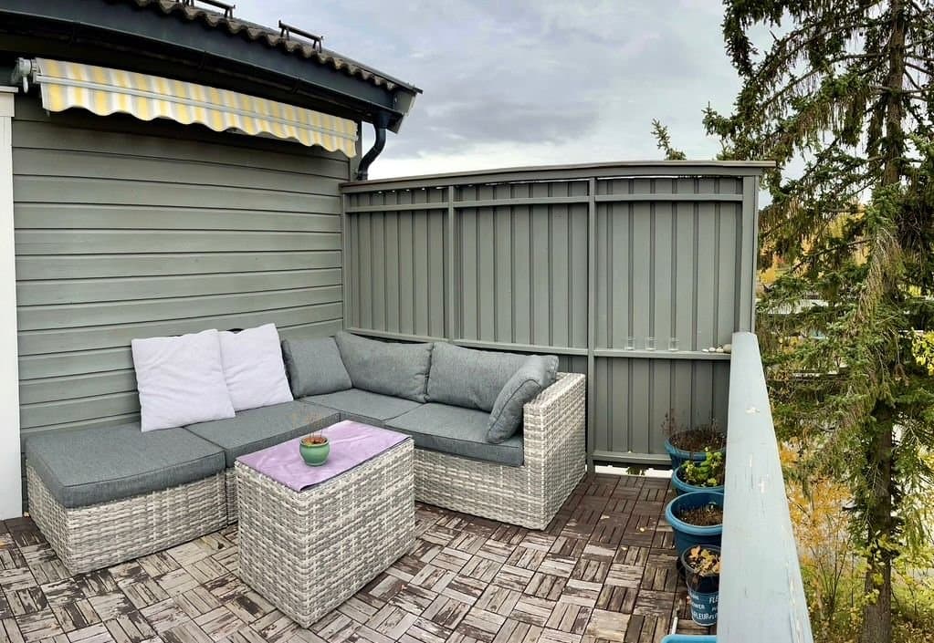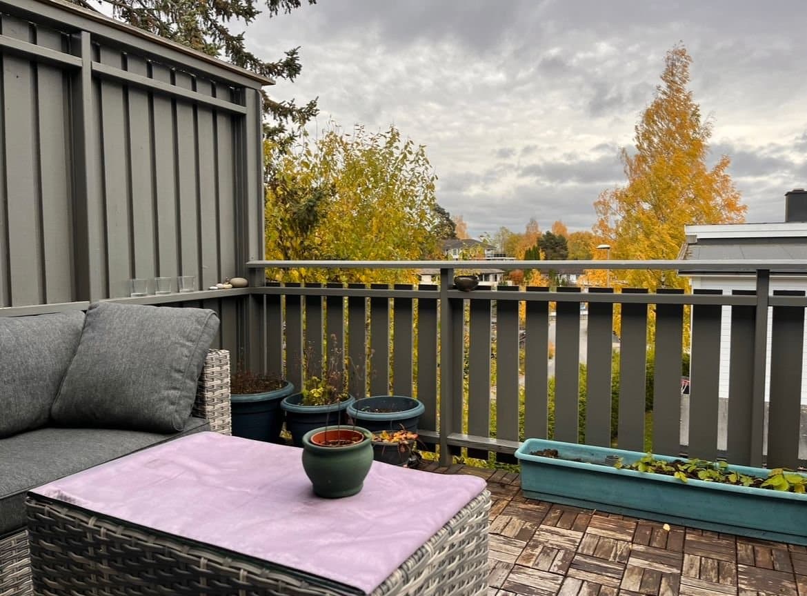Veldig koselig, moderne og praktisk selveier leilighet med god planløsning. Seksjonert del av firemannsbolig med felles hage, gang, kjeller og loft. Leiligheten ble totalrenovert i 2020. Varmefolje i gulv, varmepumpe og utvendige persienner gir godt inneklima og lave strømutgifter. Ny varmtvannsbereder installert i 2023. Alle vinduer har plisségardiner som kan trekkes både opp og ned for både sol- og innsynsskjerming. I tillegg er det lystette rullegardiner både på soverom og i TV-stua. Kjøkkenet og spisestuen er hjertet av boligen. Alle løsninger er designet for effektiv og praktisk arbeidsflyt. Det er lett å lage mat og rydde mens man har det sosialt med gjestene. Halv-åpen løsning mot TV-stuen gjør oppholdsrommene både åpne og koselige. Badet er lunt og lett å holde rent. Det er lagringsplass under servant og bak speilet. Badekaret har utvidet dusjhjørne, slik at det er romslig og komfortabelt å dusje. Badekaret har flate kanter med god plass til et glass eller to. Leiligheten ligger i andre etasje og har en fin sørvendt, ganske åpen, men likevel skjermet balkong. Stor felleshage til sommerfester. Hyggelige naboer. Det er veldig god lagringsplass både i kjeller og på loft. I kjelleren er det også opplegg til vaskemaskin i felles vaskerom, dersom man ikke ønsker å ha vaskemaskin på badet. Fellesutgiftene dekker kommunale avgifter inkludert eiendomsskatt, vann, avløp og renovasjon. Bygningsforsikring. Felles strøm og varmtvann. Andre utgifter, vedlikehold og felles utstyr. Sameiet vedtar vedlikeholdsplan og størrelsen på fellesutgiftene.