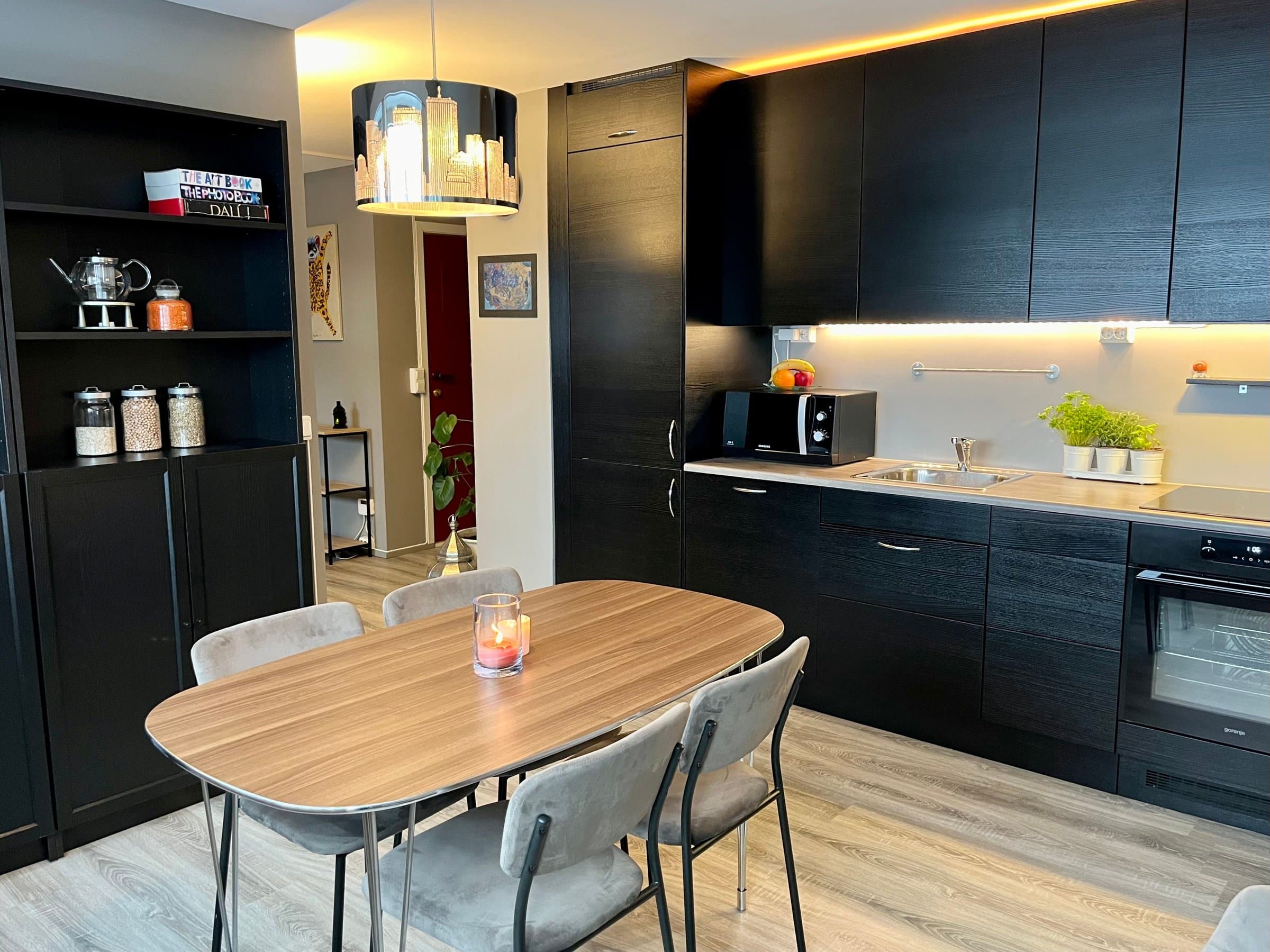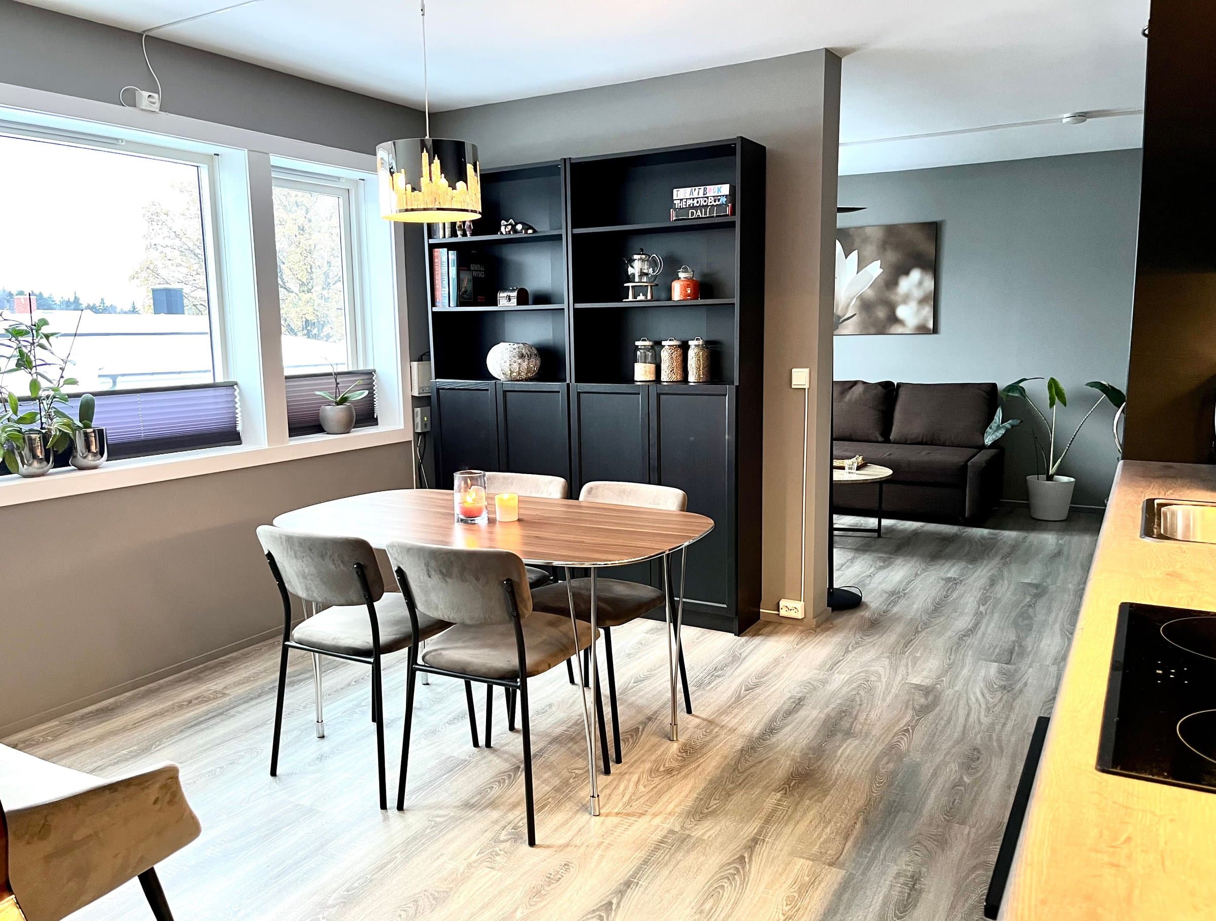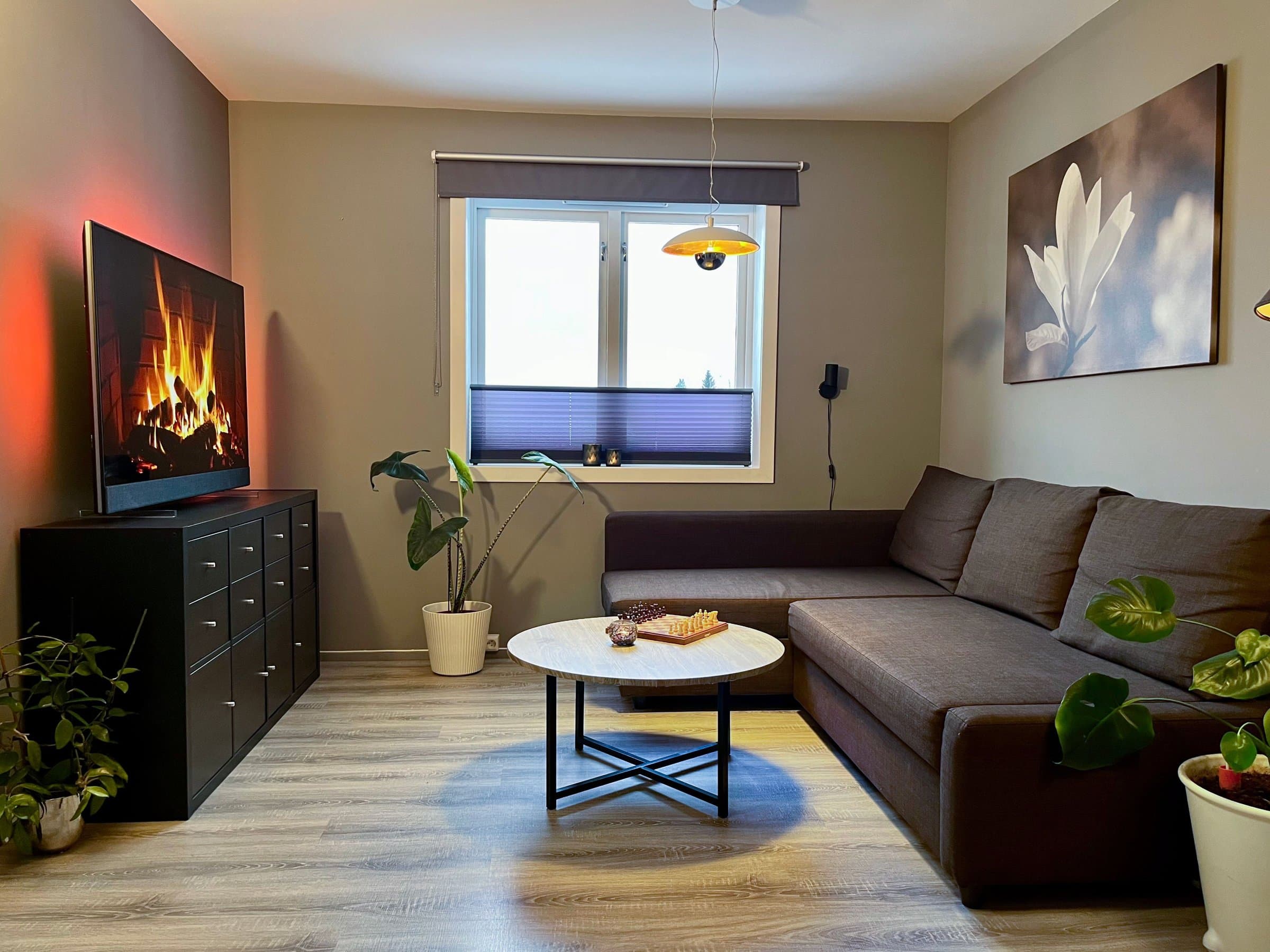 Veldig koselig, moderne og praktisk selveier leilighet med god planløsning. Seksjonert del av firemannsbolig med felles hage, gang, kjeller og loft. Leiligheten ble totalrenovert i 2020. Varmefolje i gulv, varmepumpe og utvendige persienner gir godt inneklima og lave strømutgifter. Ny varmtvannsbereder installert i 2023. Alle vinduer har plisségardiner som kan trekkes både opp og ned for både sol- og innsynsskjerming. I tillegg er det lystette rullegardiner både på soverom og i TV-stua. Kjøkkenet og spisestuen er hjertet av boligen. Alle løsninger er designet for effektiv og praktisk arbeidsflyt. Det er lett å lage mat og rydde mens man har det sosialt med gjestene. Halv-åpen løsning mot TV-stuen gjør oppholdsrommene både åpne og koselige. Badet er lunt og lett å holde rent. Det er lagringsplass under servant og bak speilet. Badekaret har utvidet dusjhjørne, slik at det er romslig og komfortabelt å dusje. Badekaret har flate kanter med god plass til et glass eller to. Leiligheten ligger i andre etasje og har en fin sørvendt, ganske åpen, men likevel skjermet balkong. Stor felleshage til sommerfester. Hyggelige naboer. Det er veldig god lagringsplass både i kjeller og på loft. I kjelleren er det også opplegg til vaskemaskin i felles vaskerom, dersom man ikke ønsker å ha vaskemaskin på badet. Fellesutgiftene dekker kommunale avgifter inkludert eiendomsskatt, vann, avløp og renovasjon. Bygningsforsikring. Felles strøm og varmtvann. Andre utgifter, vedlikehold og felles utstyr. Sameiet vedtar vedlikeholdsplan og størrelsen på fellesutgiftene.