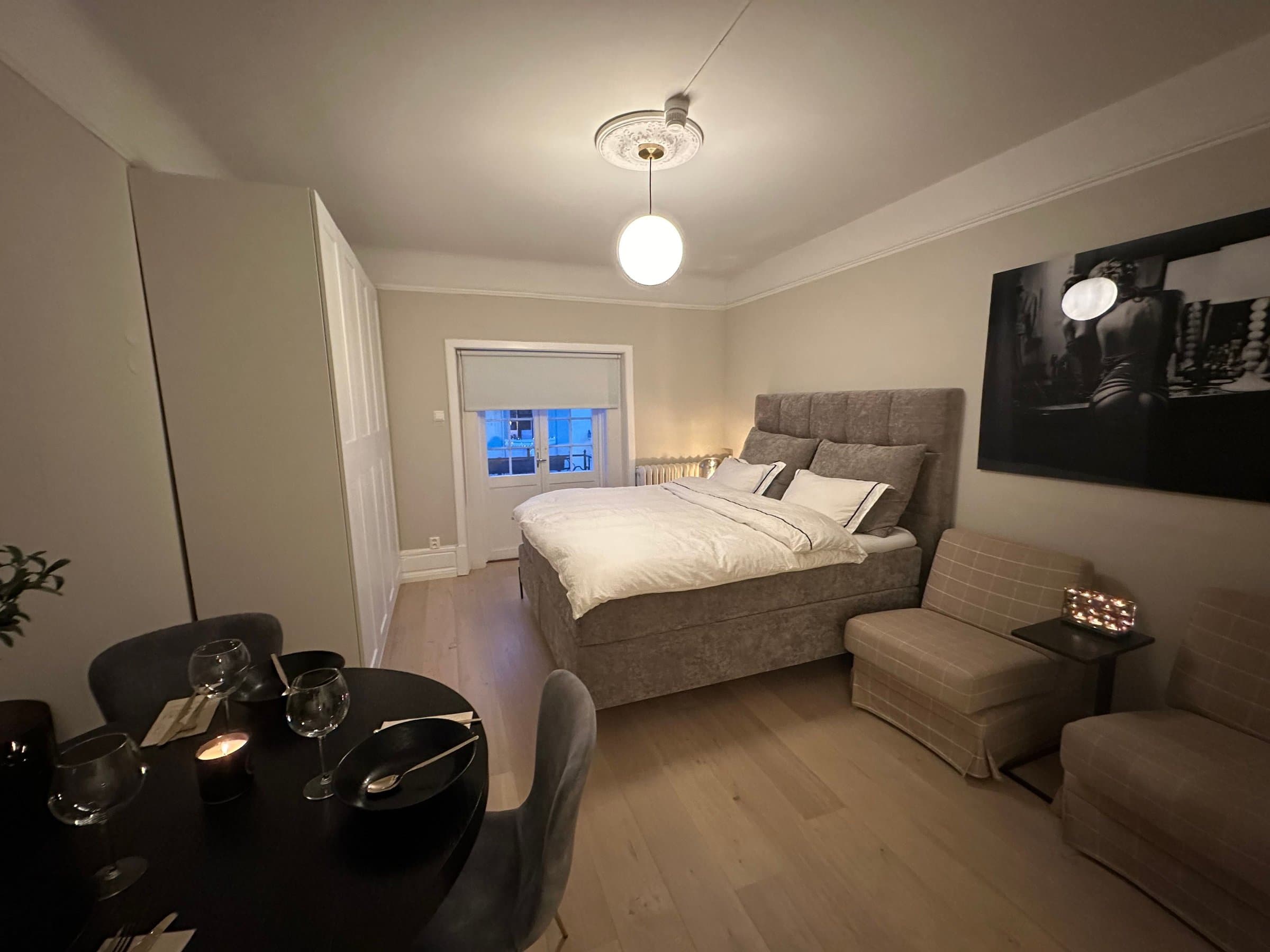 Om du ikke har mulighet til å komme på visning, holder jeg gjerne privatvisning. Ta kontakt, så finner vi en tid. Gjør oppmerksom på at sengen på bildene er stor. 180 cm bred.