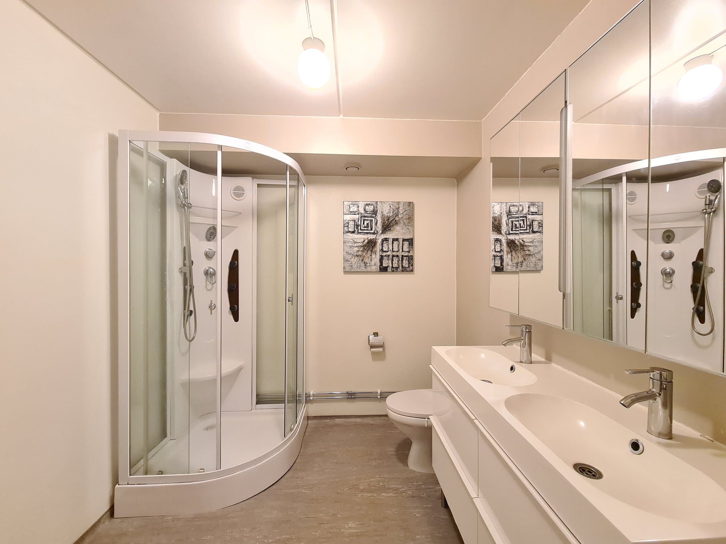 Boligen varmes opp elektrisk ved bruk av lokale panelovner og gulvvarme på badet