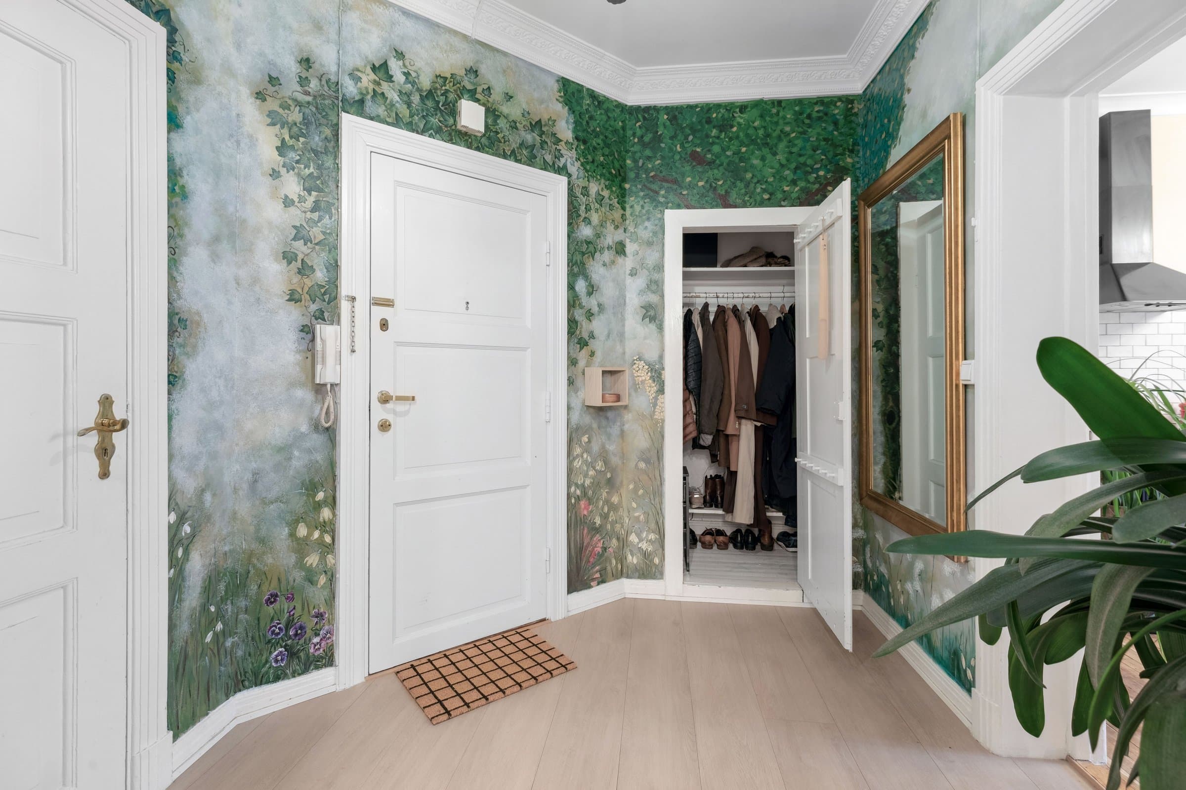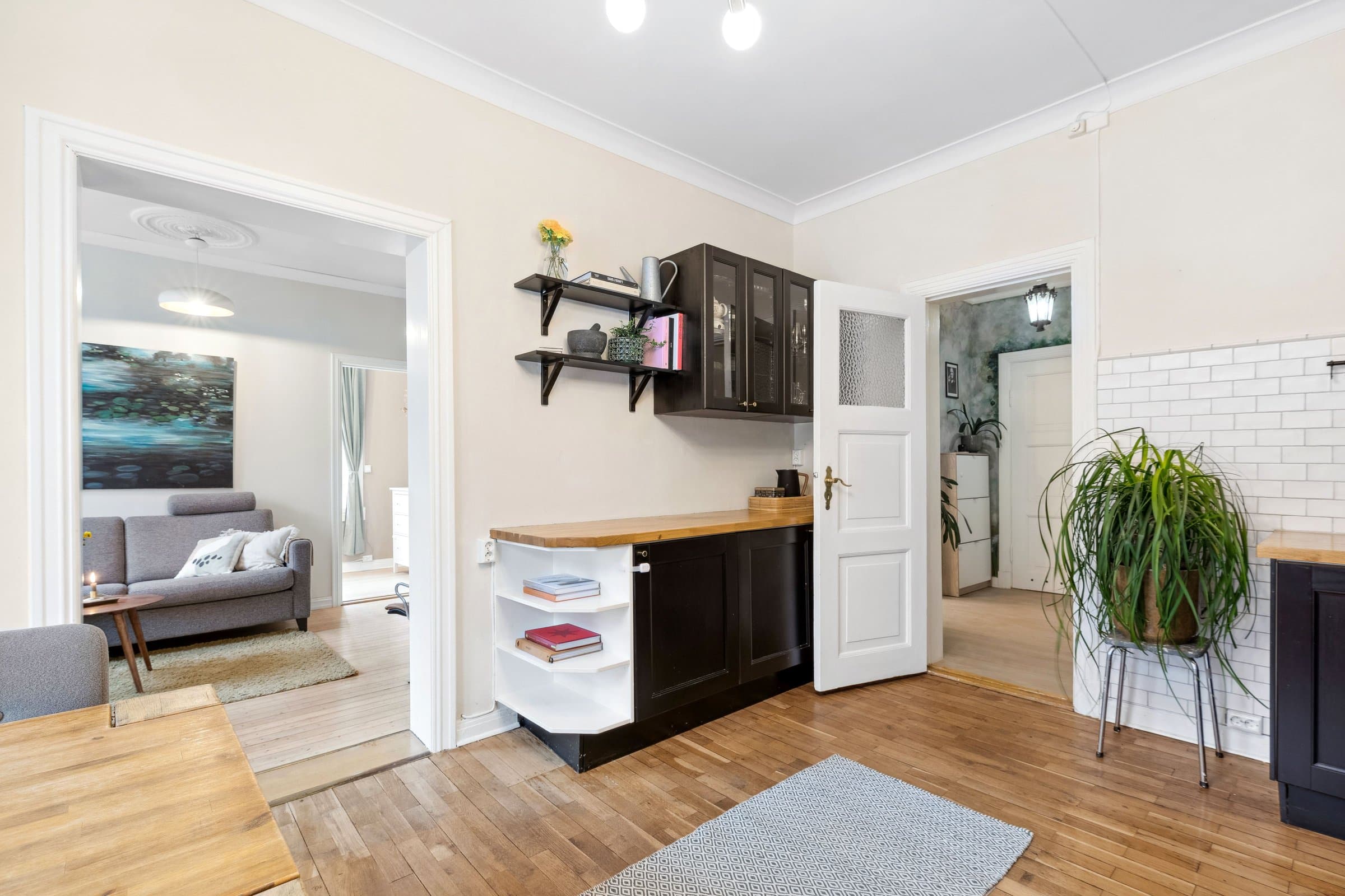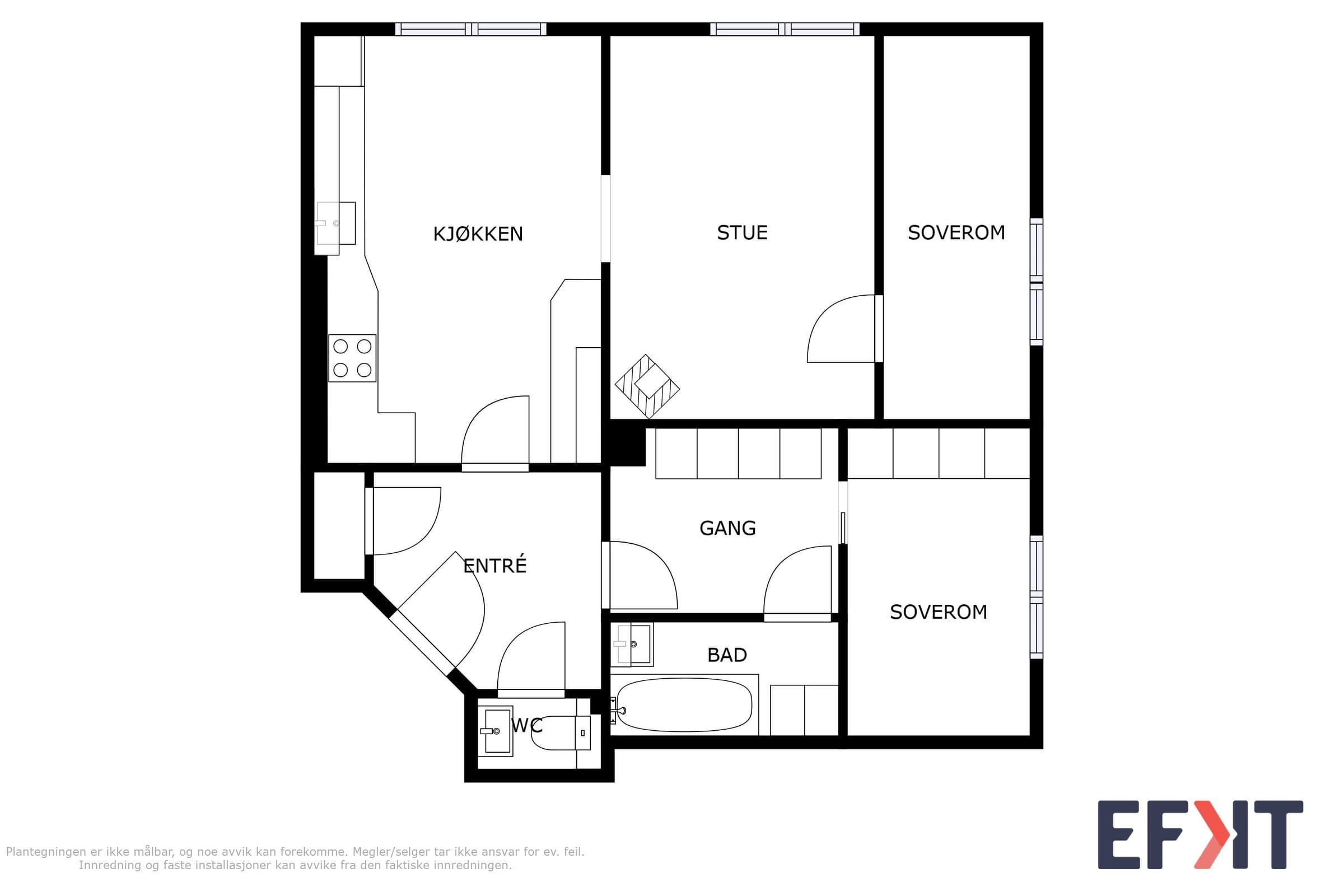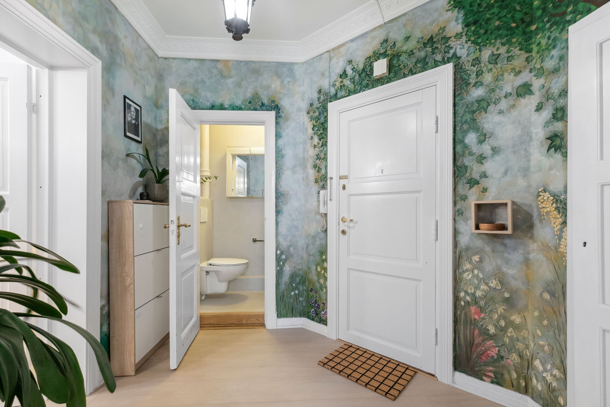 STANDARD PÅ LEILIGHET Leilighetens planløsning fordeler seg slik: ENTRÈ: Romslig inngangsparti med god takhøyde, rosett og stukkatur. Håndmalte vegger i klassisk "fresco" stil. Lyst laminatgulv lagt i 2022 (originalt tregulv under). Det er god plass til oppbevaring av yttertøy og sko i innbygd garderobeskap. Sikringsskap på vegg, rehabilitert i 2024. KJØKKEN: Stort, elegant kjøkken med mye skap- og benkplass. Kjøkkenet er det naturlige samlingspunktet i leiligheten hvor det er god plass til stort spisebord. Kjøkkeninnredning med heltre eik benkeplate og nedfelt oppvaskkum. Håndlagde, italienske fliser over kjøkkenbenk. Ventilatorhette. Kjøkkenet ble montert i 2004. Nye fronter, ny benkeplate. Vegger malt i 2023. Stort vindu med godt lys, og enkel rosett i taket. Tregulv. STUE: Hyggelig stue med plass til stor sofa. Stort vindu med godt lys, uten innsyn. Originalt tregulv, og pen, effektiv peis. Pen rosett i taket. Vegger malt i 2022. SOVEROM 1: Soverom med plass til stor dobbeltseng. Monterte nattbord. Stort vindu uten innsyn. God plass til garderobeløsning. Nytt, lyst laminat lagt i 2022 (originalt tregulv under). SOVEROM 2: Soverom med plass til stor dobbeltseng. Stort vindu uten innsyn. God plass til garderobeløsning. Originale tregulv. GARDEROBEROM: Rom mellom entrè og soverom 1, nå brukt som garderobe- og stellerom. Kan brukes til f.eks kontor. God plass til garderobeløsning. Nytt, lyst laminat lagt i 2022 (originalt tregulv under). BAD: Bad pusset opp i 2021, med varmtonet grå mikrosement lagt over flis. Vegghengt servantskap med gull armatur. Gullarmatur i dusj, og løvefotet badekar. Takhengt opplegg til dusjforheng. Vegghengt speilskap med mye oppbevaring. Plassbygd skap med varmtvannstank samt plass til vaskemaskin og oppbevaring. Varmekabler i gulv. WC: Separat toalett. Pusset opp i 2021, med varmtonet grå mikrosement lagt over flis. Vegghengt toalett. Benk med servant. Vegghengt speilskap med god oppbevaring.