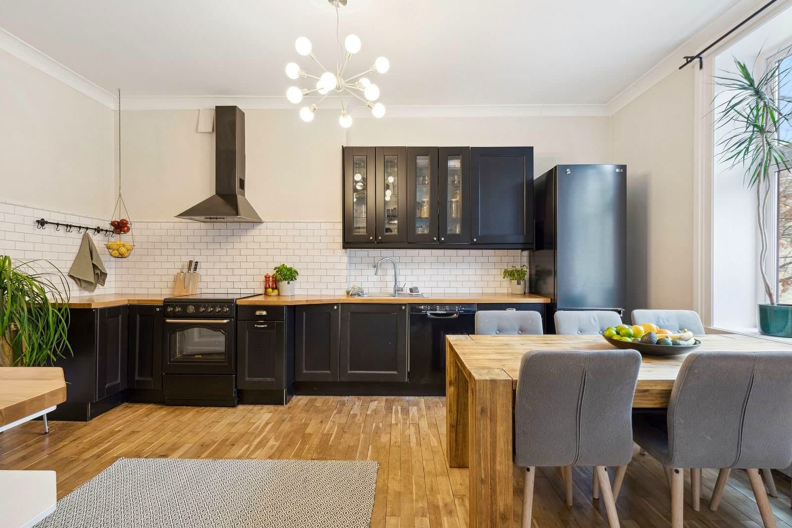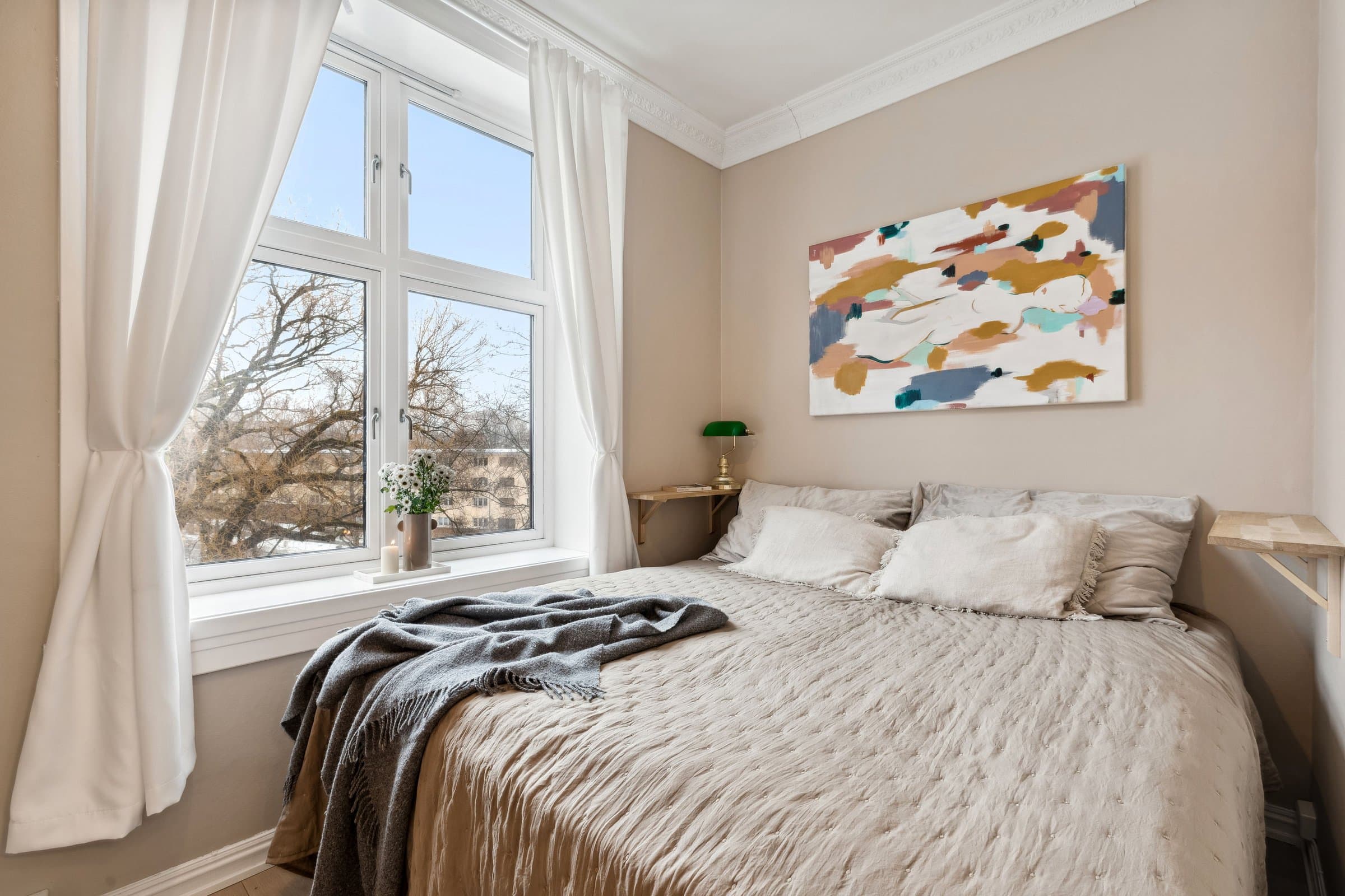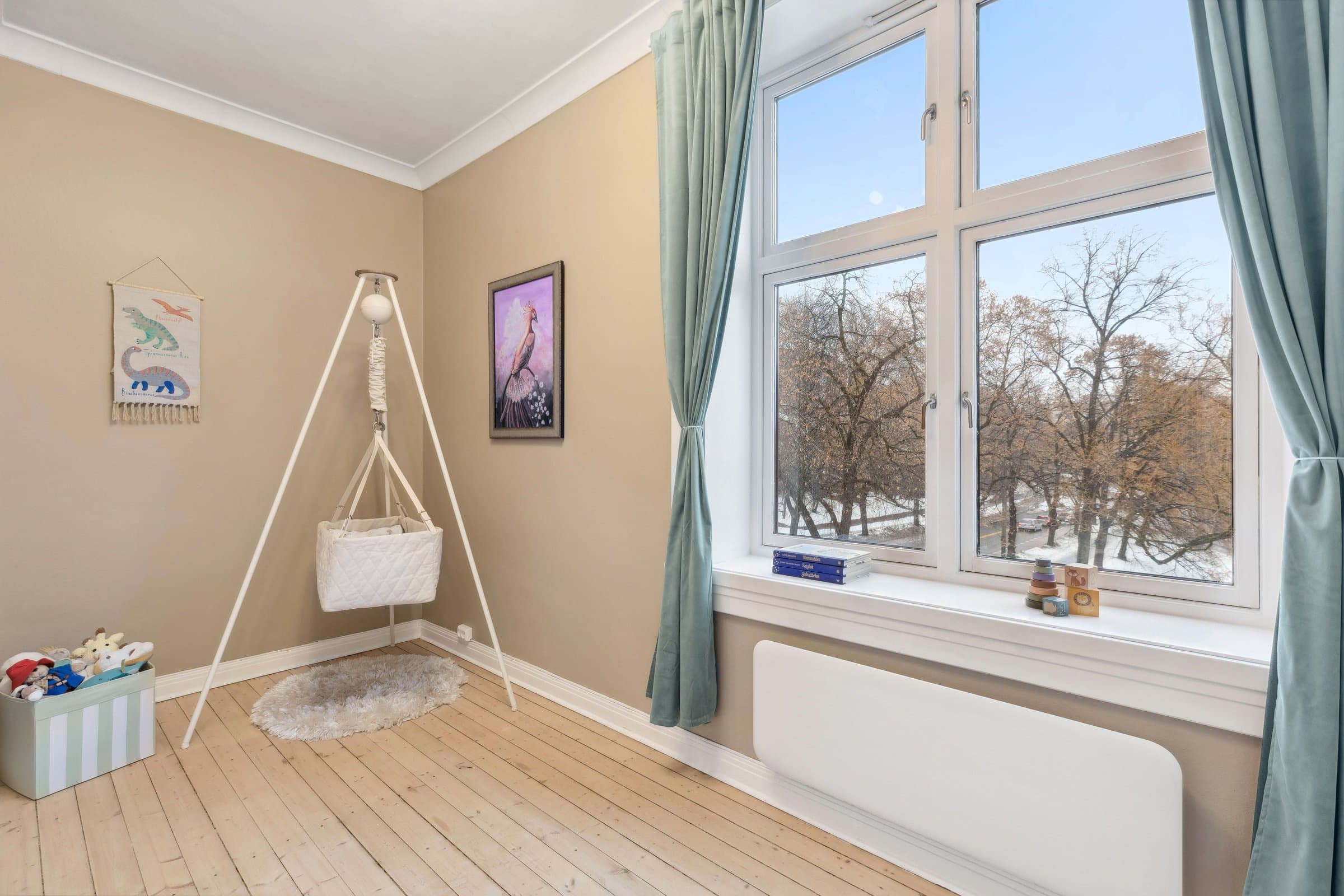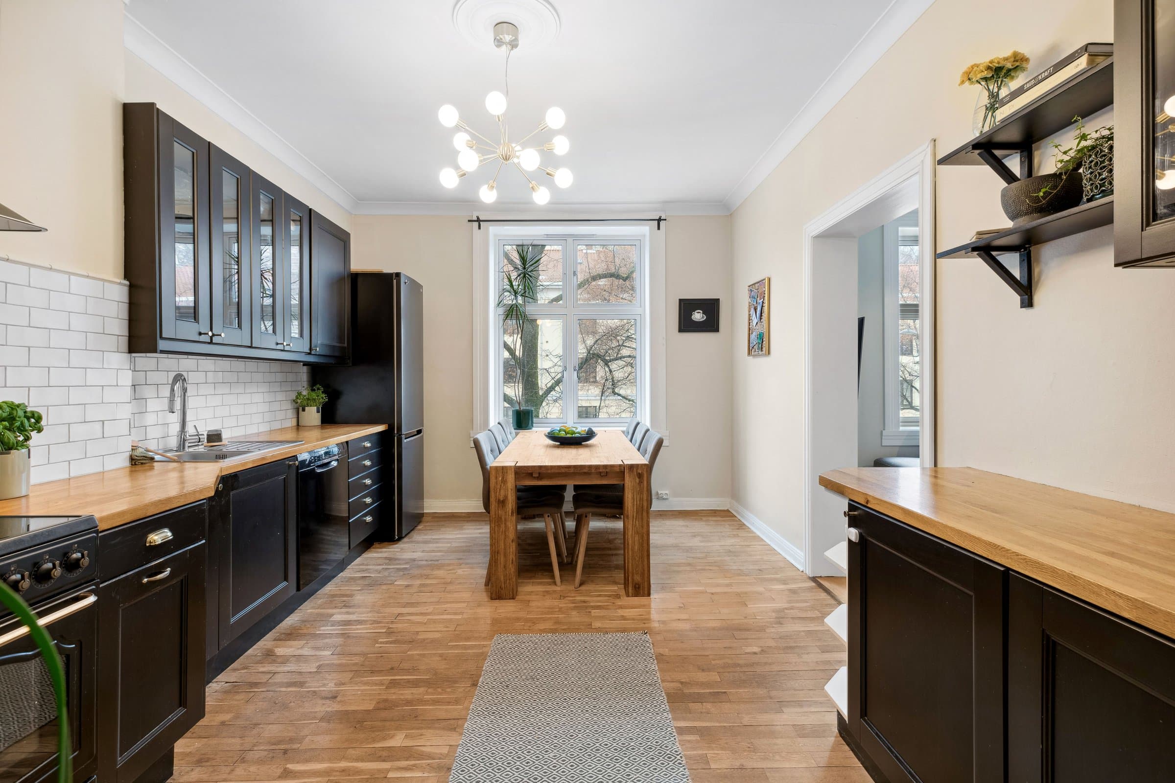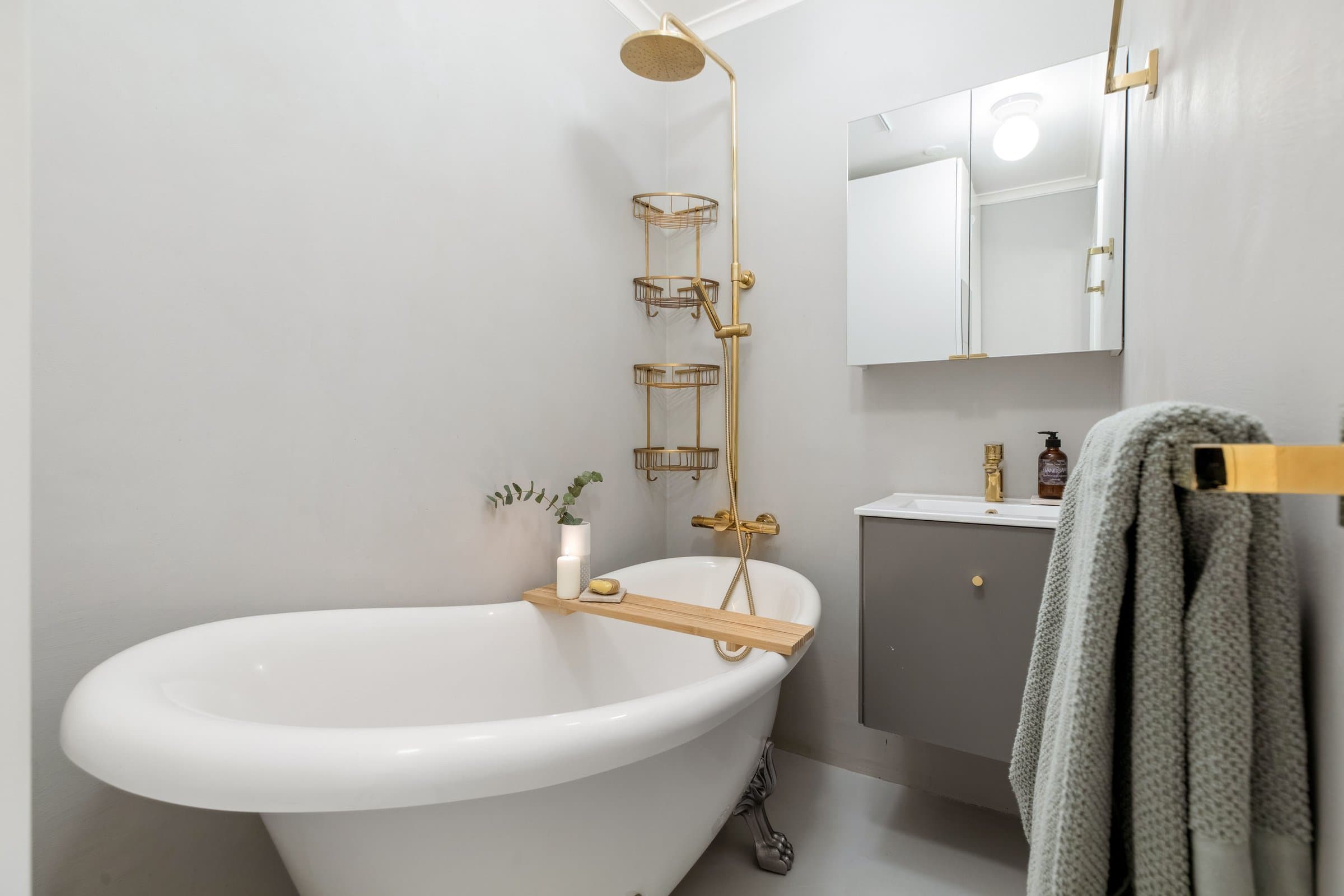 STANDARD PÅ LEILIGHET Leilighetens planløsning fordeler seg slik: ENTRÈ: Romslig inngangsparti med god takhøyde, rosett og stukkatur. Håndmalte vegger i klassisk "fresco" stil. Lyst laminatgulv lagt i 2022 (originalt tregulv under). Det er god plass til oppbevaring av yttertøy og sko i innbygd garderobeskap. Sikringsskap på vegg, rehabilitert i 2024. KJØKKEN: Stort, elegant kjøkken med mye skap- og benkplass. Kjøkkenet er det naturlige samlingspunktet i leiligheten hvor det er god plass til stort spisebord. Kjøkkeninnredning med heltre eik benkeplate og nedfelt oppvaskkum. Håndlagde, italienske fliser over kjøkkenbenk. Ventilatorhette. Kjøkkenet ble montert i 2004. Nye fronter, ny benkeplate. Vegger malt i 2023. Stort vindu med godt lys, og enkel rosett i taket. Tregulv. STUE: Hyggelig stue med plass til stor sofa. Stort vindu med godt lys, uten innsyn. Originalt tregulv, og pen, effektiv peis. Pen rosett i taket. Vegger malt i 2022. SOVEROM 1: Soverom med plass til stor dobbeltseng. Monterte nattbord. Stort vindu uten innsyn. God plass til garderobeløsning. Nytt, lyst laminat lagt i 2022 (originalt tregulv under). SOVEROM 2: Soverom med plass til stor dobbeltseng. Stort vindu uten innsyn. God plass til garderobeløsning. Originale tregulv. GARDEROBEROM: Rom mellom entrè og soverom 1, nå brukt som garderobe- og stellerom. Kan brukes til f.eks kontor. God plass til garderobeløsning. Nytt, lyst laminat lagt i 2022 (originalt tregulv under). BAD: Bad pusset opp i 2021, med varmtonet grå mikrosement lagt over flis. Vegghengt servantskap med gull armatur. Gullarmatur i dusj, og løvefotet badekar. Takhengt opplegg til dusjforheng. Vegghengt speilskap med mye oppbevaring. Plassbygd skap med varmtvannstank samt plass til vaskemaskin og oppbevaring. Varmekabler i gulv. WC: Separat toalett. Pusset opp i 2021, med varmtonet grå mikrosement lagt over flis. Vegghengt toalett. Benk med servant. Vegghengt speilskap med god oppbevaring.