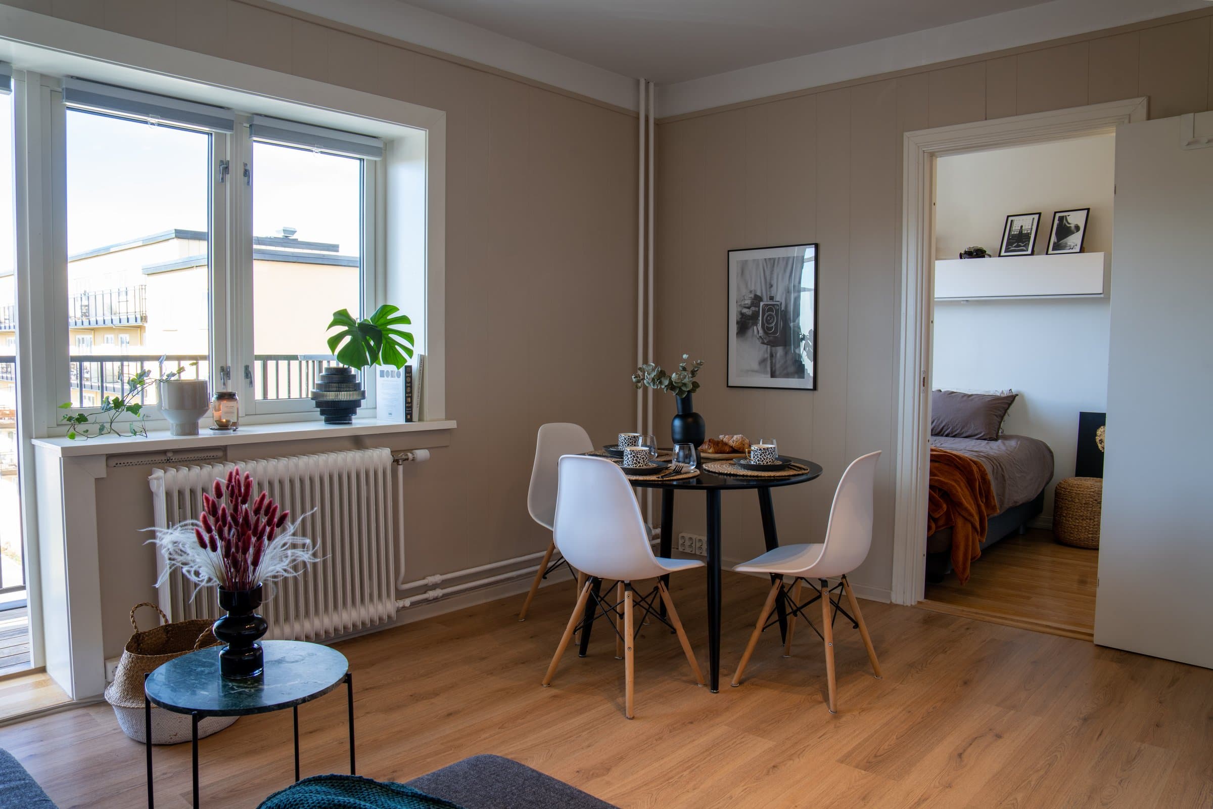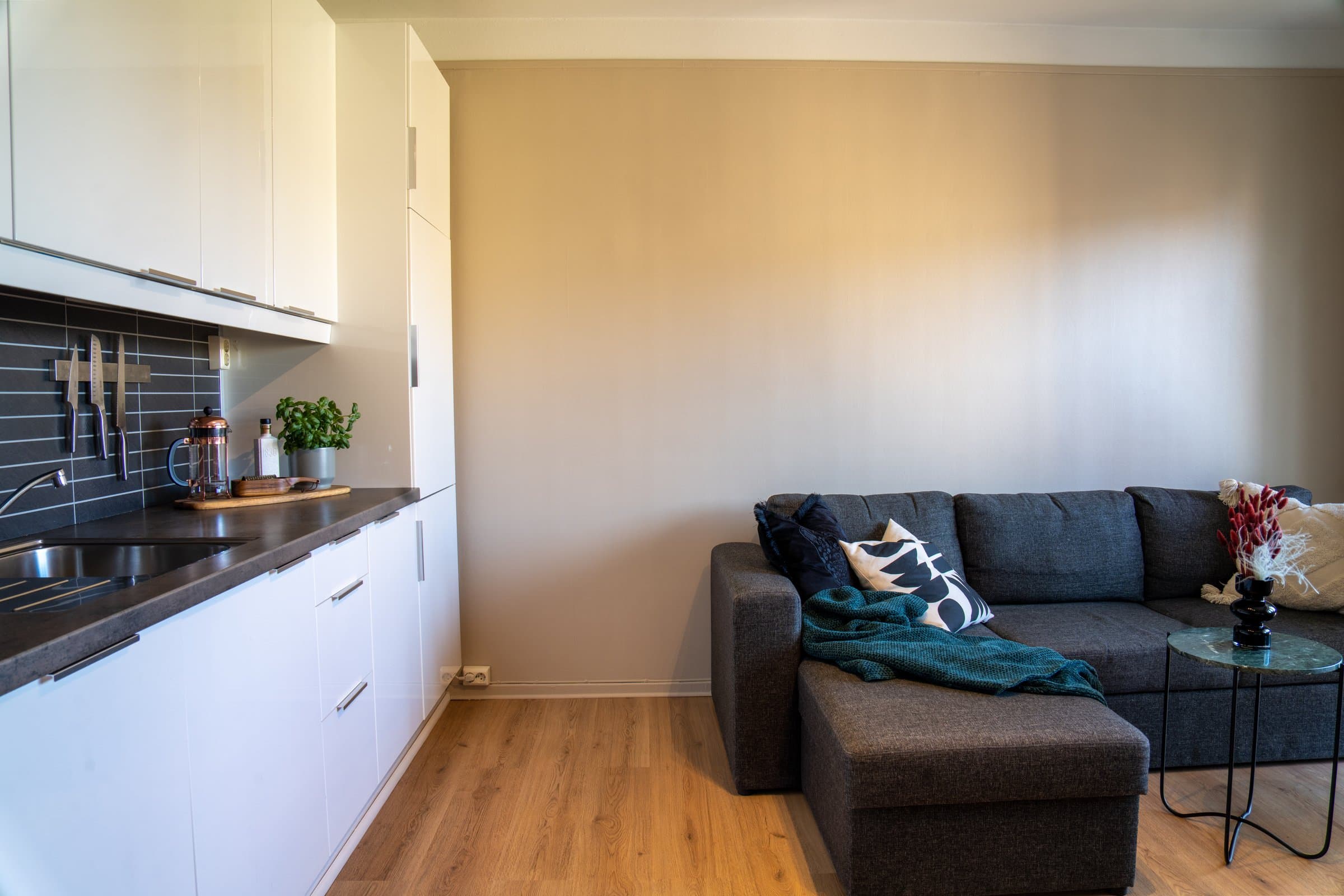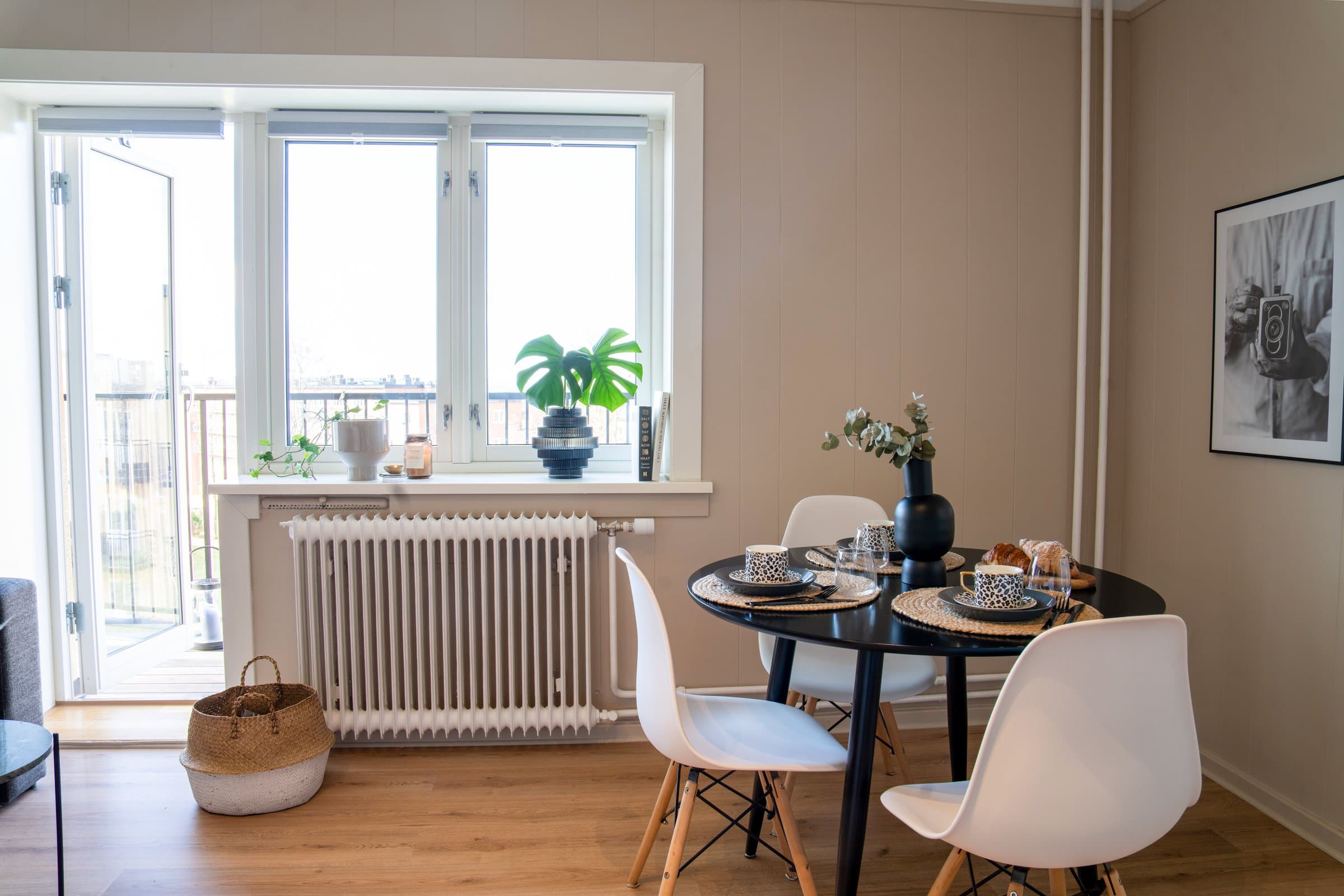 En meget attraktiv, moderne og lys 2-roms leilighet i sentrale, skjermede omgivelser på Sinsen/Rosenhoff. Med en størrelse på 32 kvm og beliggenhet i 4. etasje, vil du nyte en fantastisk utsikt fra den koselige balkongen. Leiligheten har en moderne standard, rask bredbåndstilknytning med fiber og tilgang til fellesvaskeri. Leiligheten holder god standard, har praktisk planløsning, hyggelig solrik balkong på ca. 4,5 kvm., samt praktisk åpen kjøkkenløsning. Noen høydepunkter er: - Solrik balkong med fjordgløtt. - Varmtvann og fyring er ink. i felleskostnadene. - Flislagt bad/wc fra 2012. - Moderne åpen kjøkkenløsning. - Nytt gulv fra 2020 og malt overflater i 2024. - Plejd smart lysstyring i entre, bad, stue og soverom. - Tado smart radiator termostat i stuen. - 1000/1000 mbps fiber inn i leilighet fra Obos OpenNet. - Ingen forkjøpsrett. - Ingen dok. avgift. - Fellesvaskeri i samme oppgang. - Kjellerbod i samme oppgang på ca 2kvm. - Mulighet for parkering. - Boligmappa oppdatert med historiske hendelser og FDV dokumentasjon. Kan dele tilgang på foresprøsel. Felleskostnadene inkluderer: - 1000/1000 Mbps fiber inn til leilighet - Oppvarming - Varmtvann - Kommunale avgifter Borettslaget holder på å rehabilitere krypkjelleren fram til høsten 2024. Se detaljer i dokumentet "Spørsmål og svar ved kjøp og salg av leilighet i Borettslaget Bjørn Stallares vei 21-29" fra borettslags styret. Det forventes en økning av fellesgjeld på opp til 140 000kr utover høsten etter hvert som borettslaget tar opp lån for å dekke disse kostnadene. Varmluft på stekeovnen fungerer ikke. Alle andre funksjoner fungerer fint. Her vil du garantert trives! Velkommen til visning.