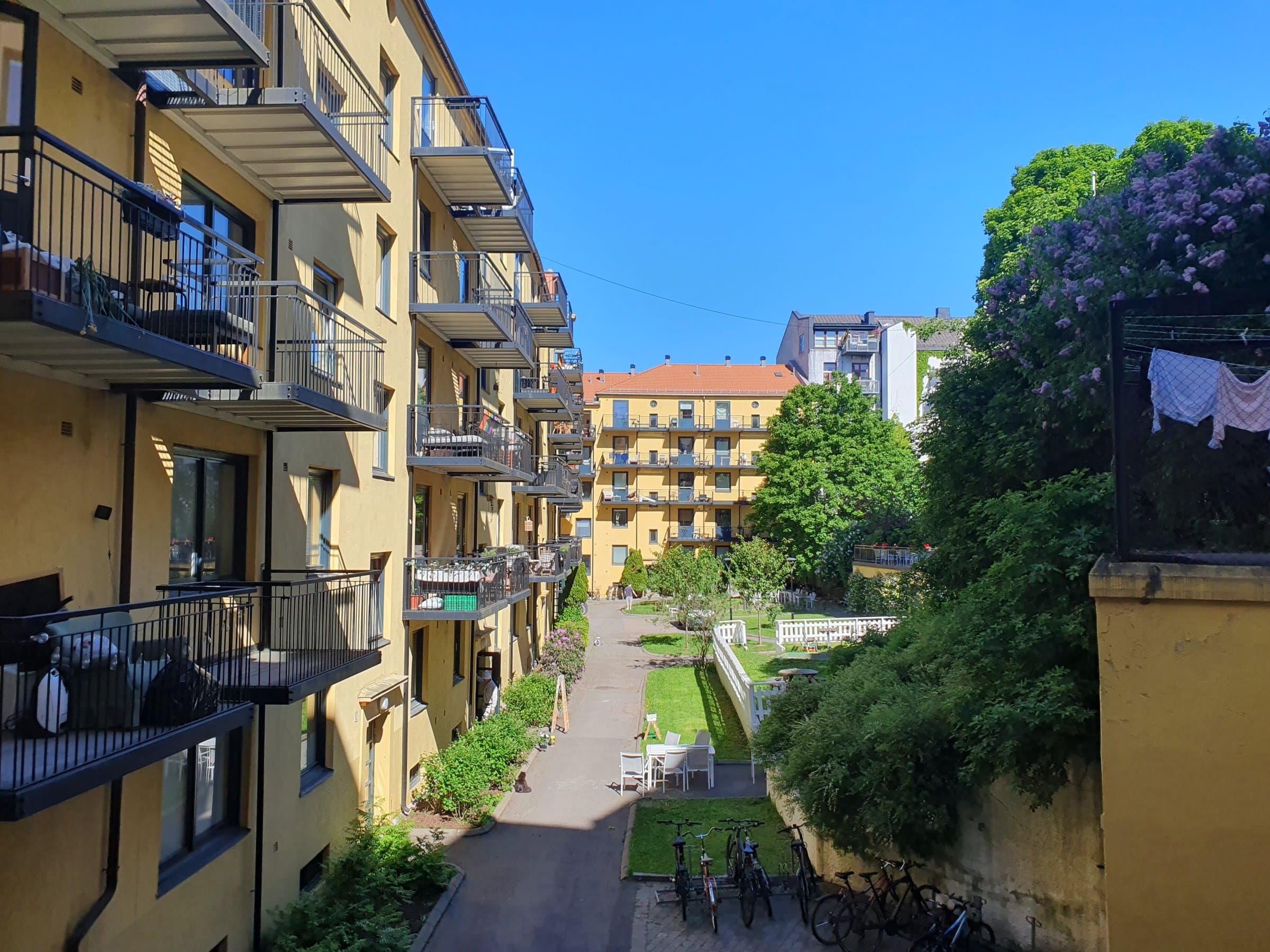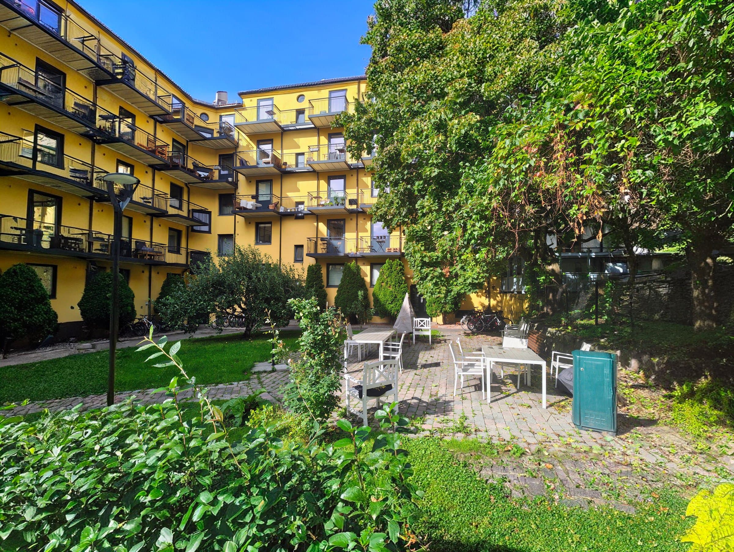 Aksjelaget er veldrevet og byr på mange fine fasiliteter. Her finner du blant annet trimrom (i samme oppgang som leiligheten), låsbare sykkelboder, fellesvaskeri, hobbyrom, utlån av grillutstyr og leie av hageparseller. Fellesområdene er pene med plener, frukttrær og annen beplantning, samt ulike sitteområder hvor en kan nyte solen om sommeren. Det er også etablert en egen lekeplass for barna.