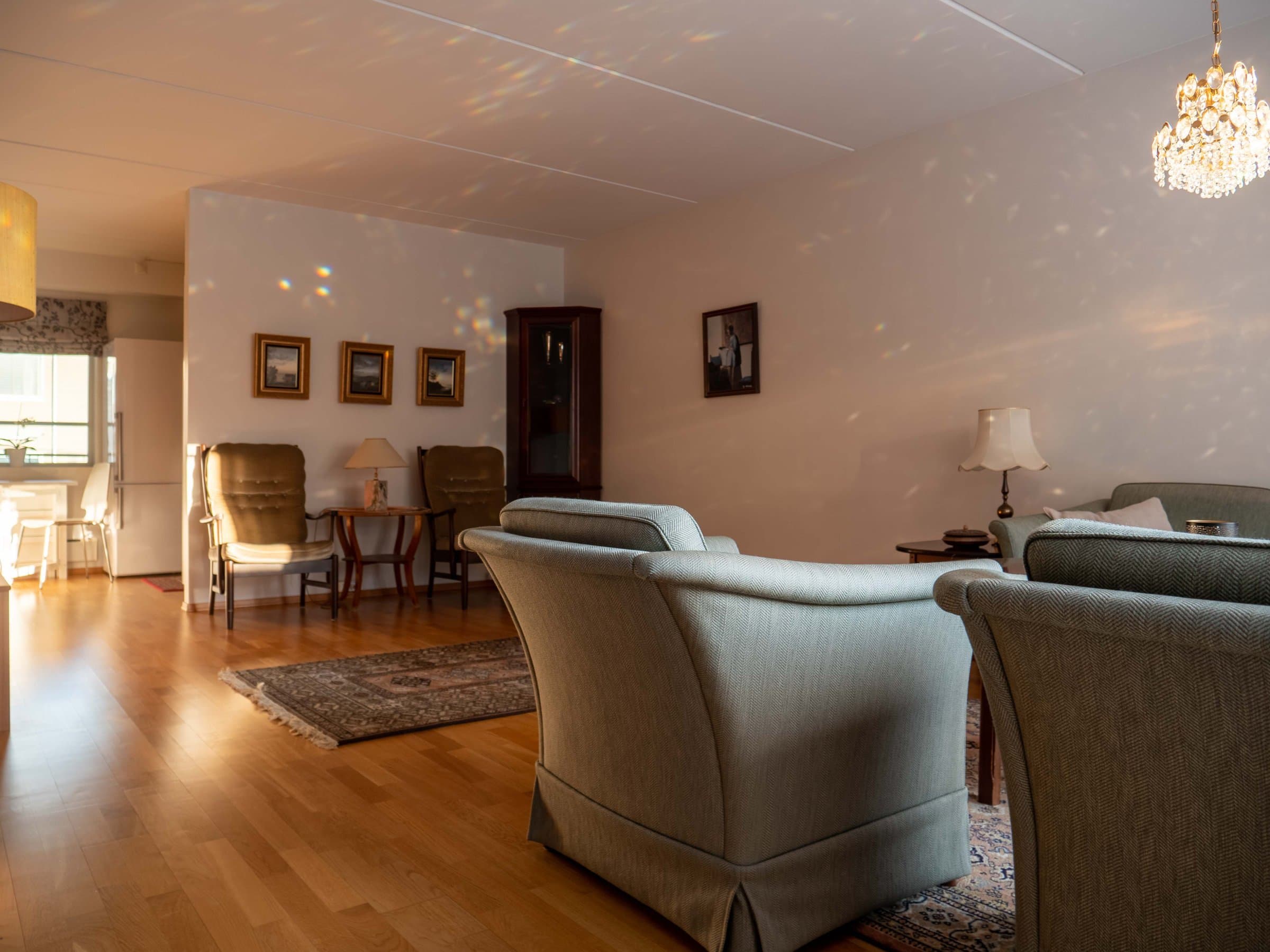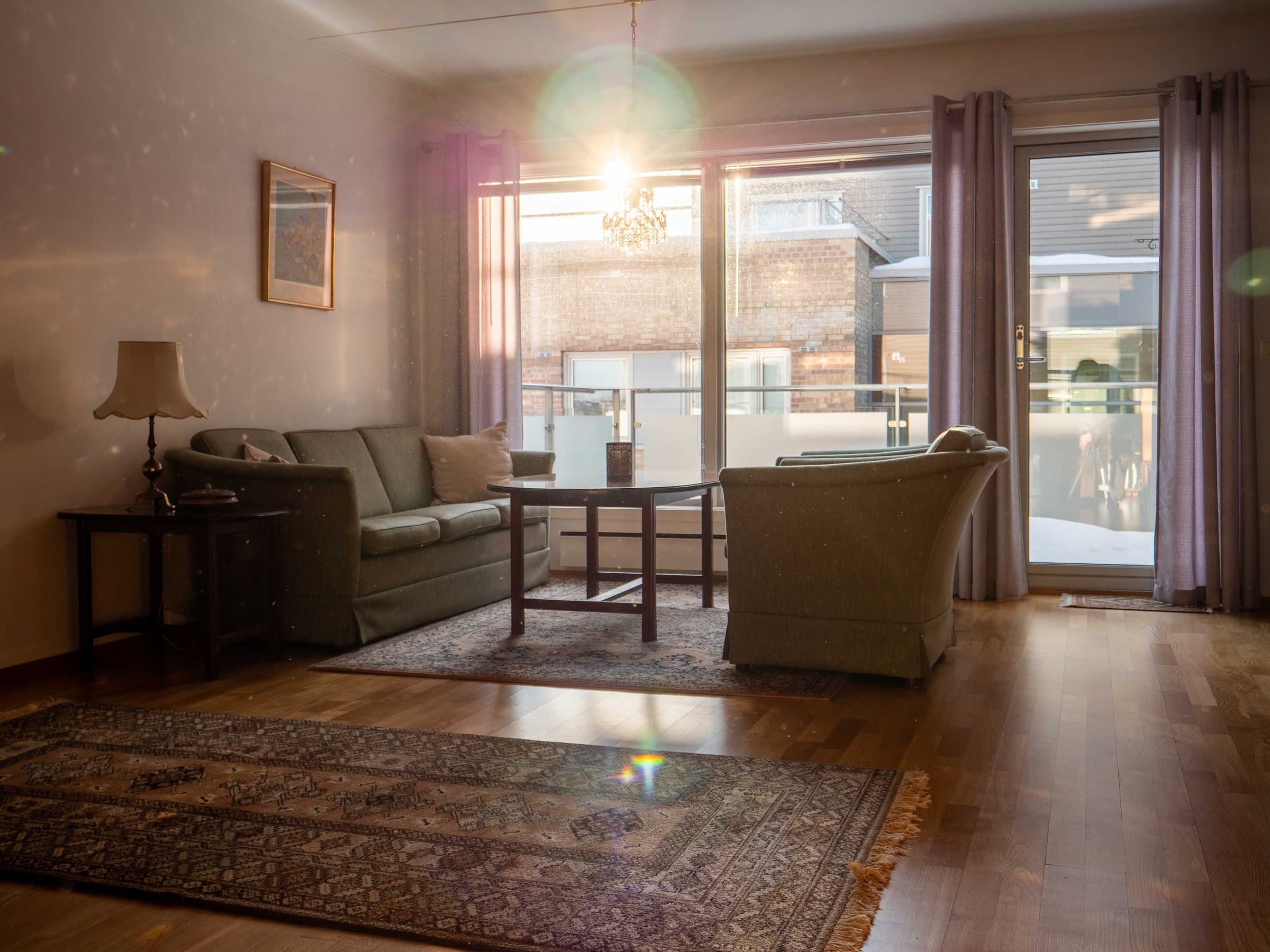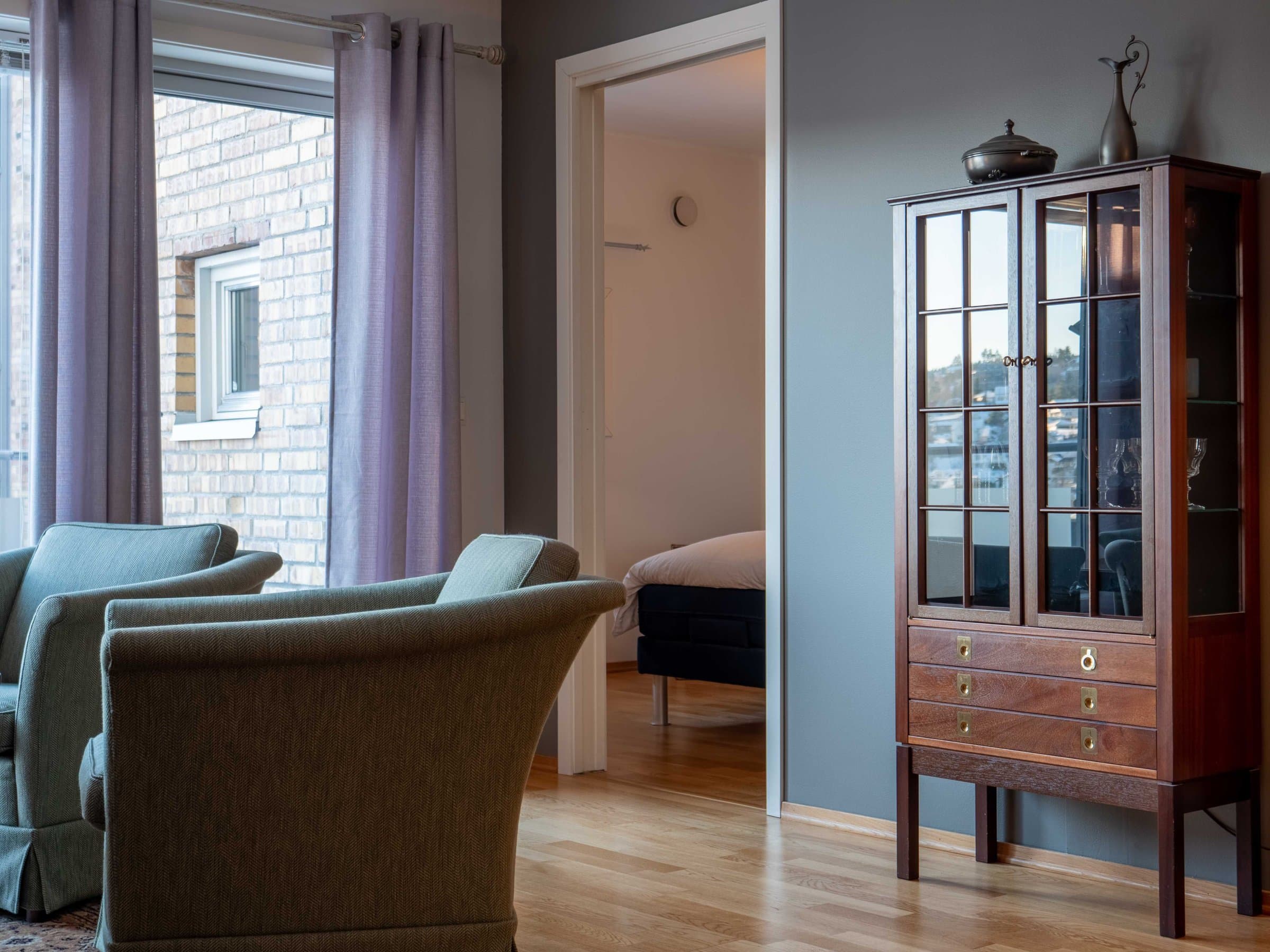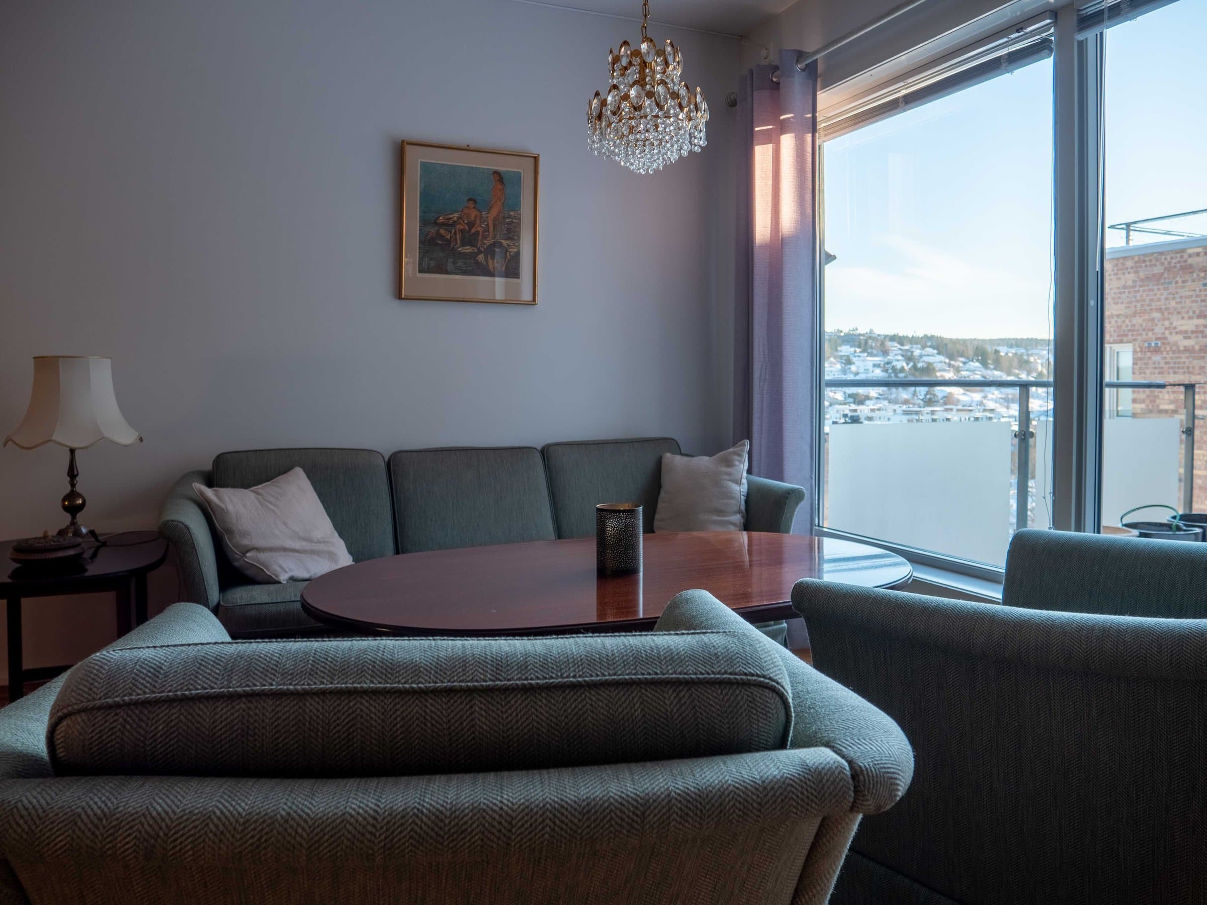 Sentral, moderne 2-roms selveierleilighet i rolig område med heis, oppvarmet garasje og stor vestvendt veranda.