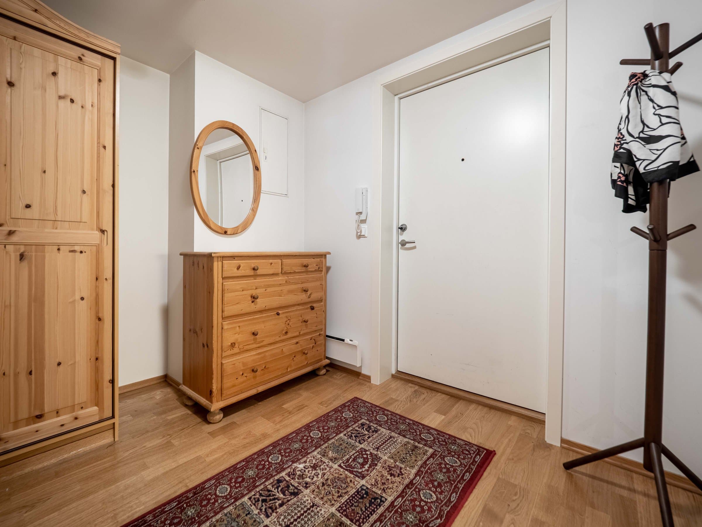 Leiligheten inneholder stue/kjøkken, soverom med walk-in closet/ bod og entre. Romslig vestvendt balkong med ettermiddagssol. God takhøyde og store vinduer. Leiligheten har sportsbod i 1.etasje og egen parkeringsplass i oppvarmet parkeringskjeller. Bussholdeplass i nærheten og båtforbindelse til Oslo. Selveierleilighet i 3. etasje i boligblokk fra 2005. Leiligheten er pent brukt og normalt vedlikeholdt. Parkett på gulv, malte, slette vegger og tak i alle rom. Hyggelig nabolag i blindvei og kort vei til kollektivtransport, matbutikker, kafeer og annet.