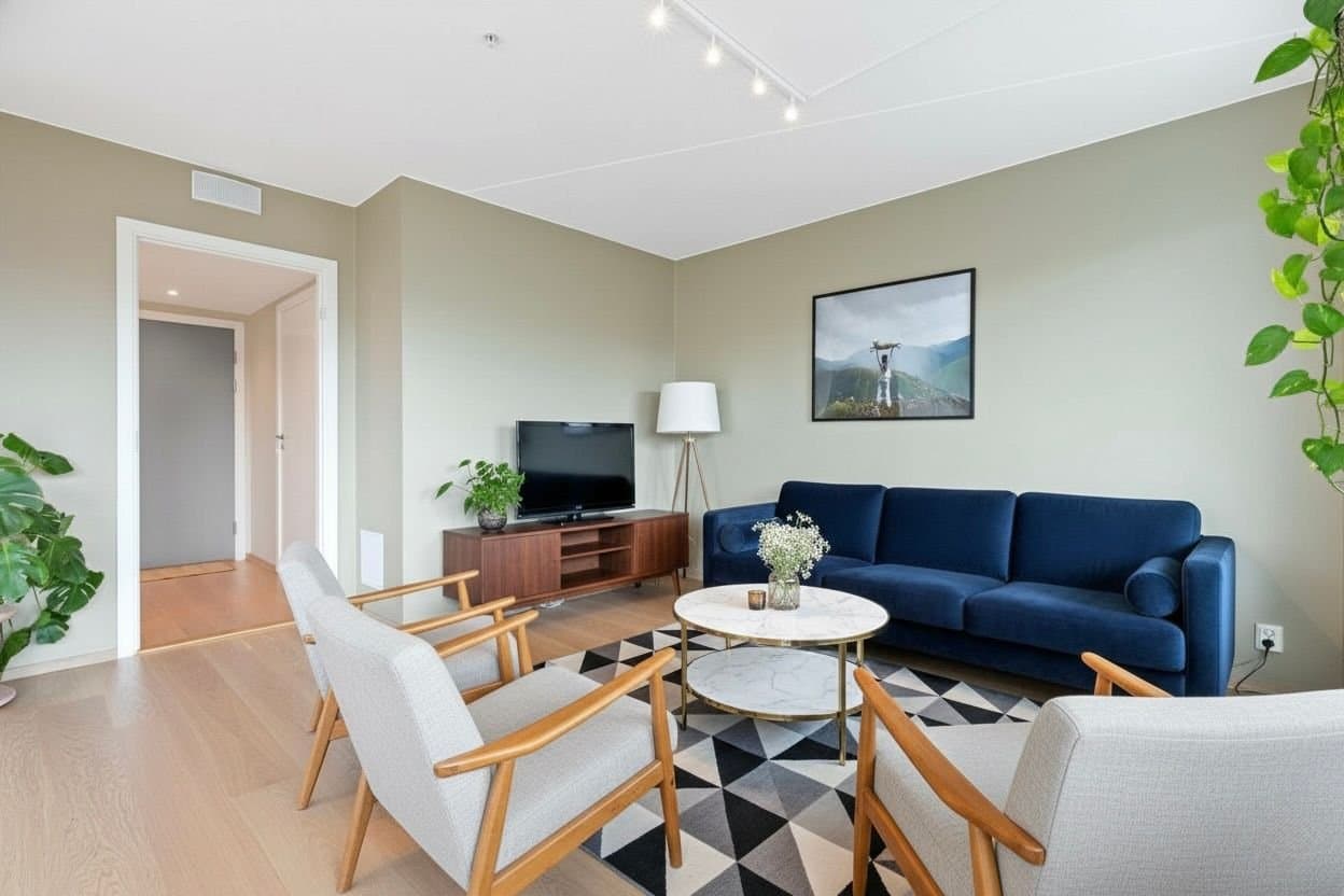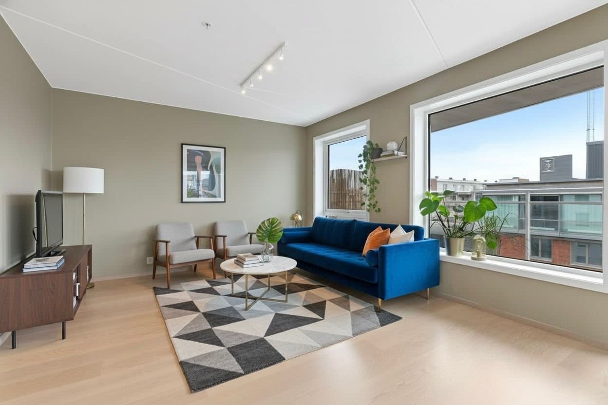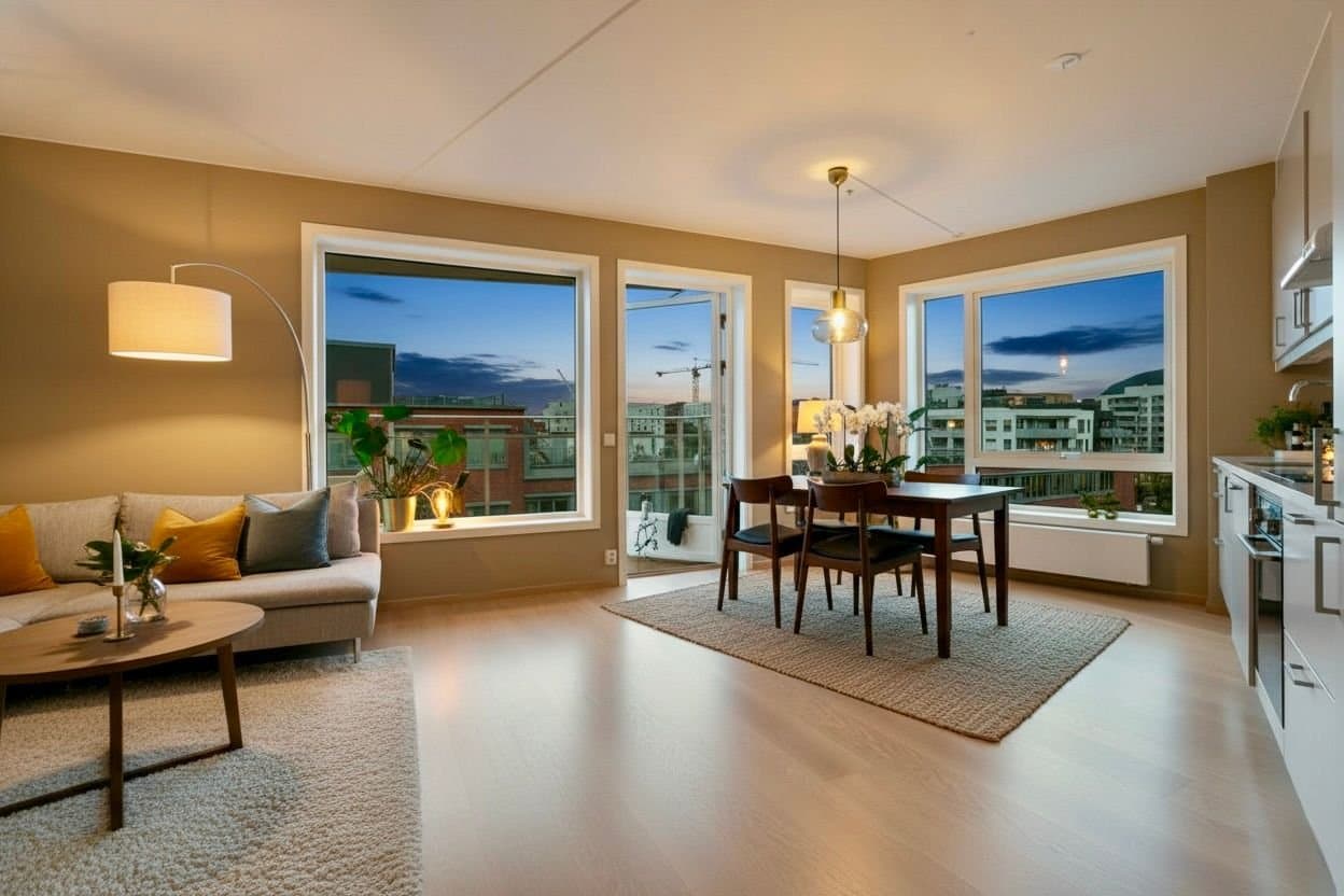 Moderne 3-roms hjørneleilighet i populære Lørenvangen. Leiligheten ligger usjenert til i 6. etasje med heisadkomst og byr på to solrike balkonger vendt mot vest og nord-vest med flott utsikt. Store vindusflater gir et fantastisk lysinnslipp, og den praktiske, luftige planløsningen er gjennomført i lyse og lune farger, som gir en behagelig atmosfære. Kjøkkenet har åpen løsning med god skap- og benkeplass, og hvitevarer er inkludert. Her får du også vannbåren varme, internett, og TV inkludert i felleskostnadene. En perfekt bolig for deg som ønsker moderne komfort kombinert med sentral beliggenhet i et stille område.