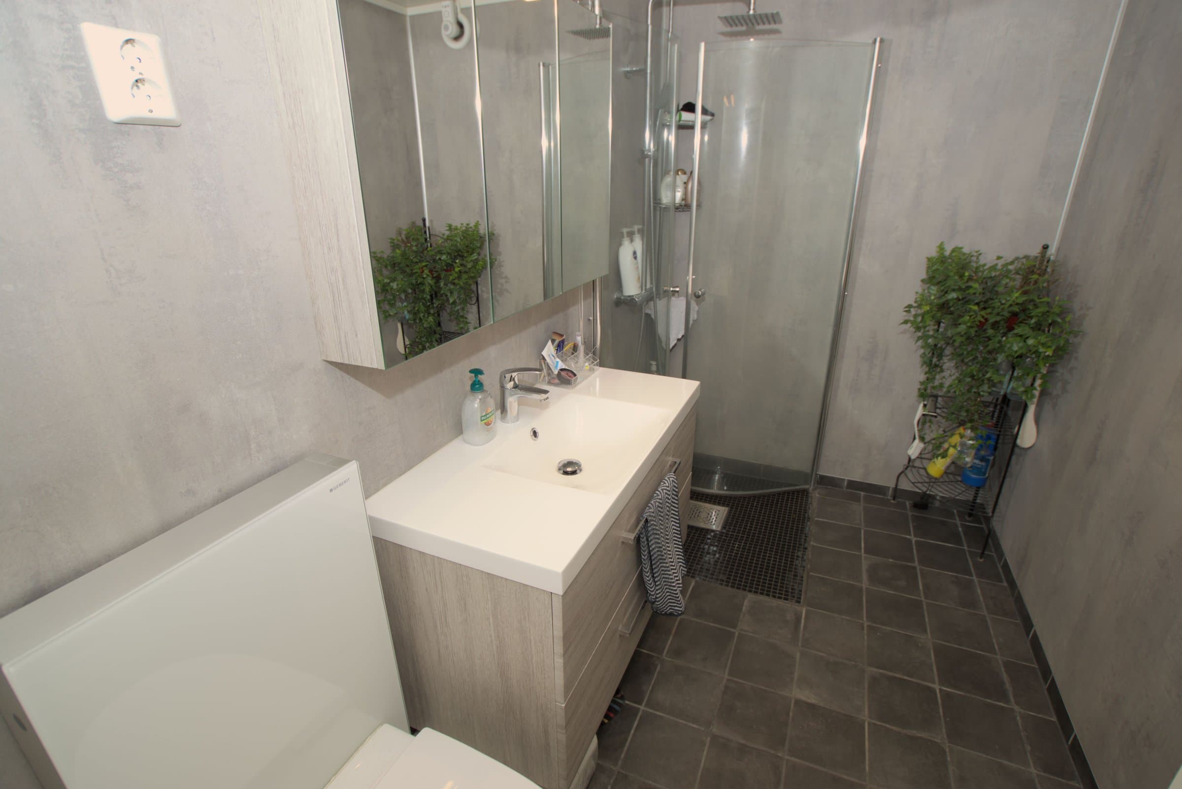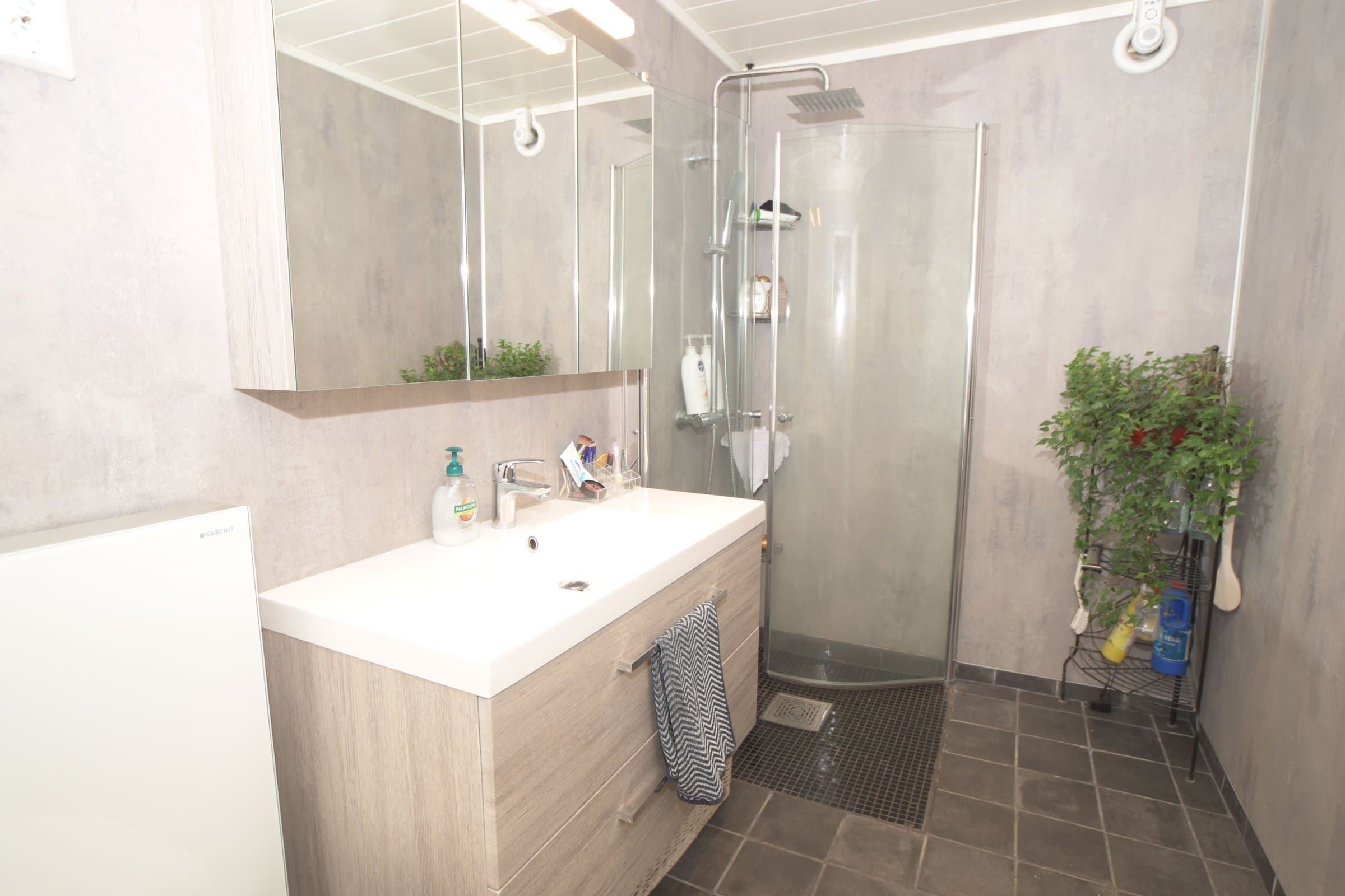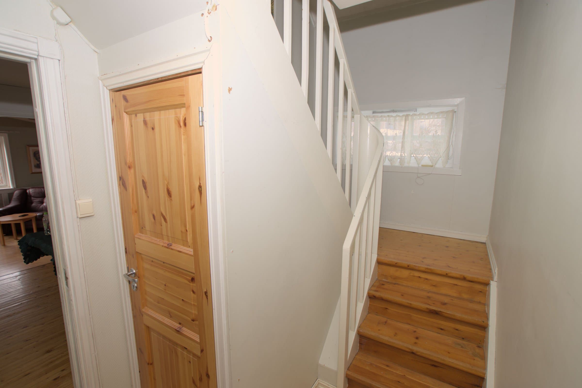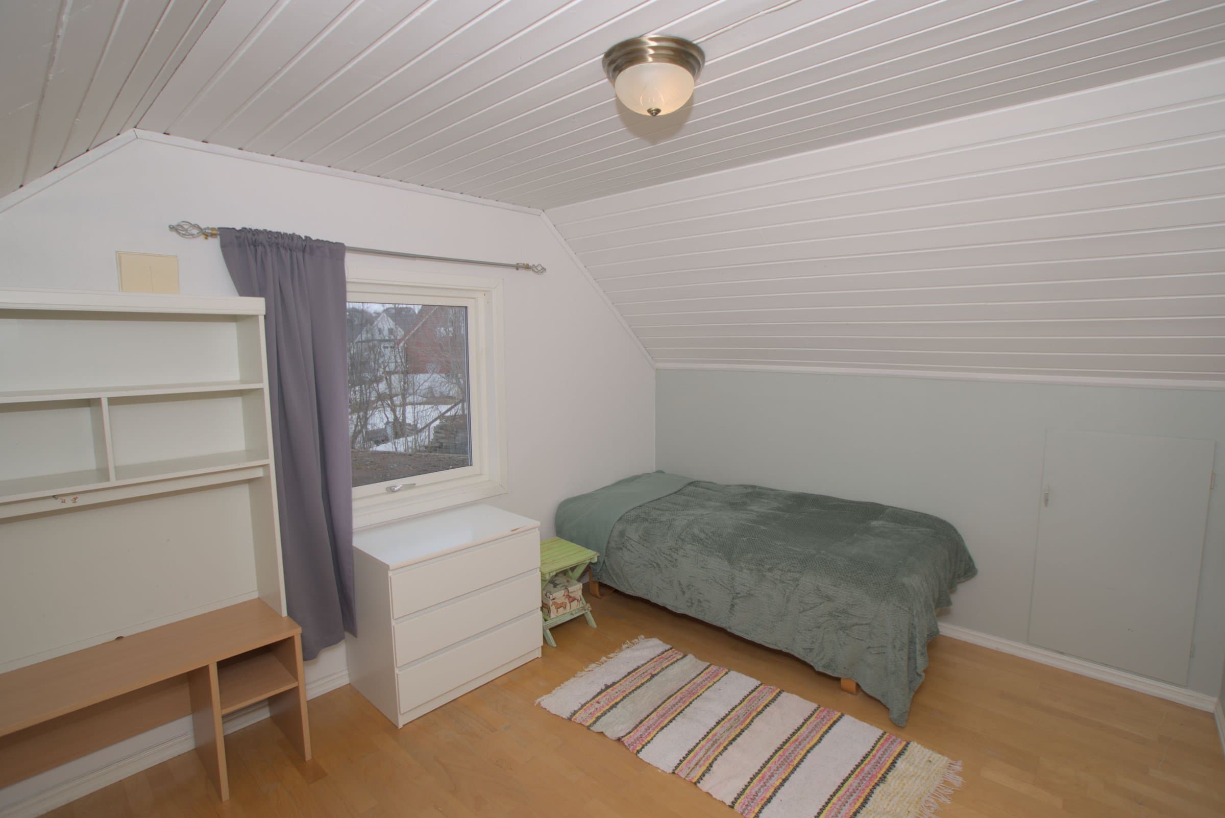 Koselig enebolig over tre etasjer med tre stuer, fire soverom, garasje, hage, uteplasser og uthus. Loftsetasjen har to soverom og en bod. Veranda mot morgensolen med utgang fra soverom. Hovedetasjen består av to stuer, kjøkken, gang, soverom, bad, og vindfang med et skjermet område /ekstra bodplass med skyvedørsgarderobe. Innerste stue i tilbygg har et lavere gulvnivå, åpen himling og åpen løsning mot spisestue og kjøkken. Varmekabler i gulv i yttergang og på bad. Varmepumpe og vedovn i stue. Utgang til terrasse mot sørvest og hage. I kjelleren/underetasjen er det ett soverom, kjellerstue, bod, gang, vaskerom med toalett, og sluse med utgang til romslig garasje. Hovedinngangen til boligen går via utvendig trapp til terrasse over garasjen. Rekkverket i trapp/terrasse er nytt (2024).