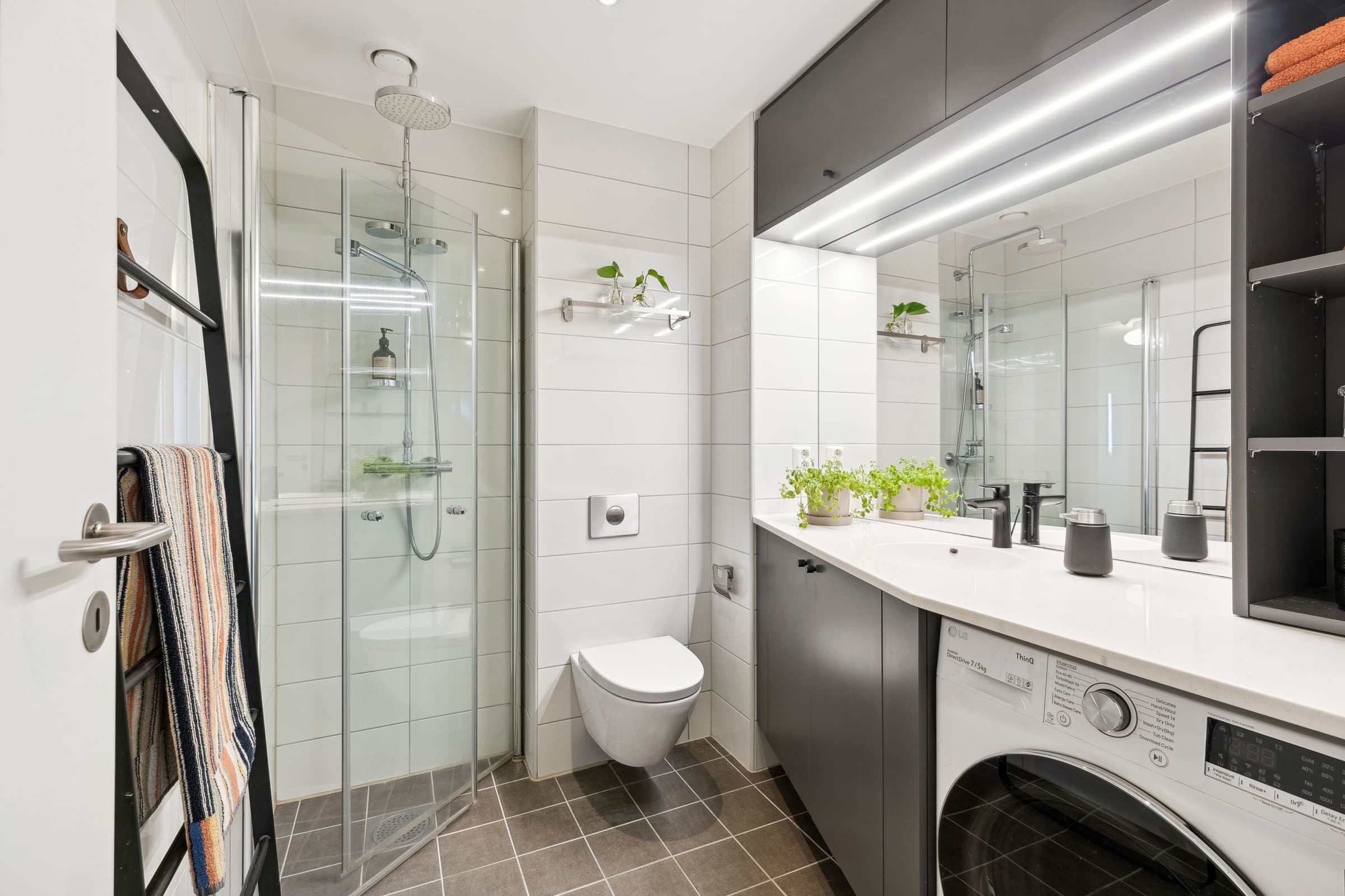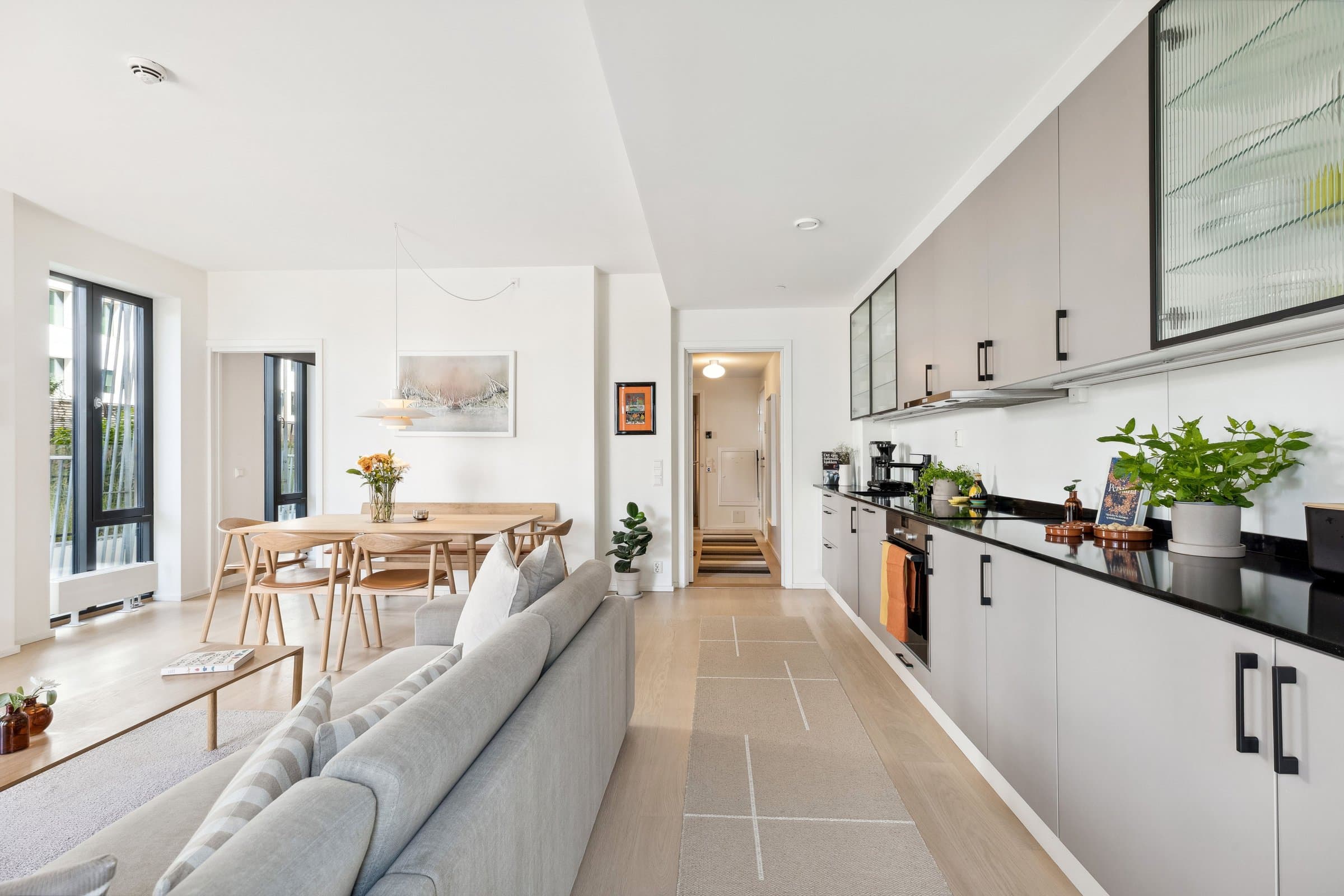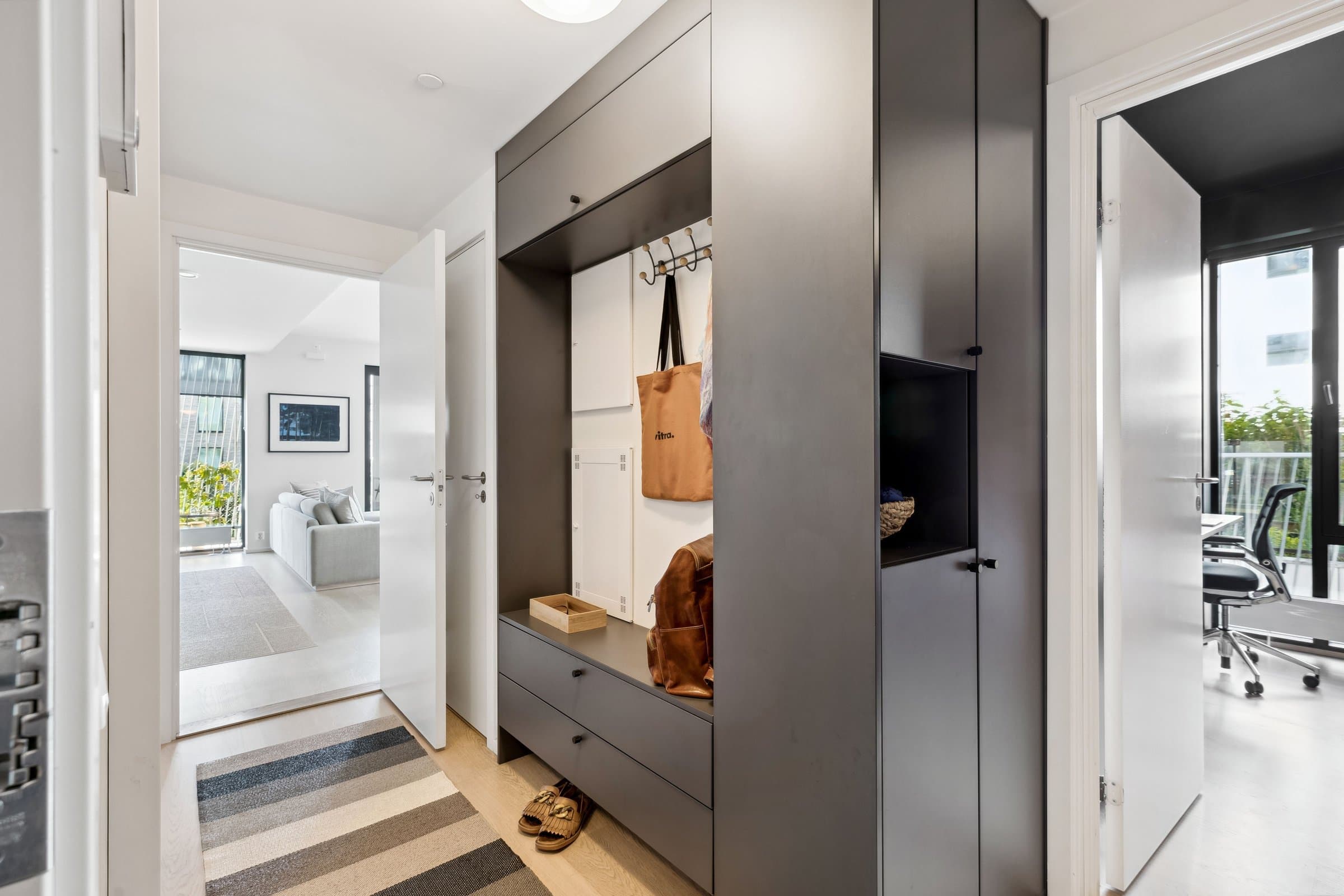 En moderne 3-roms selveierleilighet av høy standard, beliggende i 4.etasje. Leiligheten har en god planløsning med åpen løsning mellom kjøkken og stue, og en svært romslig balkong. Her bor du svært sentralt på Barcode med nærhet til et stort utvalg av kafeer og restauranter samt gode kollektivmuligheter. Høydepunkter: - Påkostet arkitekttegnet skapløsning montert i entré, bad og soverom - Hjørneleilighet med store vindusflater mot syd og vest - Takhøyde på 2,4-2,7m - Sydvendt balkong på 19 kvm - Balansert ventilasjon og fjernoppvarming - 2 private kjellerboder samt tilgang til sykkelbod - Bygg fra 2015 med to heiser - 2 felles takterrasser - Kiwi i kjelleren Moderniseringer: 2024: Oppgradert kjøkkeninnredning (modernisering av fronter og ny benkeplate i kompositt, vask og blandebatteri). Sliping og lakkering av parkettgulv. 2021: Oppgradert baderomsinnredning samt oppbevaringsløsninger i både entré og soverom. Montert innvendige rullegardiner på begge soverom og på kjøkkenet. Påkostninger av nåværende eier beløper seg til cirka 300 000 kr.