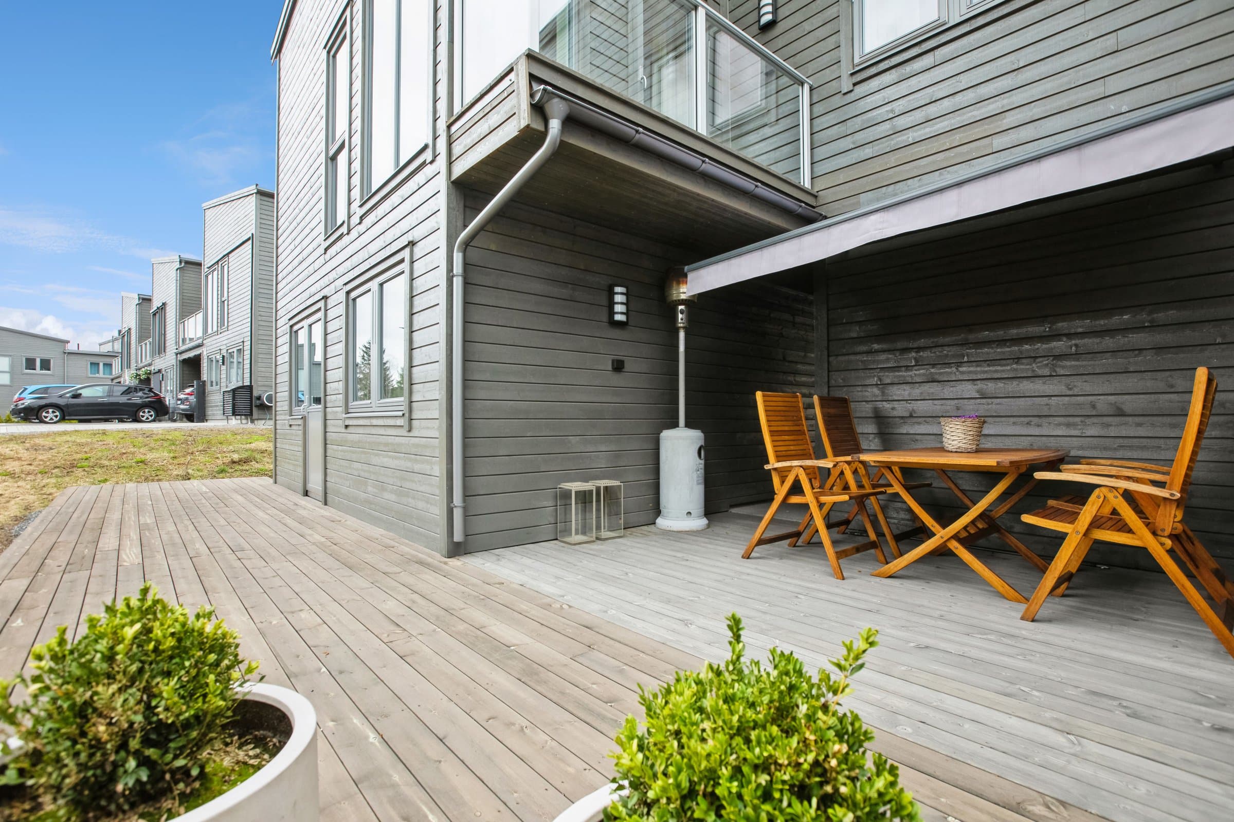 Nytt rekkehus 2022 med høy standard, huset har 2 etasjer, der 1 etasjen har bad, vaskerom gang og 3 soverom. 2 etasjen består av stue , kjøkken, valkinggarderobe og 1 soverom. Kjøkken ble oppgradert med overskap med spåtter under og inne i skap. Forbrenningsovn stue ble oppgradert, trapp fra 1 etasje til 2 etasje, ble oppgradert ,samt belysning i trapp. Carport til en bil, mulighet for parkering til 2 biler foran huset. Innkjøringen er steinbelakt. Det er bygget uteplass på husets sørside, med mulighet for hagemøbler . Det er montert elbillader i karport. Det er en utvendig bod i bakkant av karporten, på 5.m2. Fiberkabel fra Altibox, med TV og trådløst nettverk.