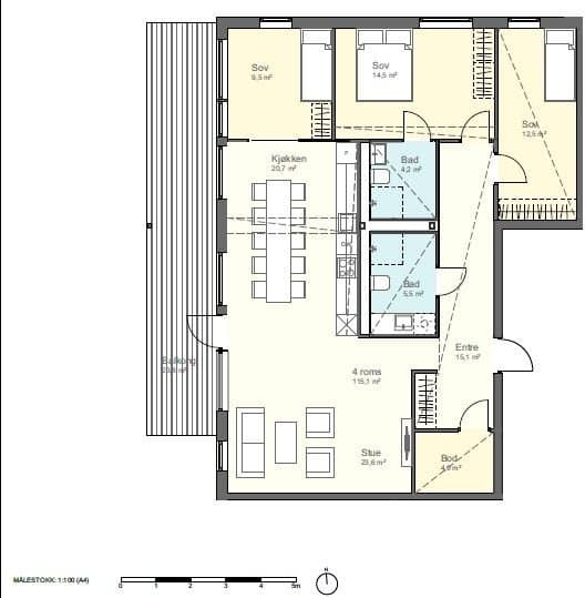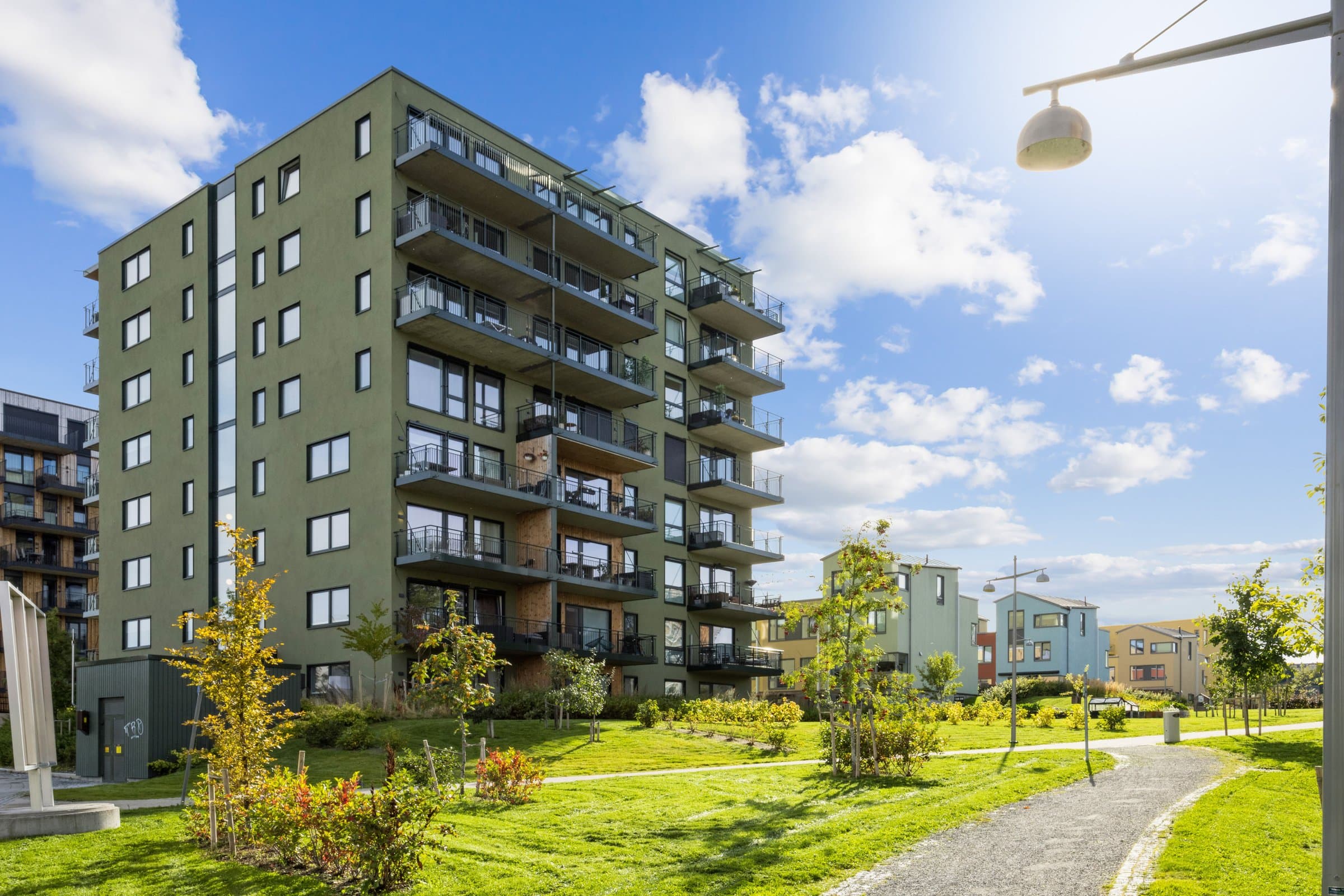 - Moderne standard, 5 års nybyggs garanti fra ferdigstillelse*. - Mulighet for nøkkelfri tilgang til bygget og leilighet med app på mobilen - Balansert ventilasjon, fjernvarme og heis. - Svært romslig stue og kjøkkenløsning med plass for spisestue, sofakrok og sittegrupper. - Vestvendt veranda på langstrakt utsikt og gode solforhold. - Tre gode soverom (Ett av de er benyttet som kontor). - To baderom med høy standard. - Stor sportsbod i kjelleren. - Egen parkeringsplass i oppvarmet parkeringskjeller med El bil lader Hvitevarer Følgende hvitevarer er inkludert i handelen: - Stekeovn - Plate topp - Ventilator - Oppvaskmaskin - Kombi kjøl / fryseskap Ingen øvrige hvitevarer medfølger Det vises til vedlegget «Liste over løsøre og tilbehør», vedrørende hva som medfølger ved salget. Sjekk punktene i "liste over løsøre og tilbehør" og ta eventuelt kontakt med selger dersom det er uklarheter. Antall bad 2 Adgang til utleie Det er ingen separat utleiedel, men leiligheten kan fritt leies ut delvis eller i sin helhet. Kortidsutleie av hele boligseksjonen i mer enn 90 døgn er ikke tillatt. Med korttids utleie menes utleie i inntil 30 døgn sammenhengende. Grensen på 90 døgn kan fravikes i vedtektene og kan i så fall settes til mellom 60 og 120 døgn. Slik beslutning krever et flertall på minst to tredjedeler av de avgitte stemmene på årsmøtet. Merk imidlertid at begrensningen ikke gjelder for sameier hvor alle bruksenhetene brukes som fritidsboliger. Eierform Eierseksjon Konsesjon Nei Odelsrett Nei Bo og driveplikt Nei Tomte type Eiet Tomtestørrelse 1041.4 kvm
