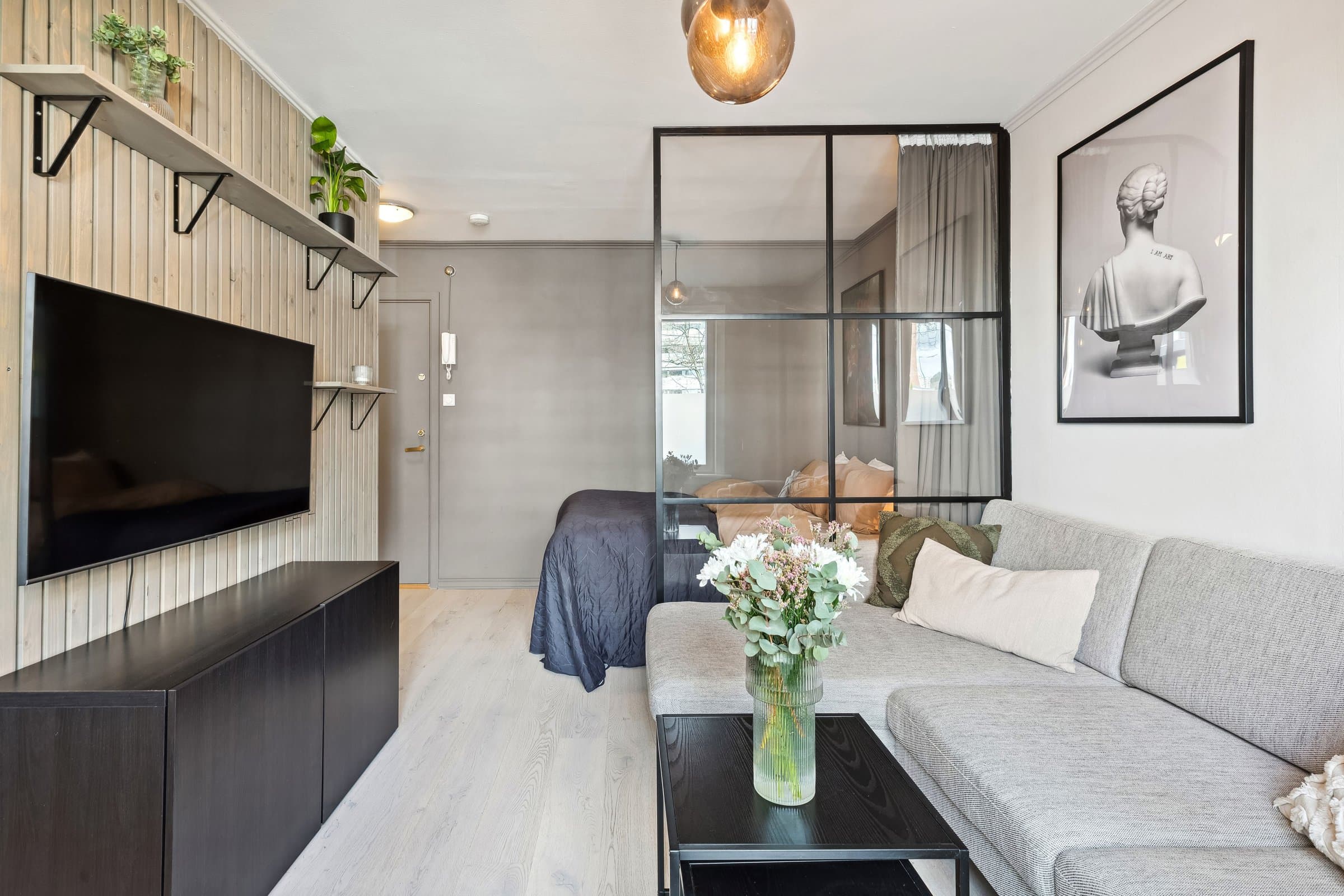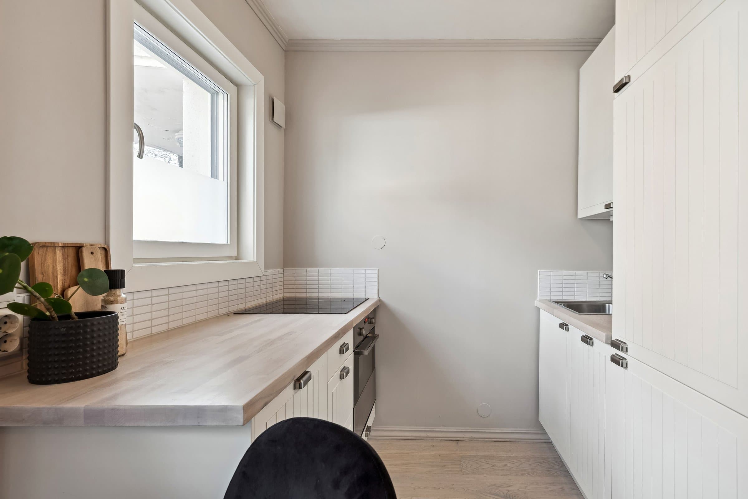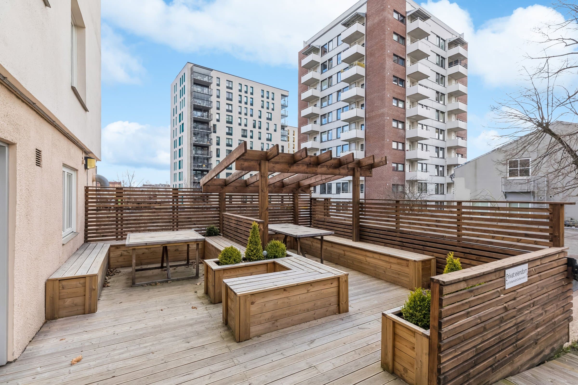 Leiligheten ligger i en høy 1. etasje og inneholder: entré, bad/wc, stue med åpen kjøkkenløsning og sovealkove. Totalt 23 kvm. I tillegg disponerer leiligheten en loftsbod i 11. etasje på ca 2 kvm (heisadkomst). Alle vegger, samt inngangsdør, ble malt i 2022. Parkett på gulv, fliser på bad. Entré: Praktisk garderobe med skyvedørsgarderobe og plass til oppheng av yttertøy og sko. Dørcalling montert på vegg. Stue: Flere innredningsmuligheter med plass til både sofa og spisegruppe. I tillegg er det en naturlig adskilt sovealkove med plass til dobbeltseng. Smijernsvegg i sovealkoven ble satt opp i 2020. Spilevegg og hyller i stue fra 2021. Kjøkken: Åpen løsning og profilerte fronter med god skapplass. Heltre benkeplate og fullstendig kjøkken med integrerte hvitevarer (kombiskap, komfyr og stekeplate), samt ettgreps blandebatteri. Det er i tillegg montert frittstående oppvaskmaskin i skap. Alle hvitevarer medfølger (ingen garanti utover gjenværende leverandørgaranti). Bad/wc: Flislagt bad fra 2014 i regi av borettslaget. Nedfelt servant med ettgreps blandebatteri, oppbevaringsmuligheter over og under servant, vegghengt toalett, dusj med glassvegg og opplegg for vaskemaskin. Varmekabler i gulv. Fellesarealer: Grøntarealer og felles terrasse med pergola til fri bruk for beboerne. Uteområdet har sol fra ca. klokken 10.00-18.00. Fri bruk av to ulike fellesvaskeri i kjeller med vaskemaskiner og tørketromler. Felles sykkelbod. Borettslagets parkeringsplasser og garasjer tildeles etter boansiennitet når det er ledige plasser. Utover dette er det tidsbegrensede gjesteparkeringsplasser som er gratis for beboere å benytte.