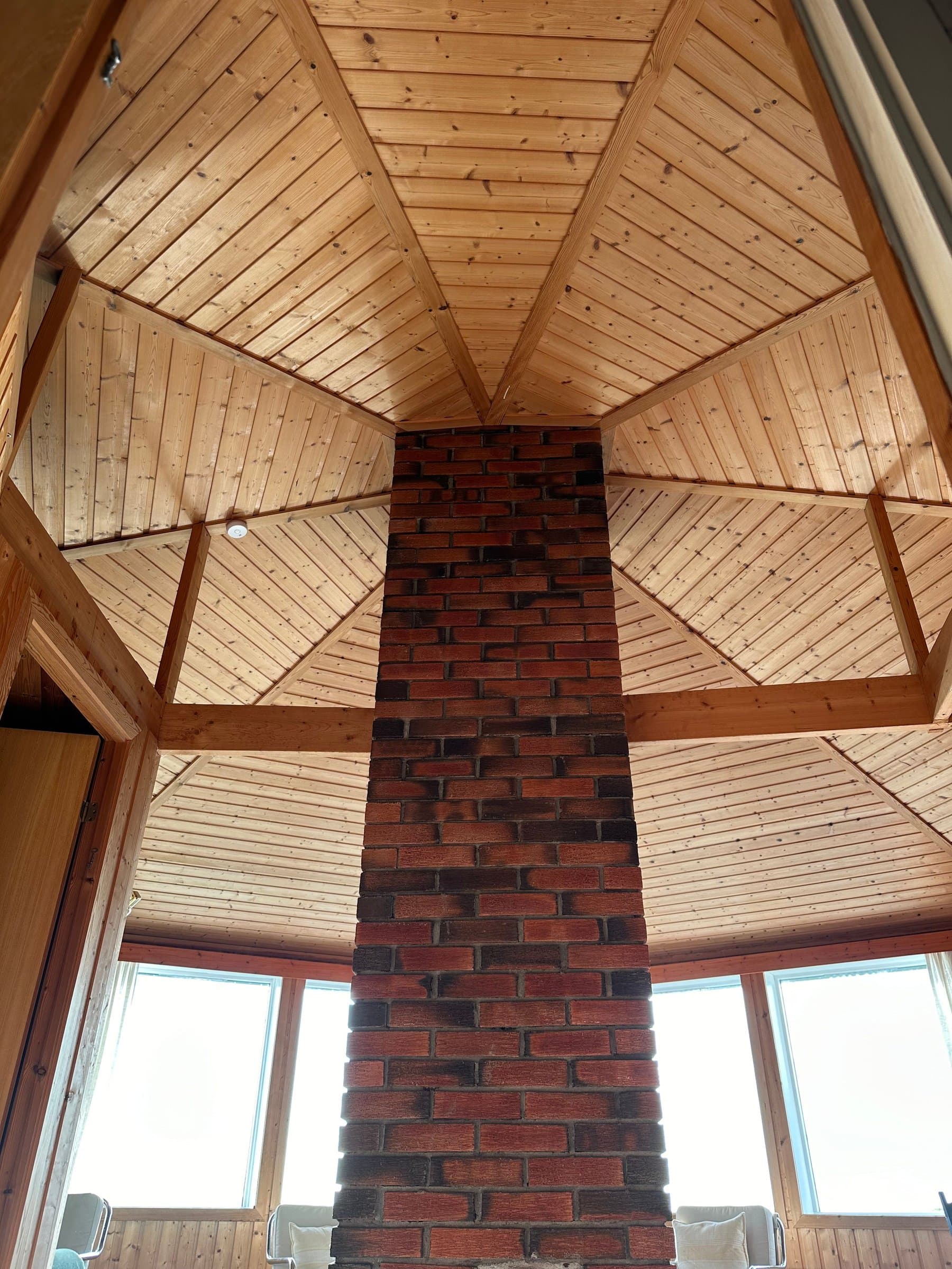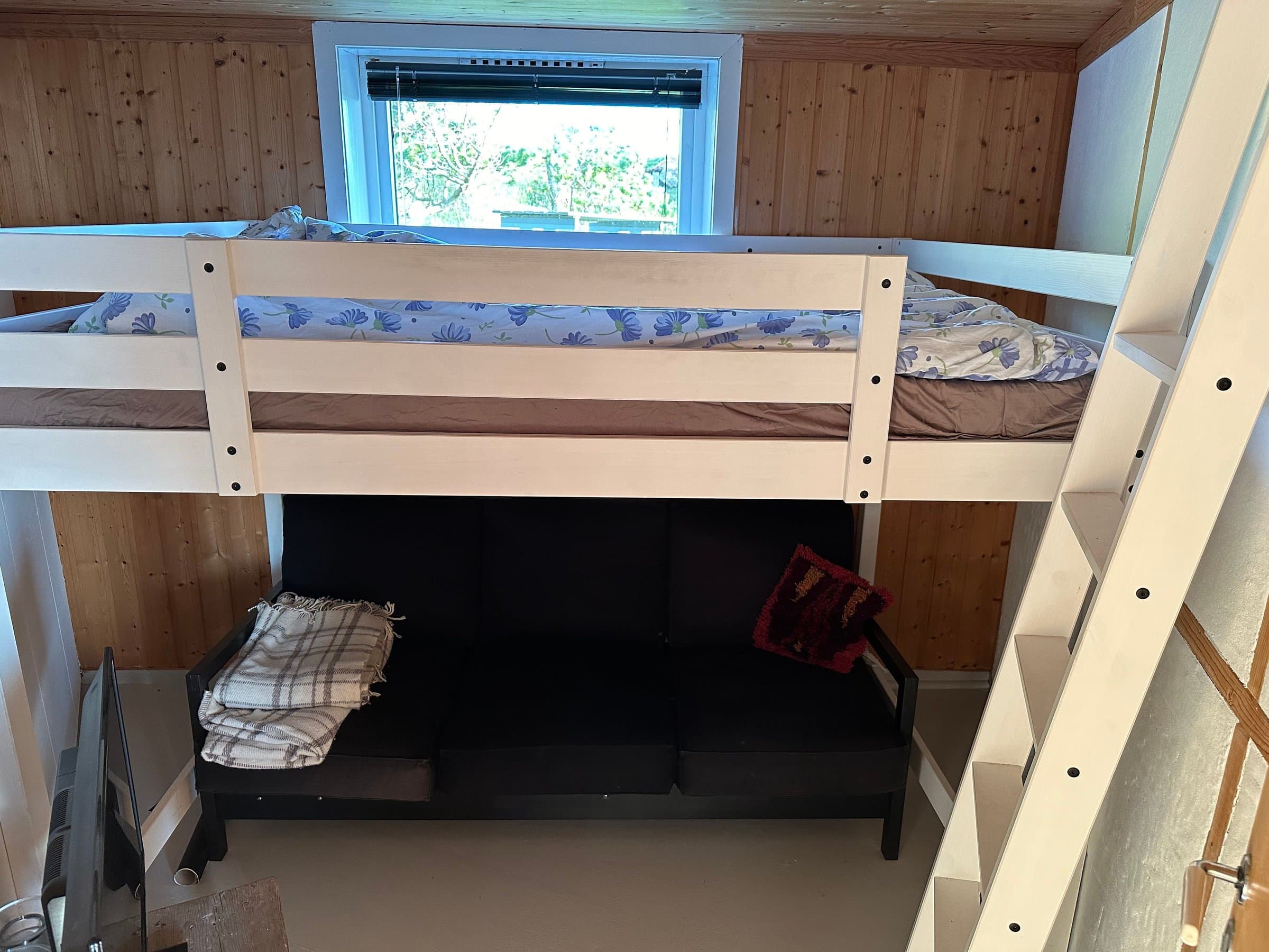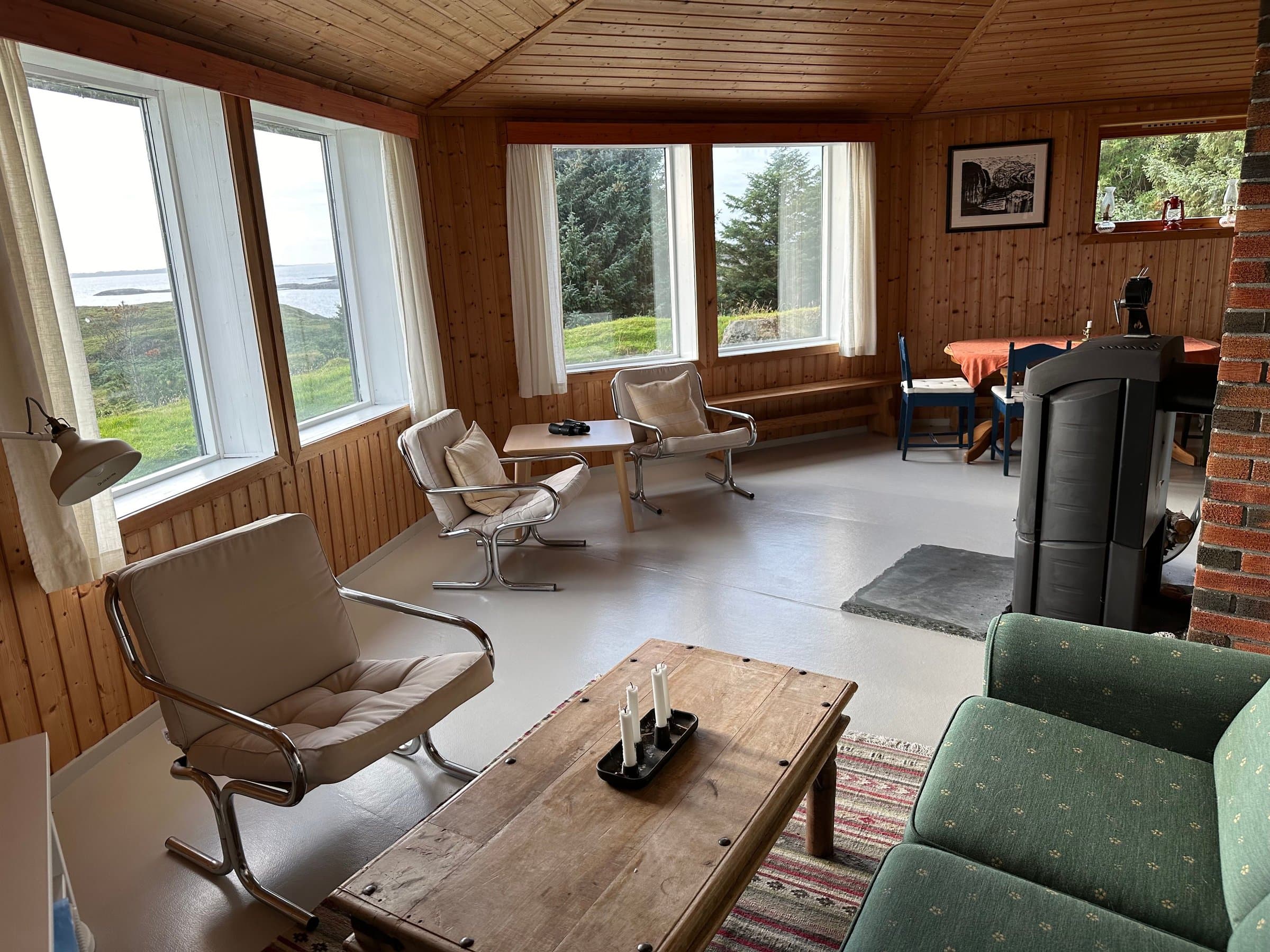 9-kantet hytte bygget på en kanonstilling, med kjellerrom i gamle ammunisjonslagre på utsiden. Hytten ble oppgradert de siste 10 år. Det ble innlagt solstrøm for belysning, kjøleskap og TV. Ellers benyttes gass for matlaging og vedovn for oppvarming. Bod med badstu og toalett («Villa Separett»). Hytten ble bygget i 1978 og det meste av hytten er fra byggeår.