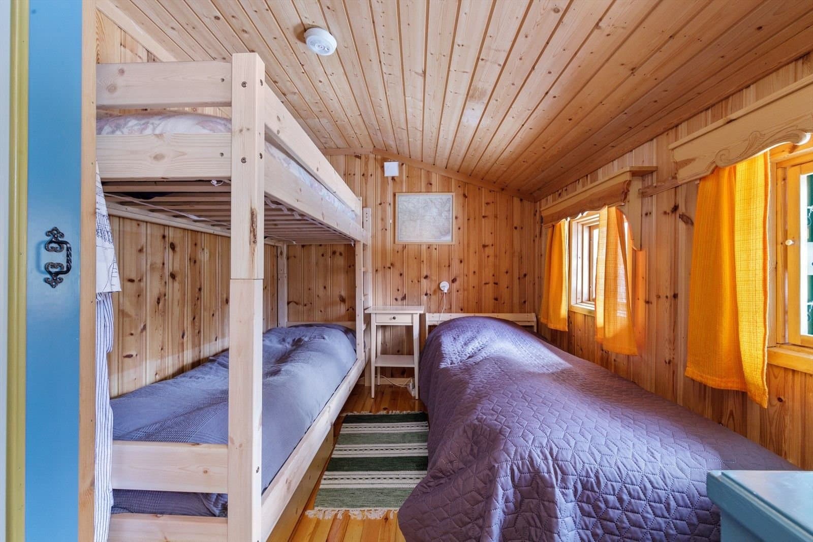 Adresse: Håtovegen 6 Postnummer: 3864 Poststed: Rauland Kommune: Vinje Kommunenummer: 3825 Matrikkel: Gnr. 154, bnr. 54 Boligtype: Fritidseiendom BRA: 72 kvm BRA-i: 52 kvm (Kjøkken, stue, vindfang, gang m/vask ("bad") og 2 soverom). BRA-e: 20 kvm (Bod, utedo grillhytte). Tomt: 1216,2 m2 Byggeår: 1974 Eierform: Eiet Konsesjon: Nei Odelsrett: Nei Bo og driveplikt: Nei Tomtetype: Eiet Nøkkelopplysninger: - 7 sengeplasser - Kjørevei til hytta - Usjenert - Grillhytte fra 2015 - Borrevann til hyttevegg - Overbygd terrasse - Mye utearel Teknisk: - Sikringsskap i gangen - Borrevann til hyttevegg - Peis og vedovn - Naturlig ventilasjon Innvendige overflater: Furugulv. Trepanel på vegger. Trepanel i himlinger. Innhold Hytta er på ett plan og består av, entre, kjøkken, stue, 2 soverom, bod og utedo. Det er også satt opp ei utrolig koselig grillhytte. Adgang til utleie Det er tillatt å leie ut hele eller deler av egen bolig, så lenge arealet er godkjent for beboelse. Parkering Gruset biloppstillingsplass på egen tomt. Disponerer også to parkeringsplasser på parkering ved veg. Standard Hytta fremstår som en liten koselig hytte, med god planløsning. Hytta er av enkel standard og overflater består hovedsakelig av tregulv, og panel på vegger og i himling. Man entrer hytta via et hyggelig overbygd veranda- og inngangsparti, og inn i vindfang. Her kommer en videre inn i hytta som består av en hyggelig stue med peis som varmer godt på kalde høst‑ og vinterkvelder. Det er plass til både sofakrok og et lite spisestuemøblement. Kjøkken er flyttet på og innredet i ett av de opprinnelige soverommene. Det er kjøkkeninnredning med malte profilerte fronter og heltre benkeplater med stålvask. Kjøleskap og komfyr samt kjøkkenventilator med avtrekk ut. Det er 2 soverom i hytta, så her er det mange sengeplasser! Det er opparbeidet et rom for usjenerte vaskemuligheter nær soverommene. Her er det satt inn en enkel servantinnredning med vask. På andre siden av den overbygde verandaen er det adkomst til isolert rom med utedo (m/panelovn).