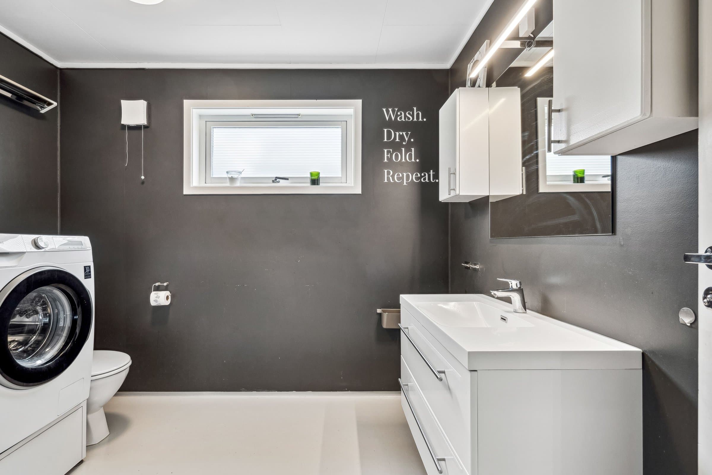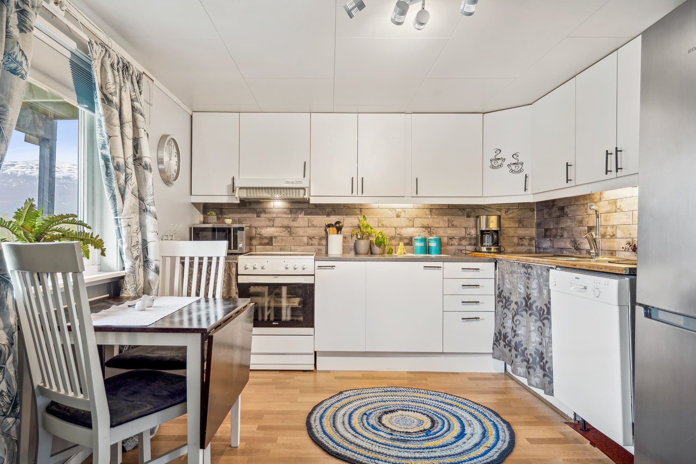 Boligen ligger i hjertet av Ramfjorden, ca. 25 min kjøretur til Tromsø sentrum, og er innenfor gangavstand til alt av aktiviteter, turløyper, skole og lokalhandel. Buss nummer 412 tar deg både til og fra Tromsø sentrum og har stopp rett utenfor døren på begge sider av veien.