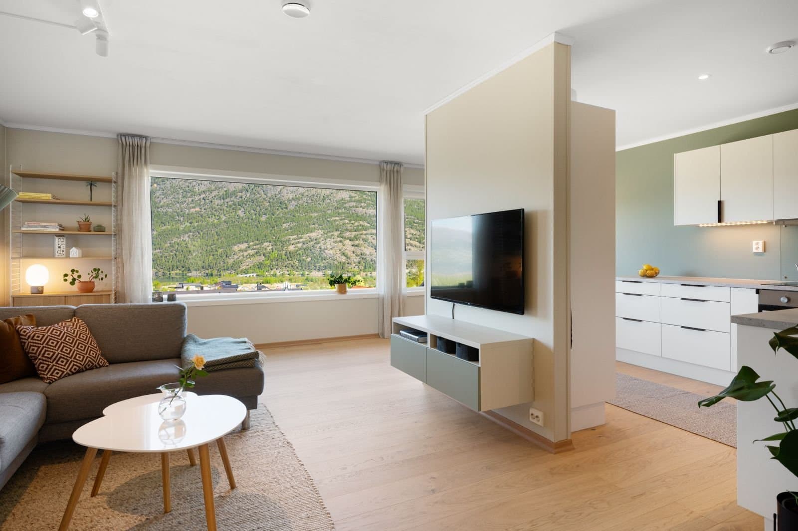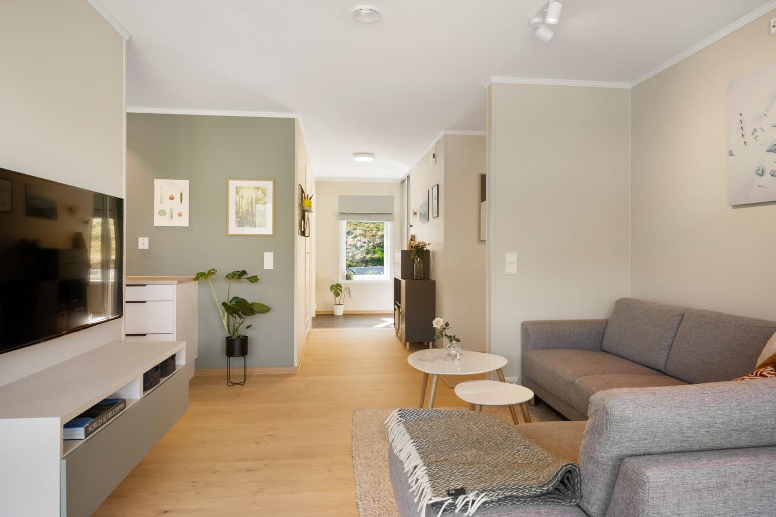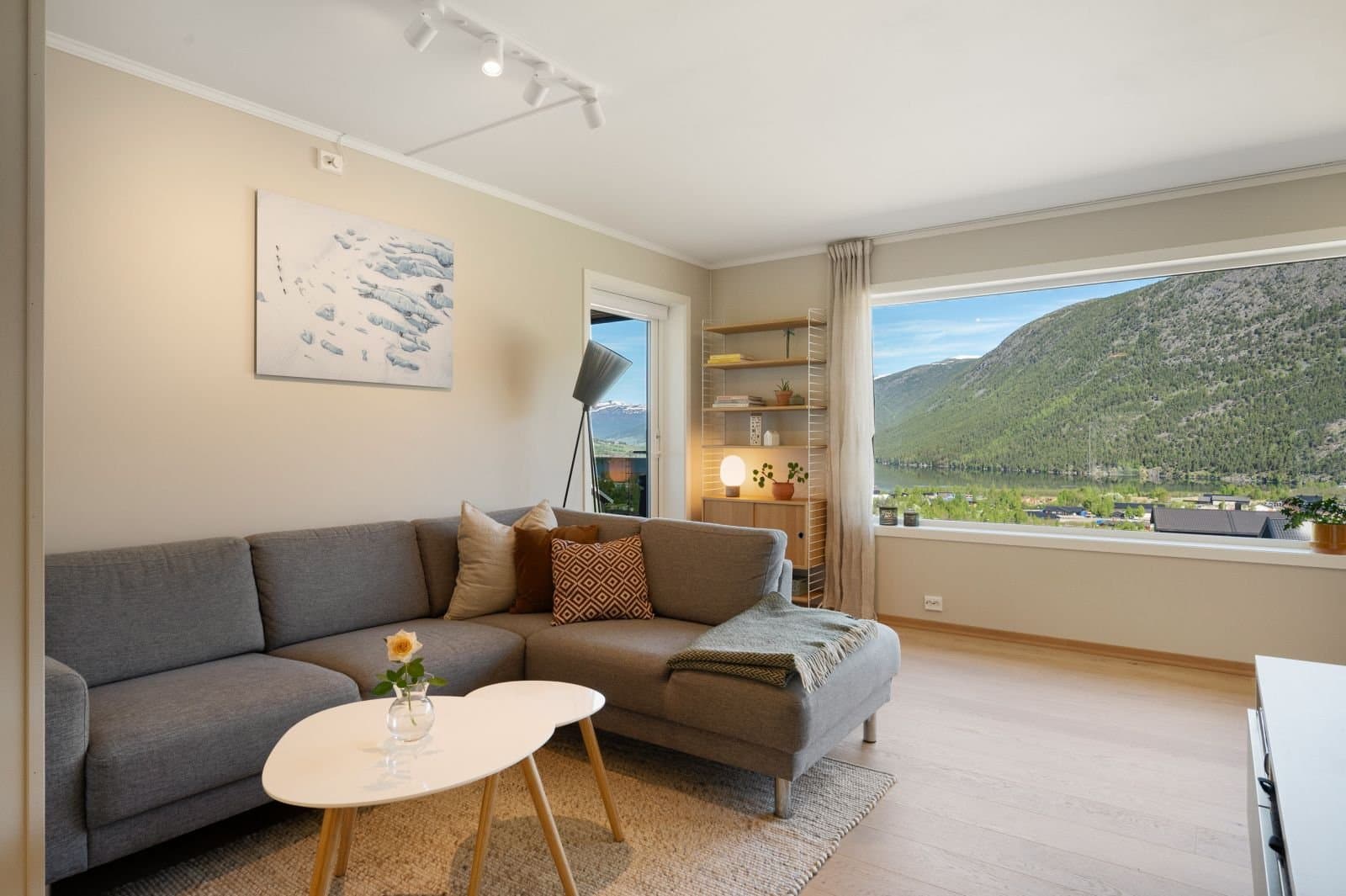 Sentral og moderne 3-roms leiligheit over eitt plan i gangavstand til Fossbergom, med gode solforhold og utsikt