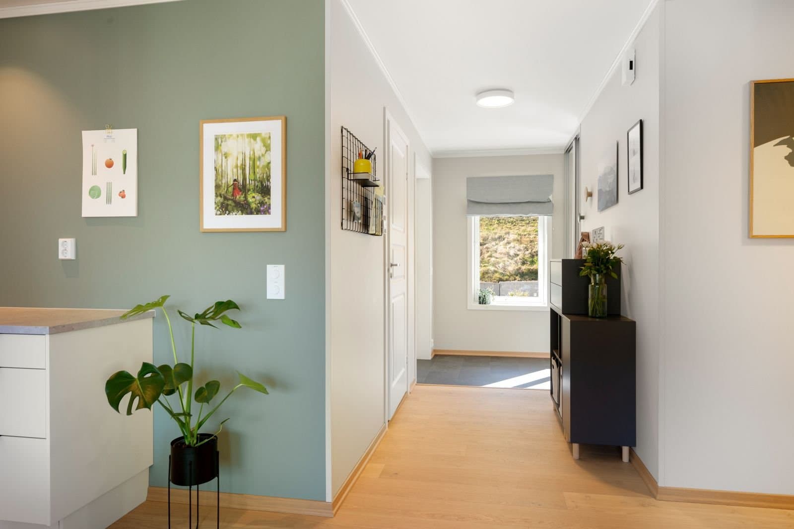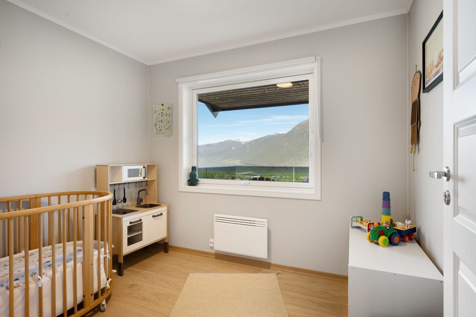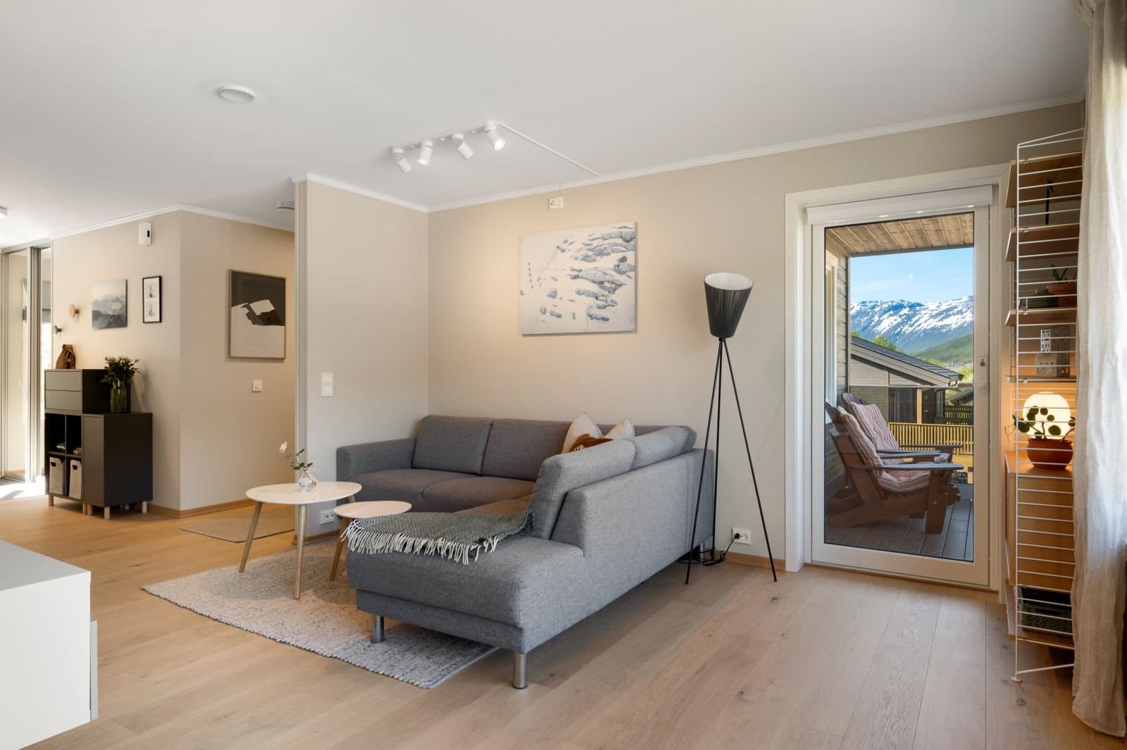 Sentral og moderne 3-roms leiligheit over eitt plan i gangavstand til Fossbergom, med gode solforhold og utsikt