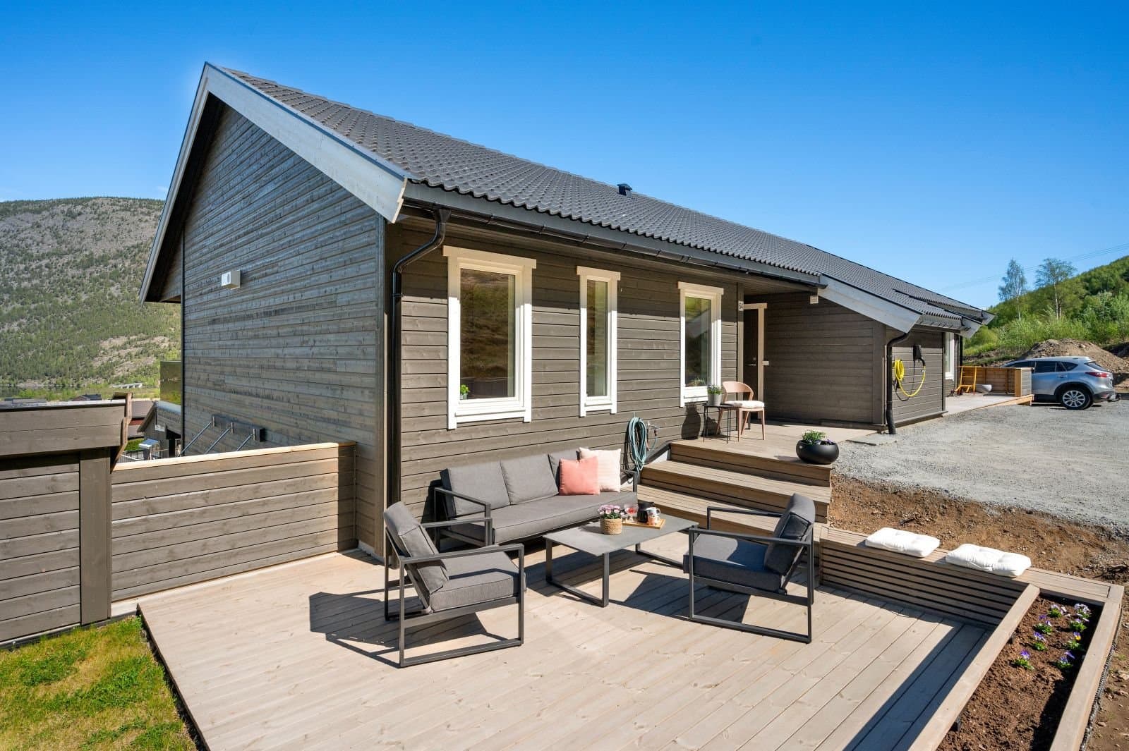 Moderne og praktisk 3-roms leiligheit frå 2021, med gjennomgåande høg standard og god planløysing. Enkel trinnfri adkomst, universell utforming, vassbåren varme, elbil-lader, praktisk bod ved inngangsparti og stor terrasse med tilhøyrande uteplass og gressplen. Krev lite vedlikehald. Det er to parkeringsplassar tilhørande bustaden.