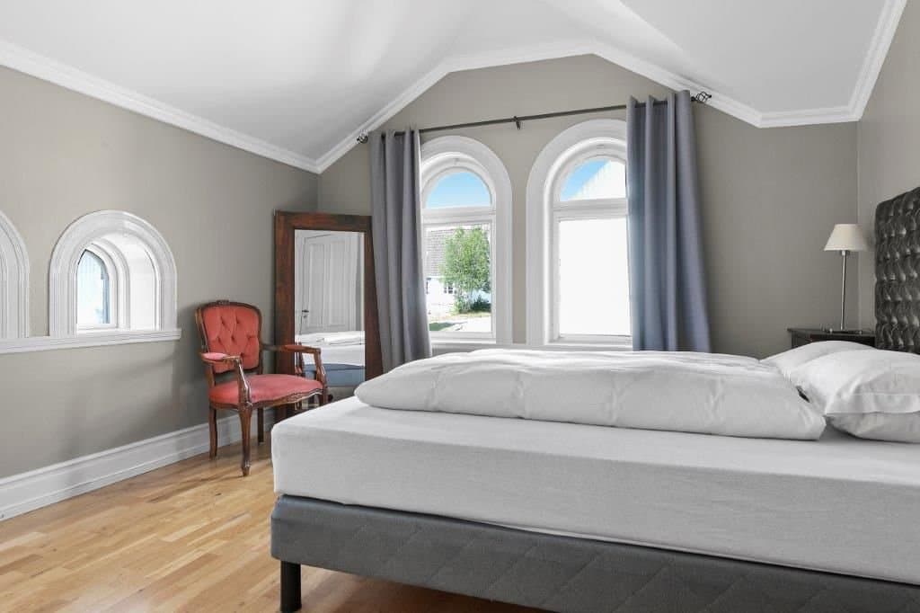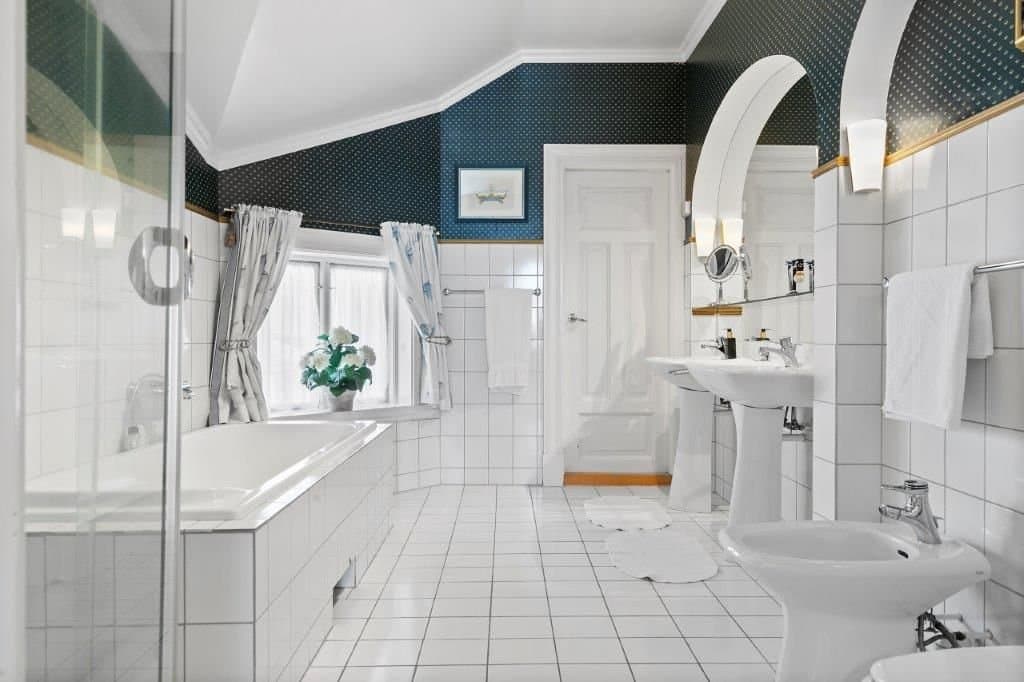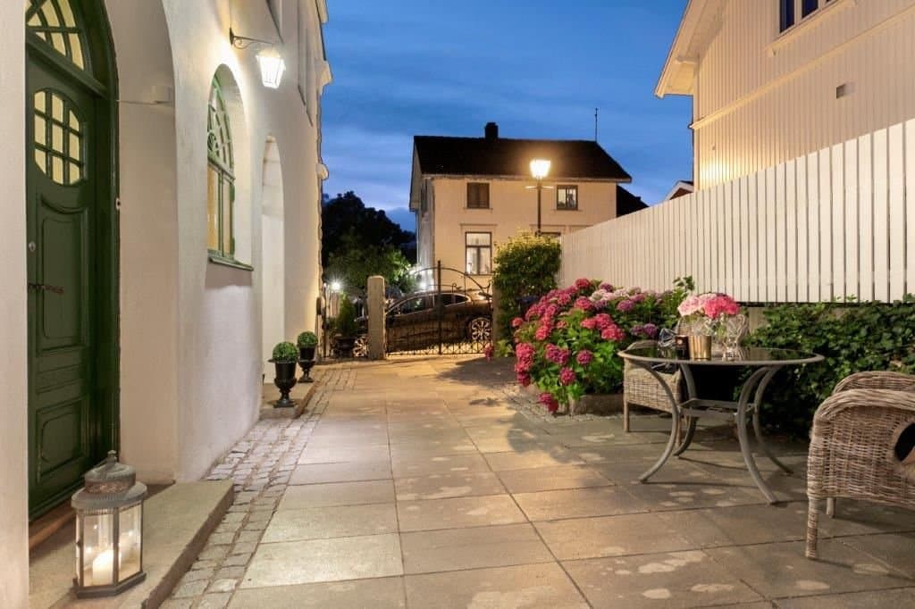 Hybler: I tillegg til separat inngang utenfra, er det adkomst til hyblene via felles gang i u.etg. Begge er bygd i 2016, med gulvarme (vannbåren/EL) og kjøkkeninnredning. Badene er gitt TG 3 pga noe feil fall på gulv. Hyblene's inntekspotensiale er kr. 208.000,- årlig med oppsigelsestid på 3 mnd. Den ene hybelen er satt på vent men uteleie i forbindelse med at huset ligger for salg. Eiendommen egner seg også til bruk som generasjonsbolig og/eller storfamiliebolig, da hyblene kan brukes som egne soverom, da med kjøkken og bad/wc Balkong Balkong med trapp mot hagen og balkong med fin utsikt fra øverste etasje Hage Pent opparbeidet hage Uteareal Bak den originale smijernsporten har eiendommen et praktfullt inngangsparti pent opparbeidet med skiferfliser, heller, brostein og beplantning. Hagen foran krever lite vedlikehold, men er akkurat passe stor som en privat grønn lunge midt i sentrum. Det er en fin variasjon av uteplasser i skjermet gårdsplass, balkong med nydelig utsikt og overbygd veranda mot hagen. Soverom Soverom med egne bad og minikjøkken / Hybler: Boligens 3 soverom ligger i 2.etg. Flere av rommene er store og fungerer like godt som stuer. Det ene har utgang til balkong med nydelig utsikt over området og mot Fredrikstadbroa. Hjørnerommet i tårnet har fantastiske lysforhold og utsikt mot Domkirken.